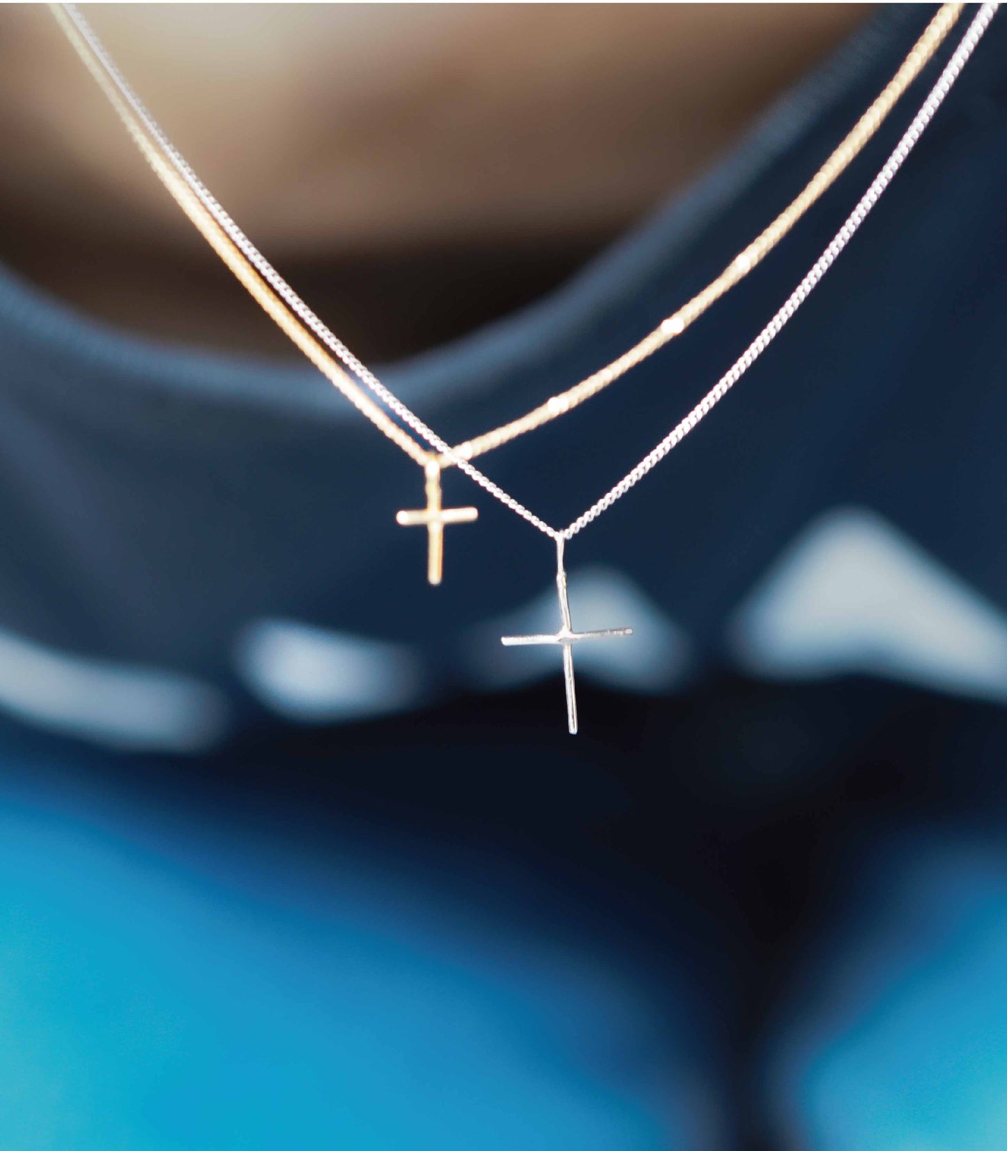 ハンドメイドならではの素朴なフォルムのクロスネックレス。