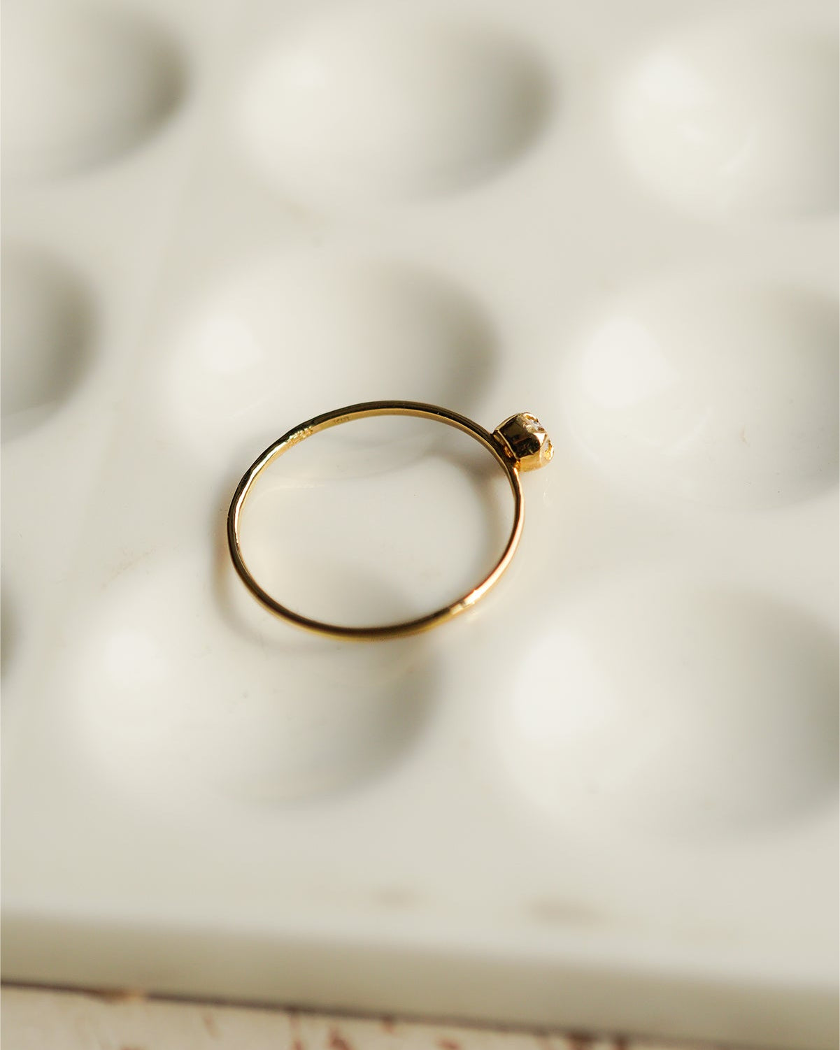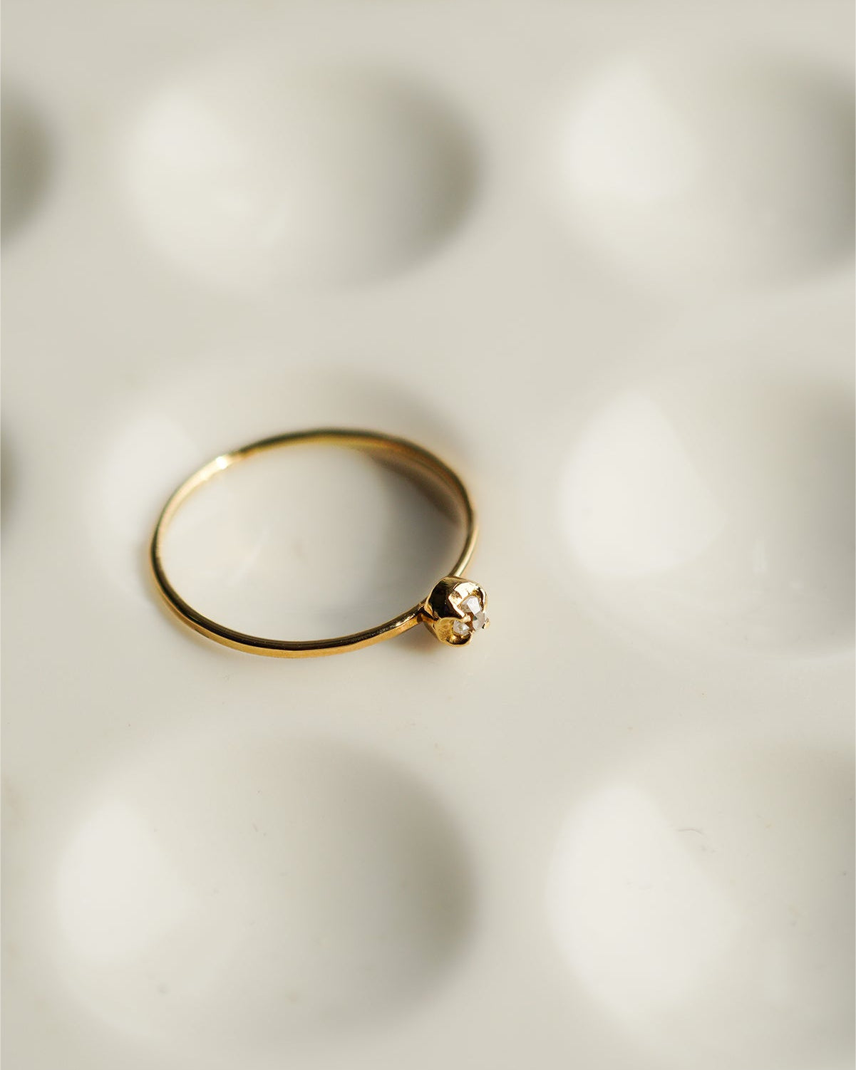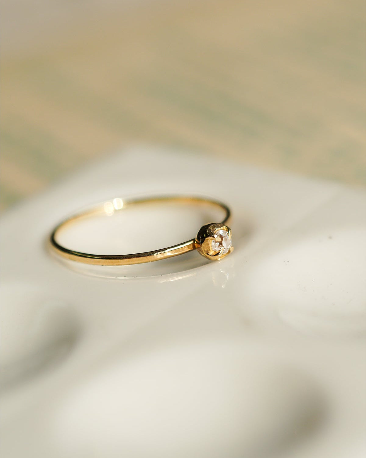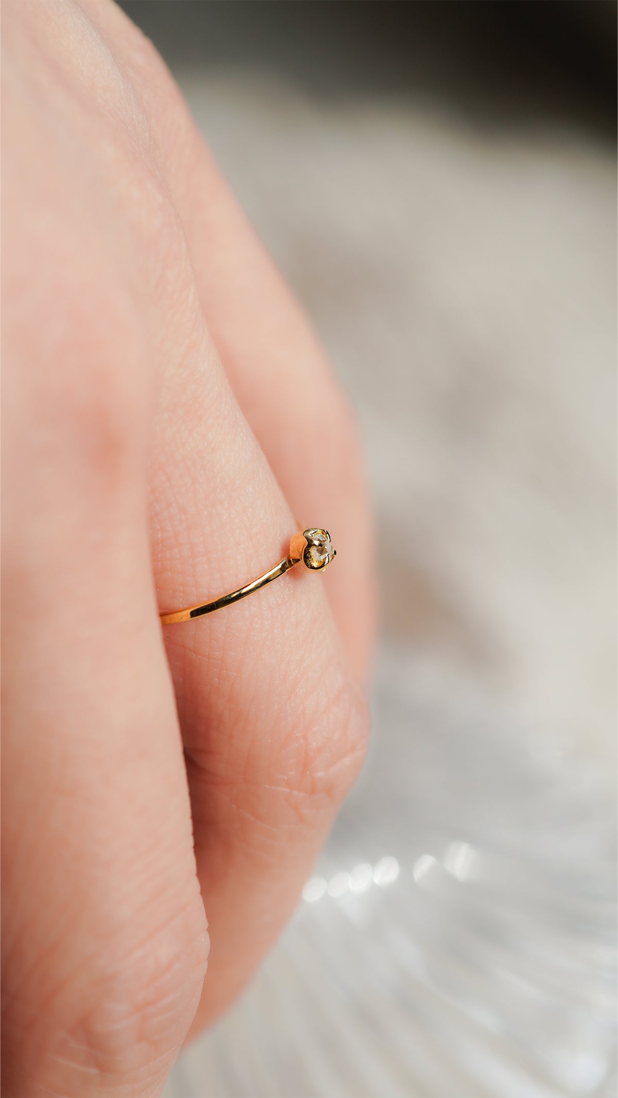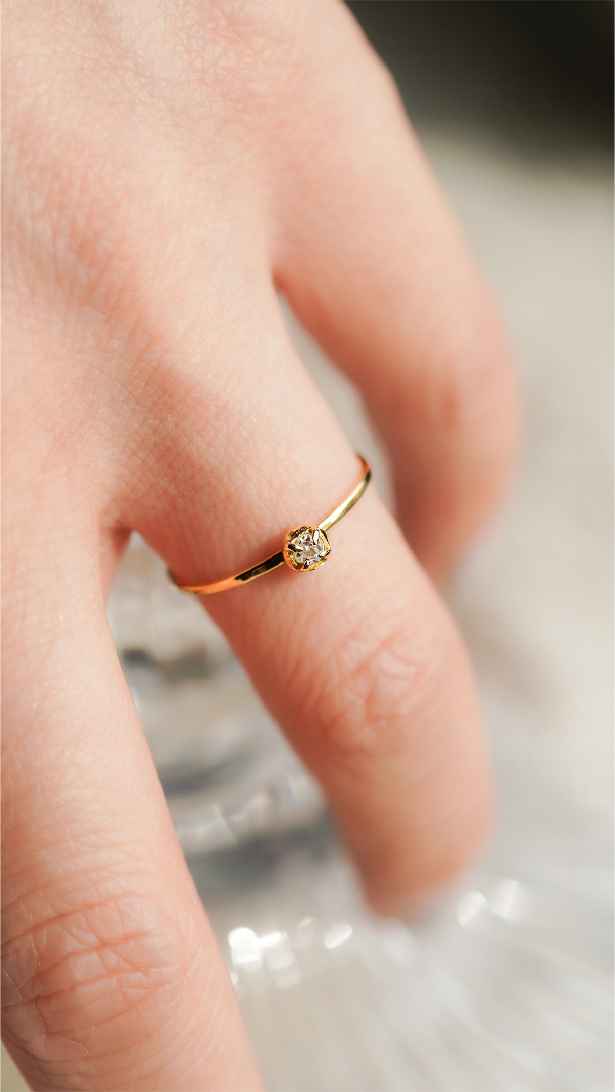 華奢な爪留めと少し丸みのある地金部分が、アンティークダイヤモンドの魅力をさりげなく引き立てます。