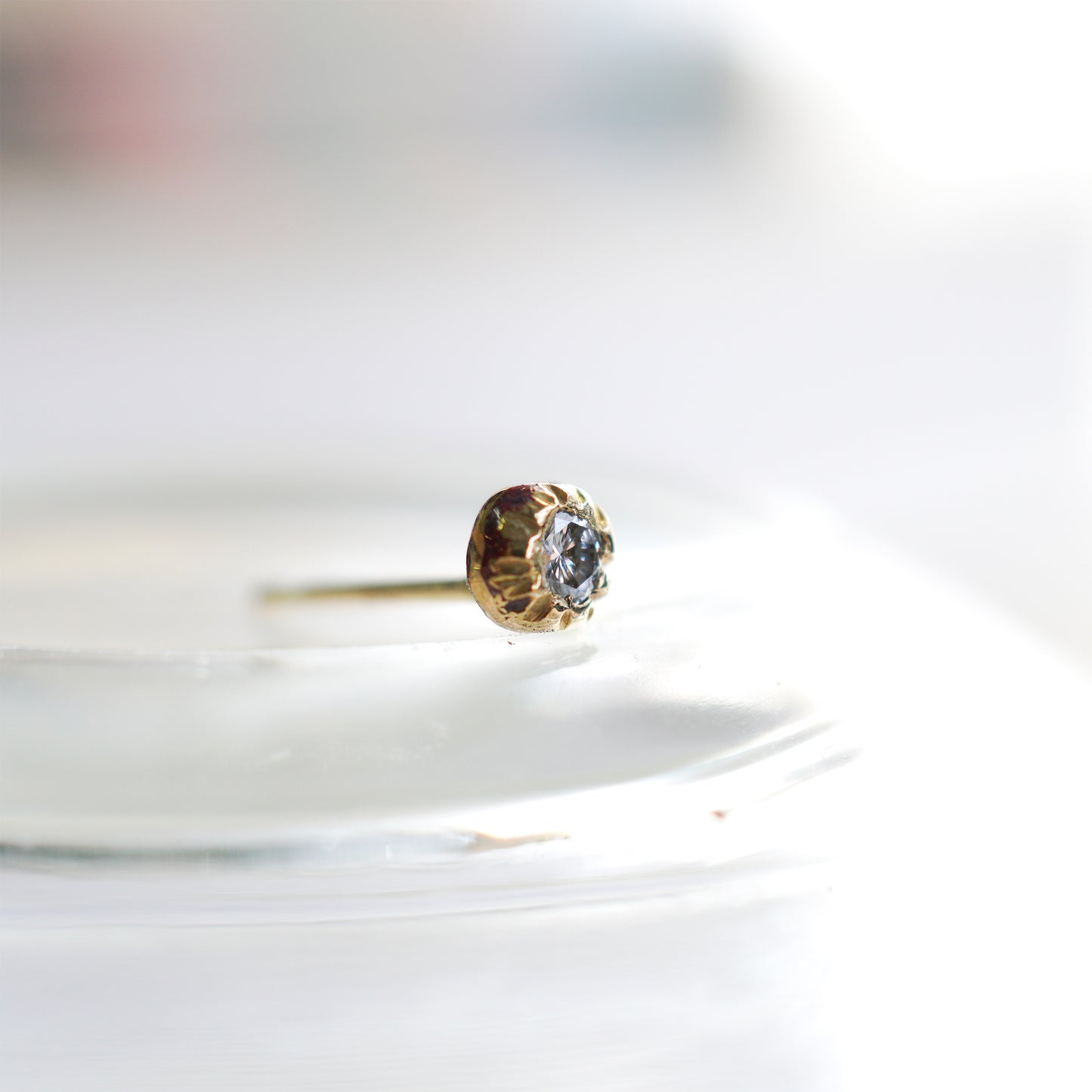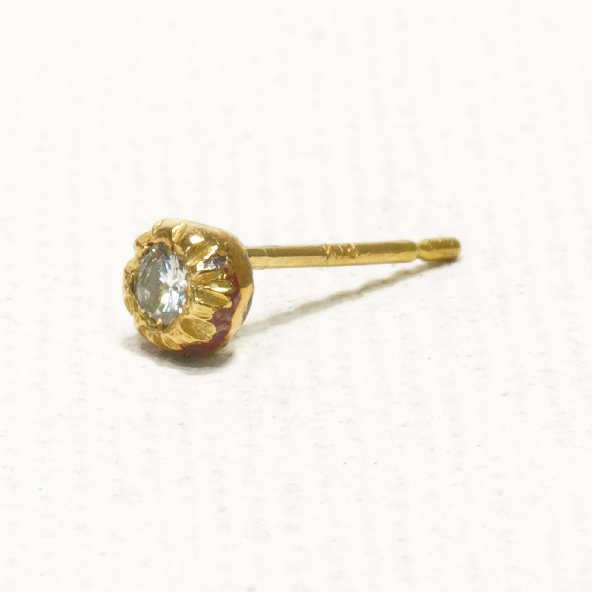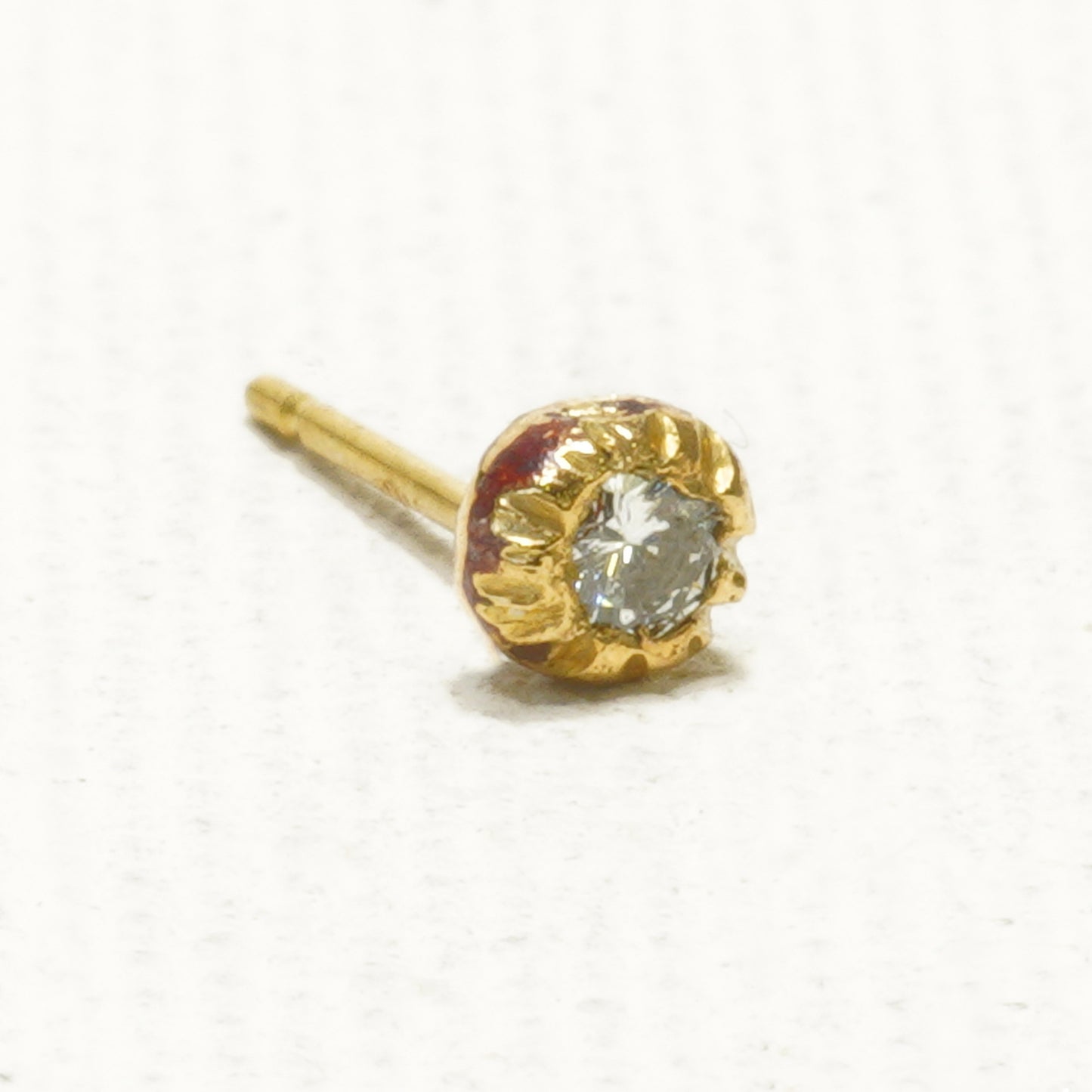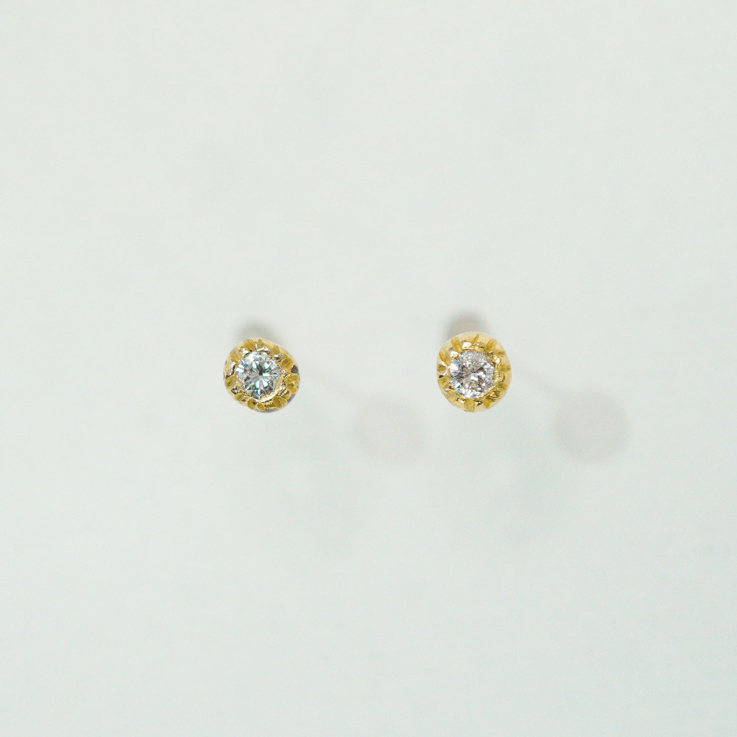 ラフなきざみの入ったフレームに繊細なダイヤモンドを埋めこんだピアス。