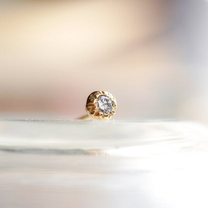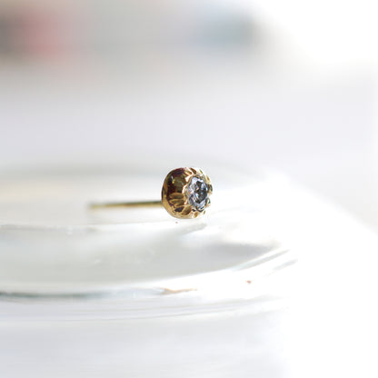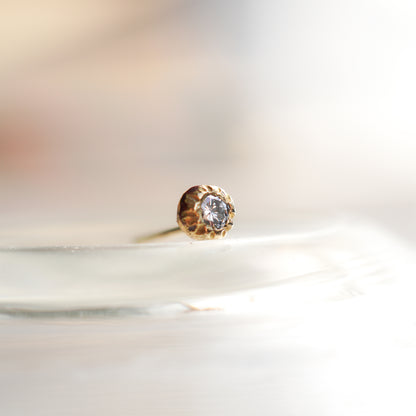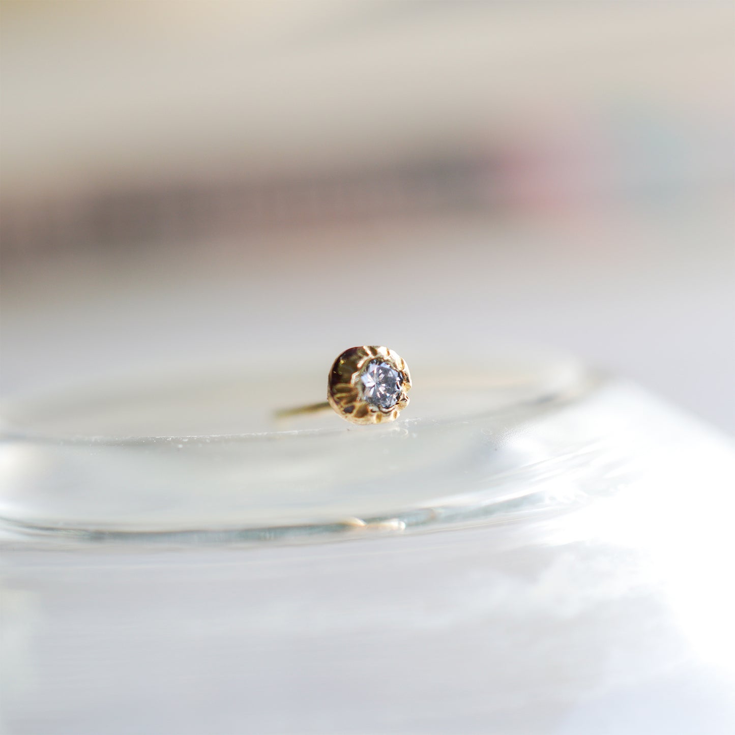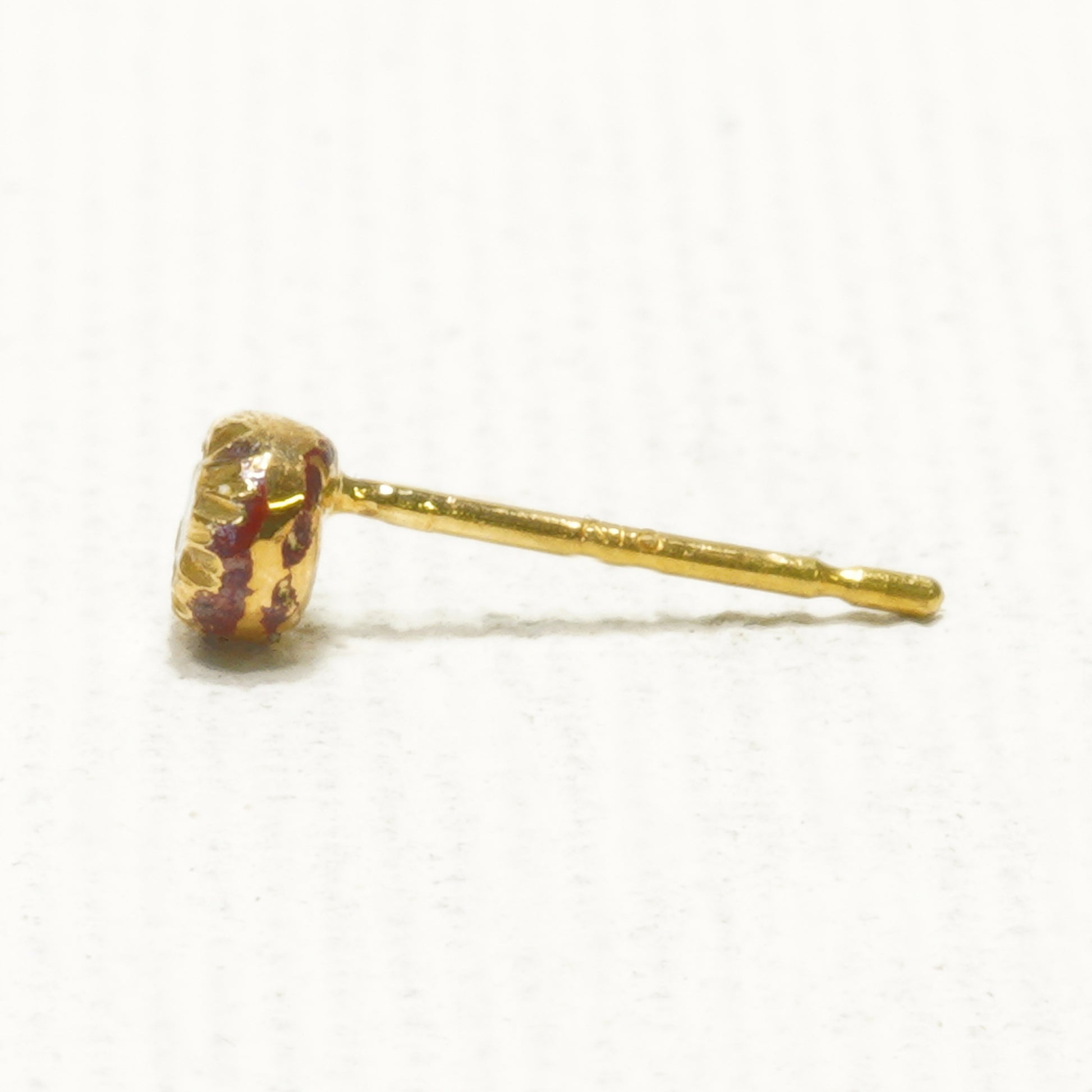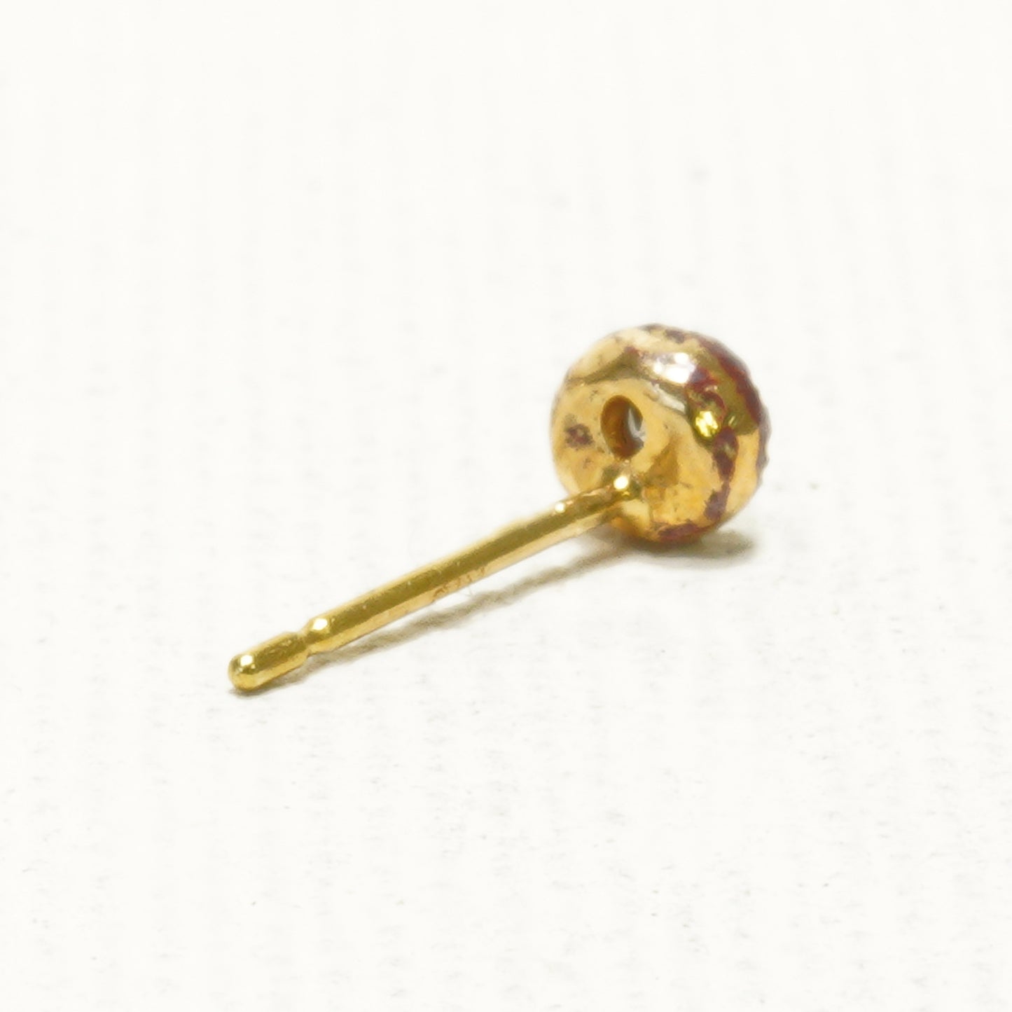 ラフなきざみの入ったフレームに繊細なダイヤモンドを埋めこんだピアス。