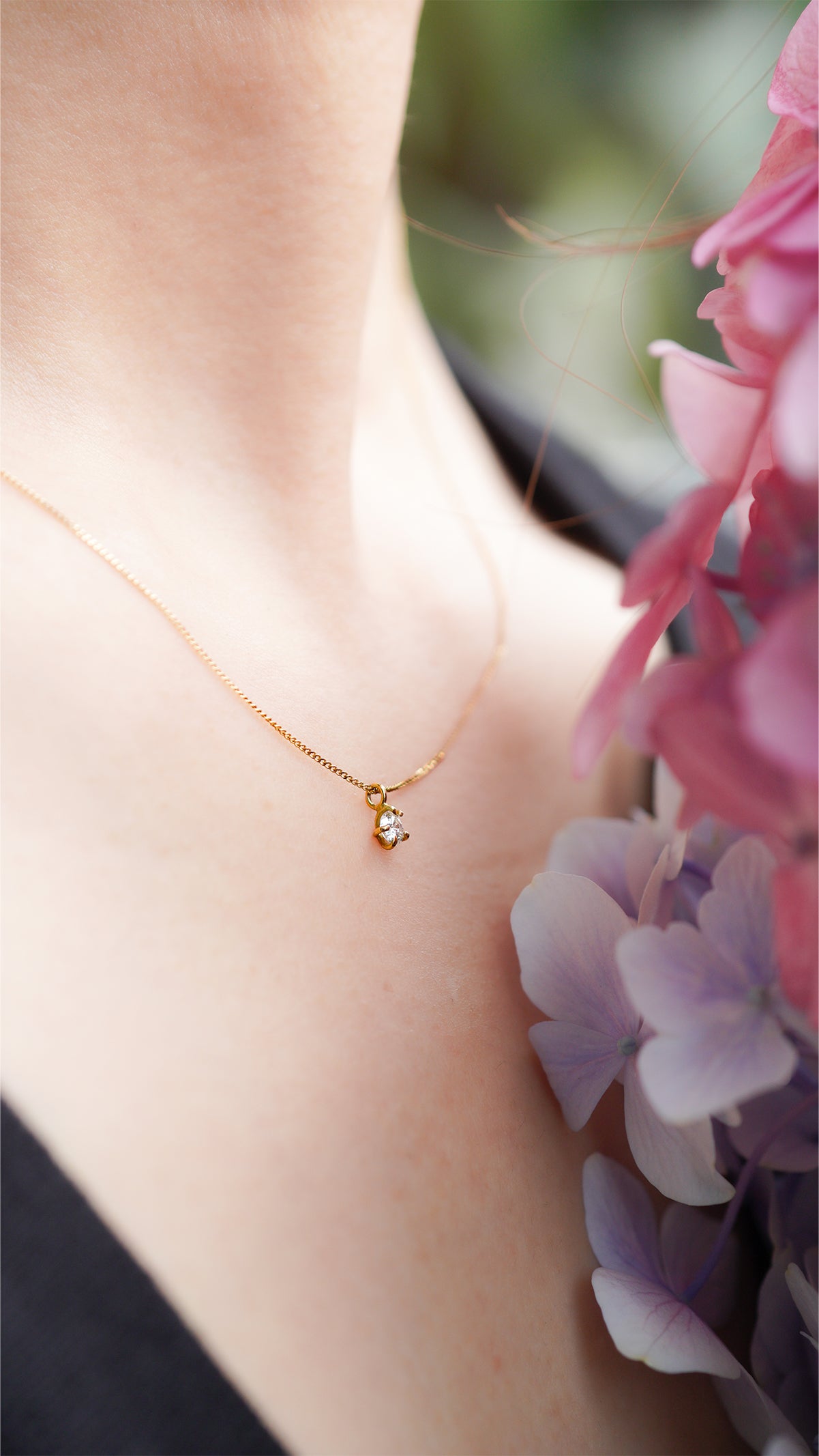 | サイズ | ネックレス全長:約40cm モチーフ:直径 約3.5mm(ダイヤモンド約約3mm) 厚み 約2mm ※ハンドメイド商品の特性上、サイズは目安としてお考えください。 |