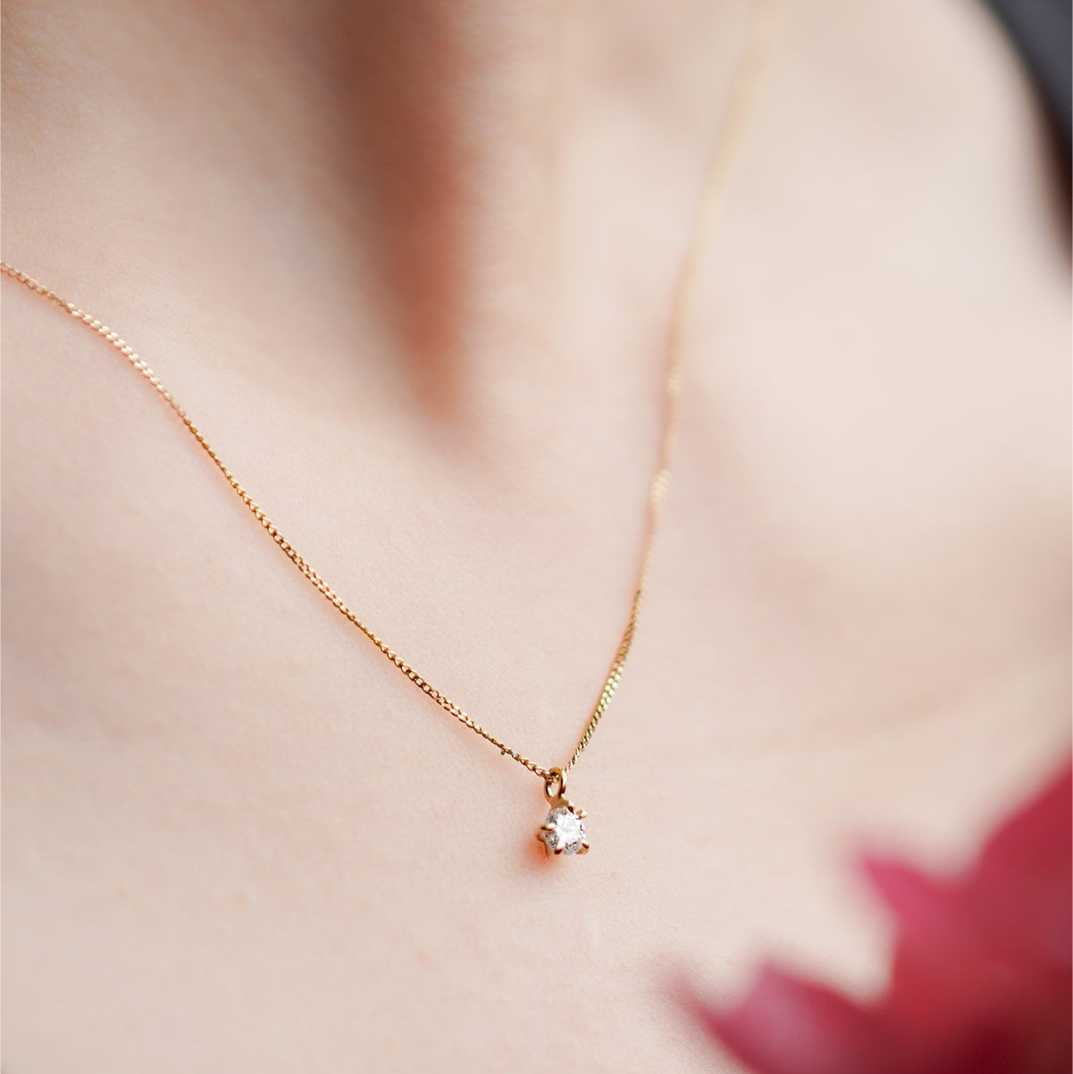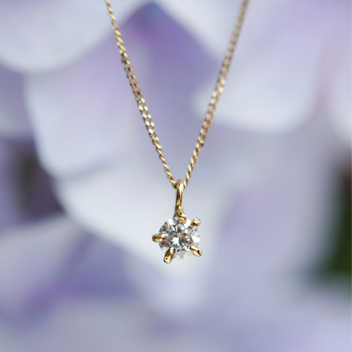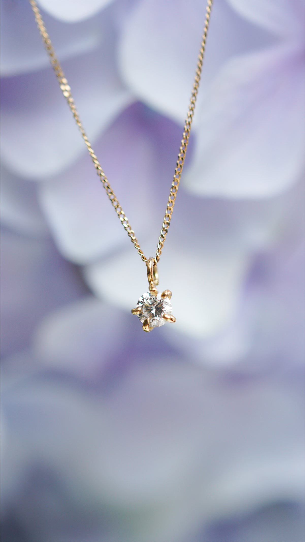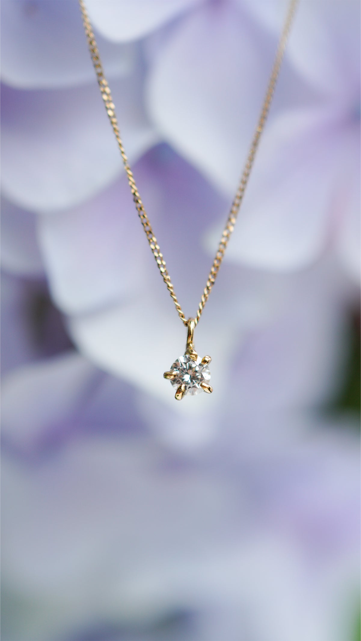 そんなダイヤモンドの魅力を無駄なくシンプルに惹き立たせる5つ爪ダイヤのk18ゴールドのネックレス。
