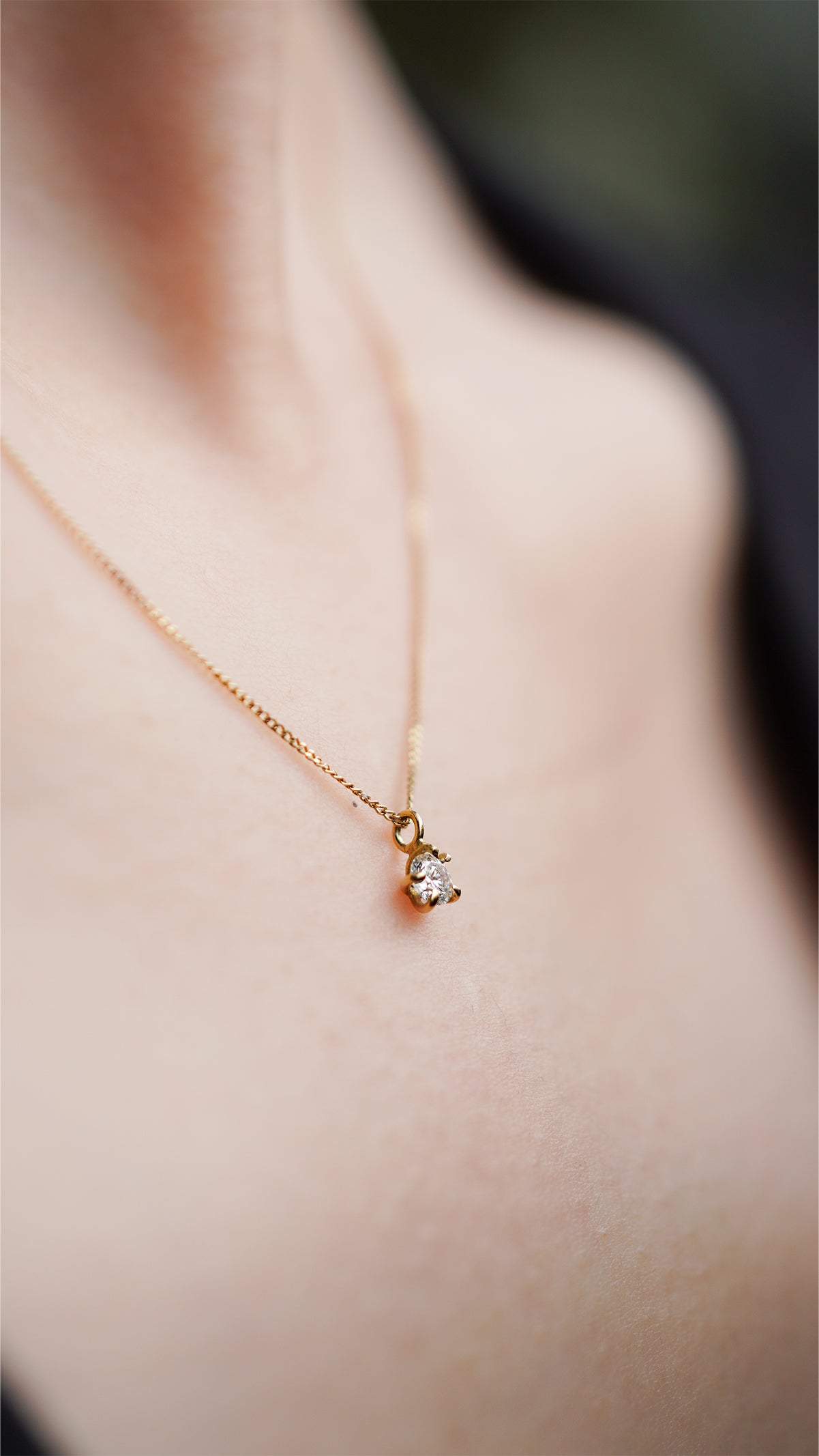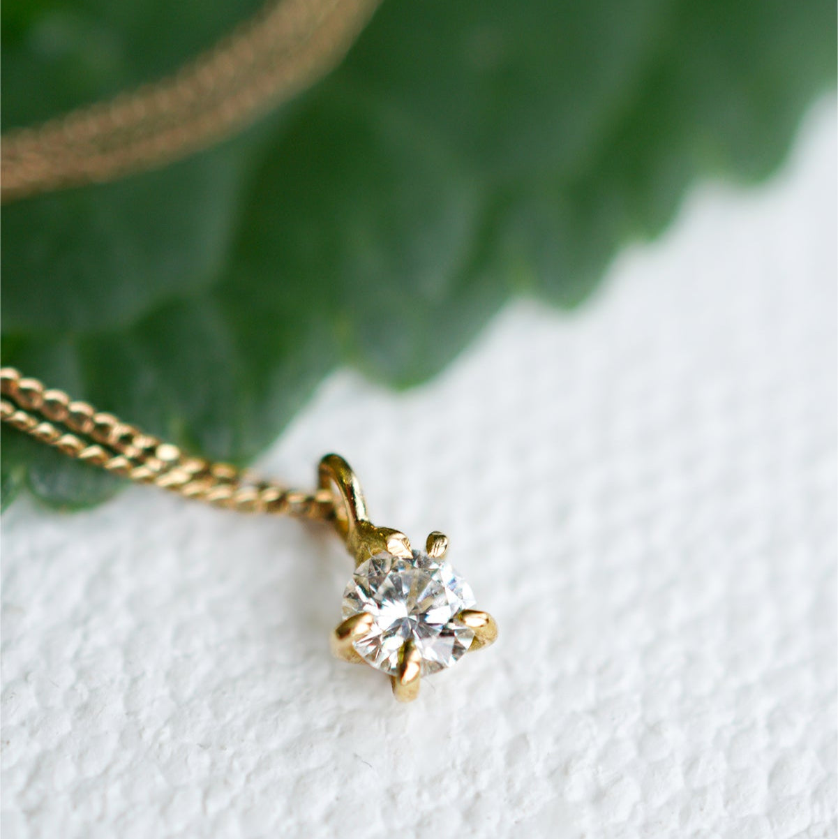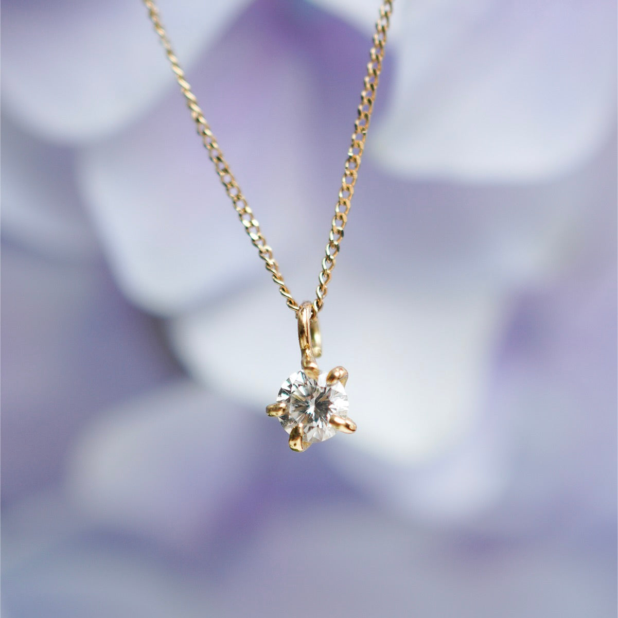 そんなダイヤモンドの魅力を無駄なくシンプルに惹き立たせる5つ爪ダイヤのk18ゴールドのネックレス。