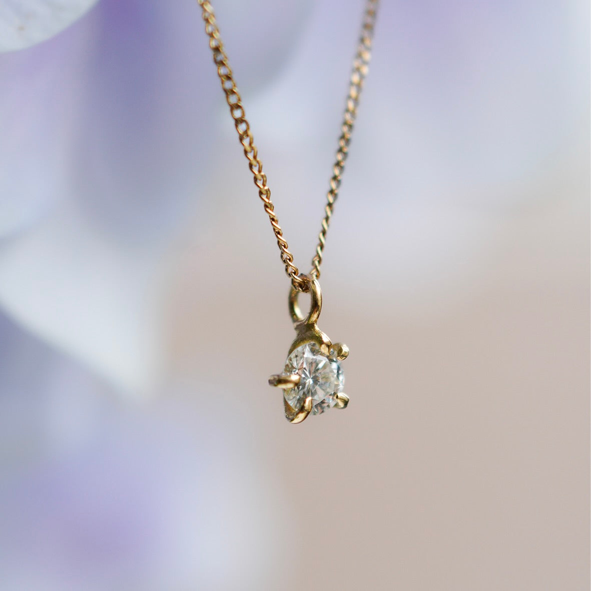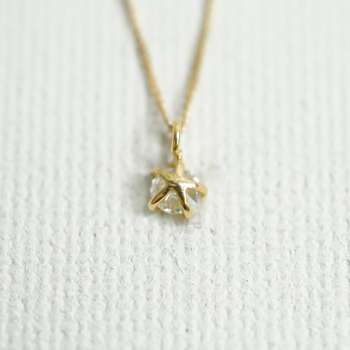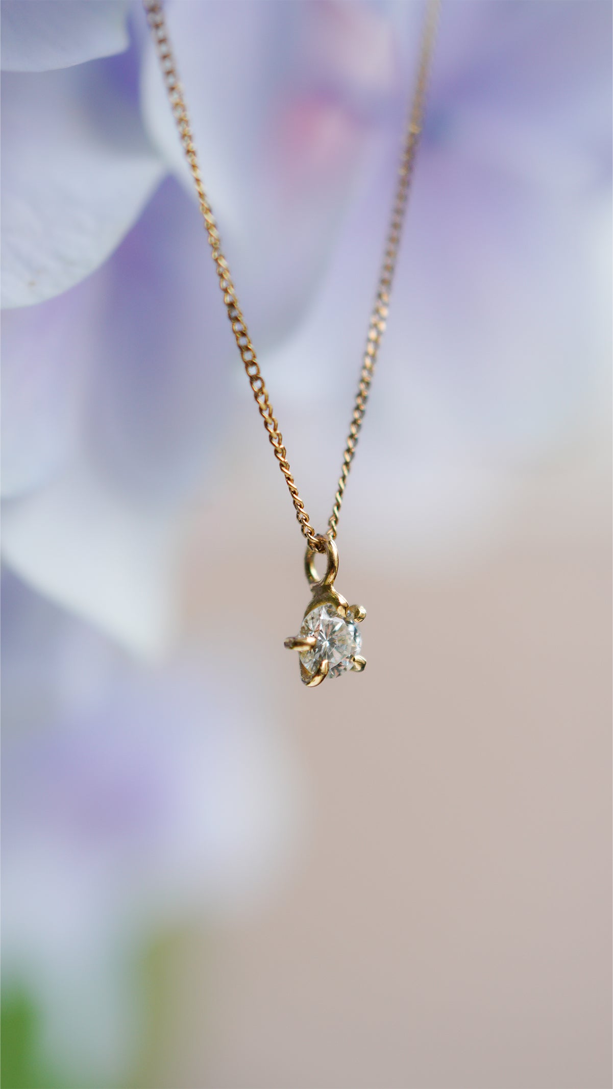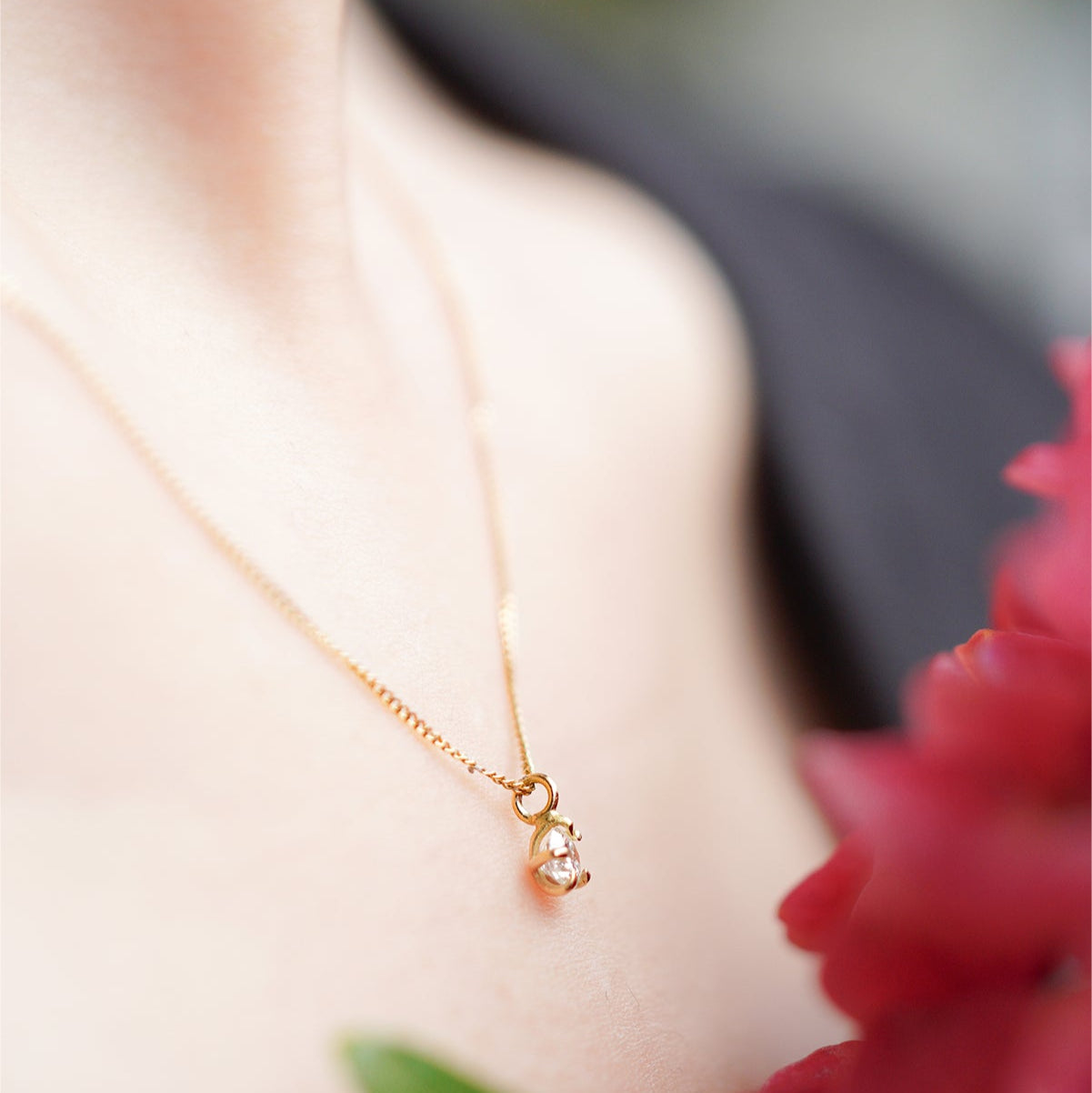 そんなダイヤモンドの魅力を無駄なくシンプルに惹き立たせる5つ爪ダイヤのk18ゴールドのネックレス。