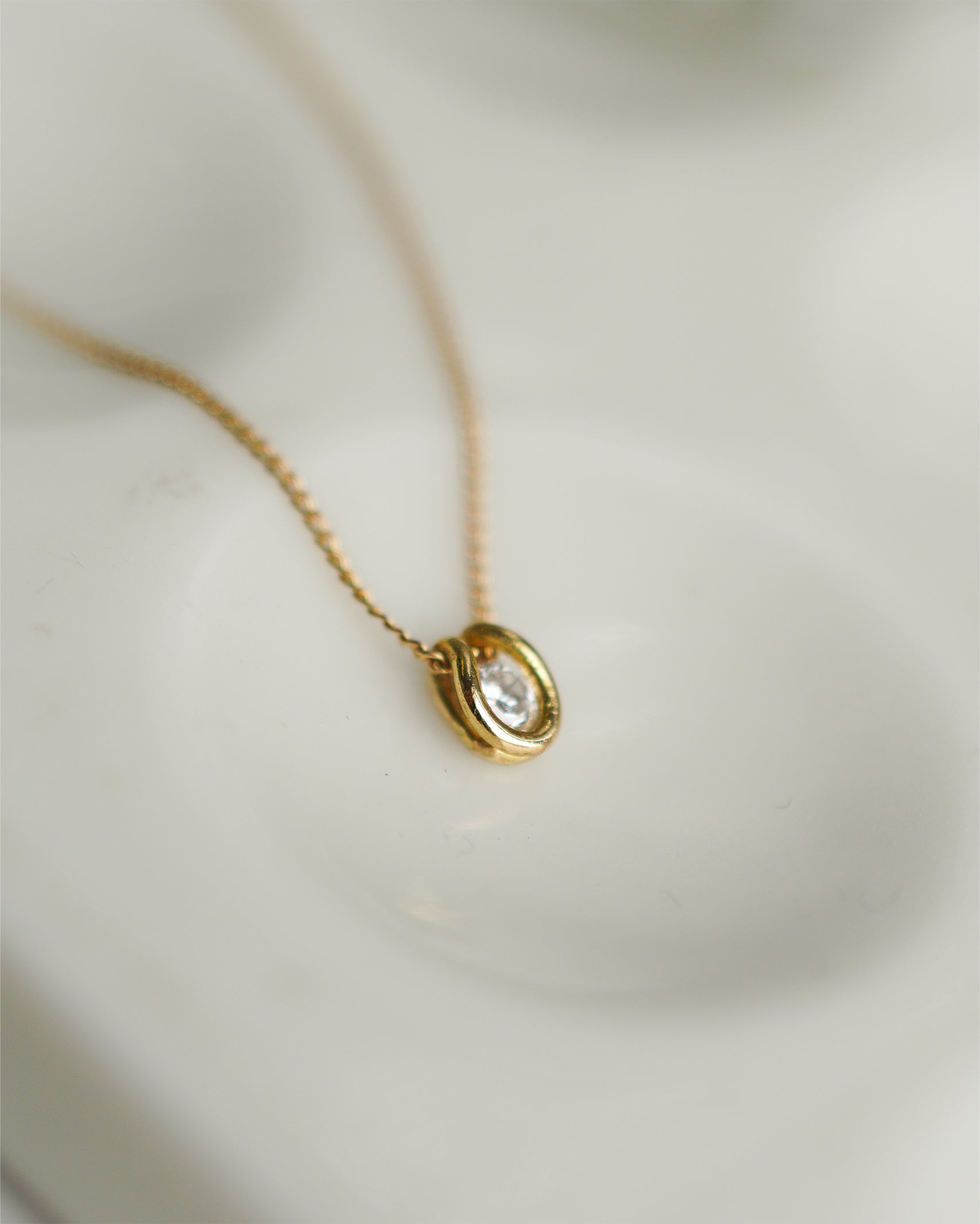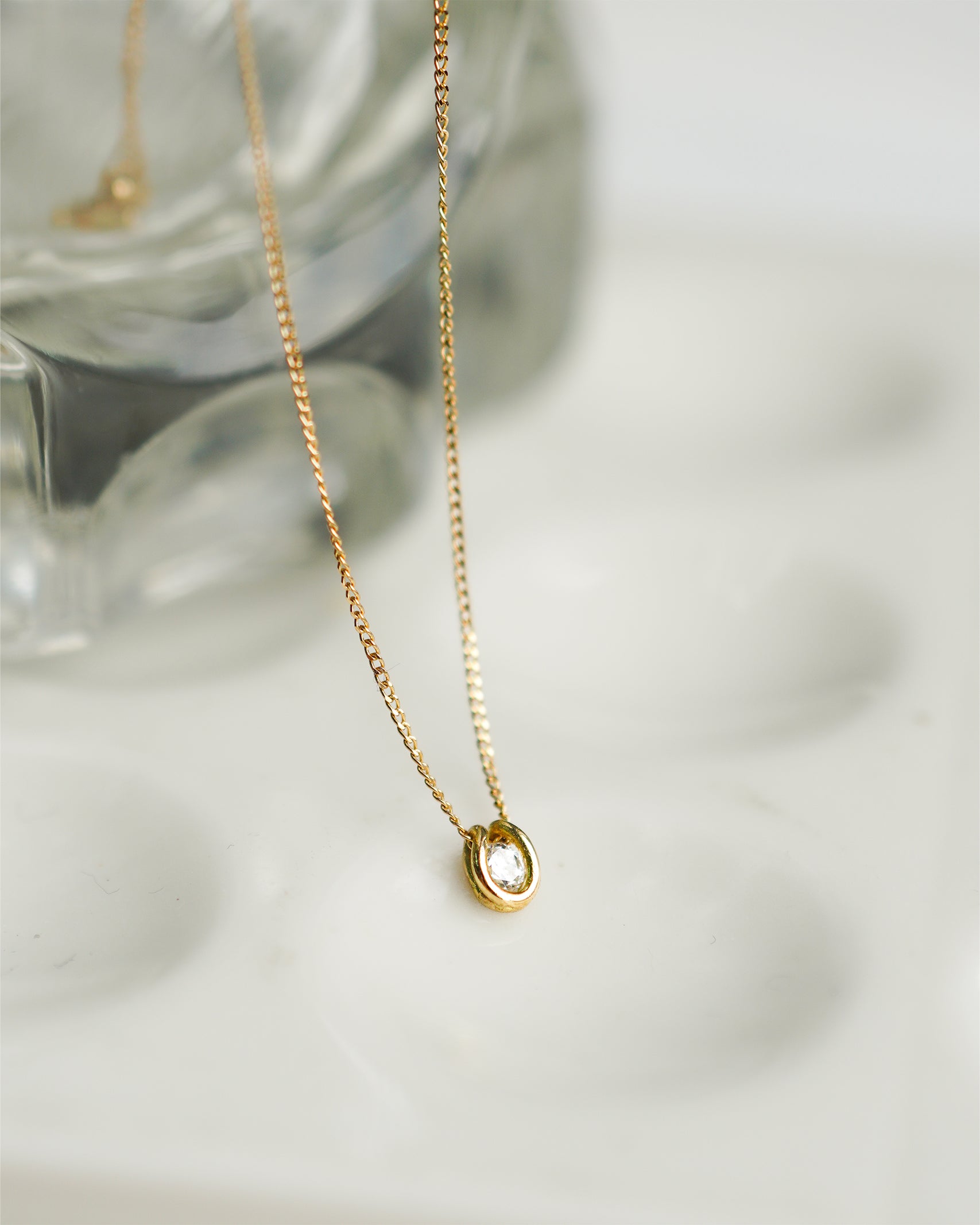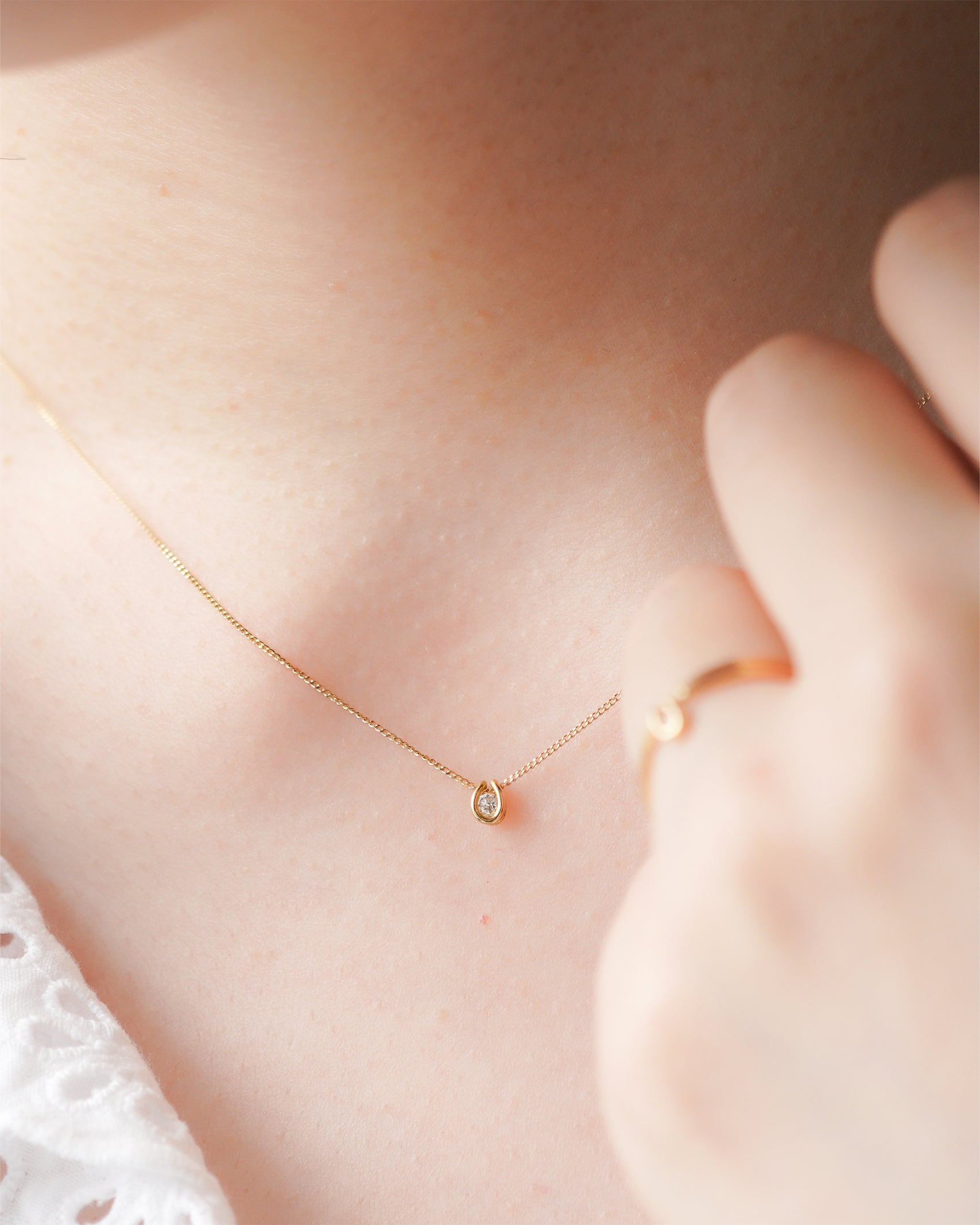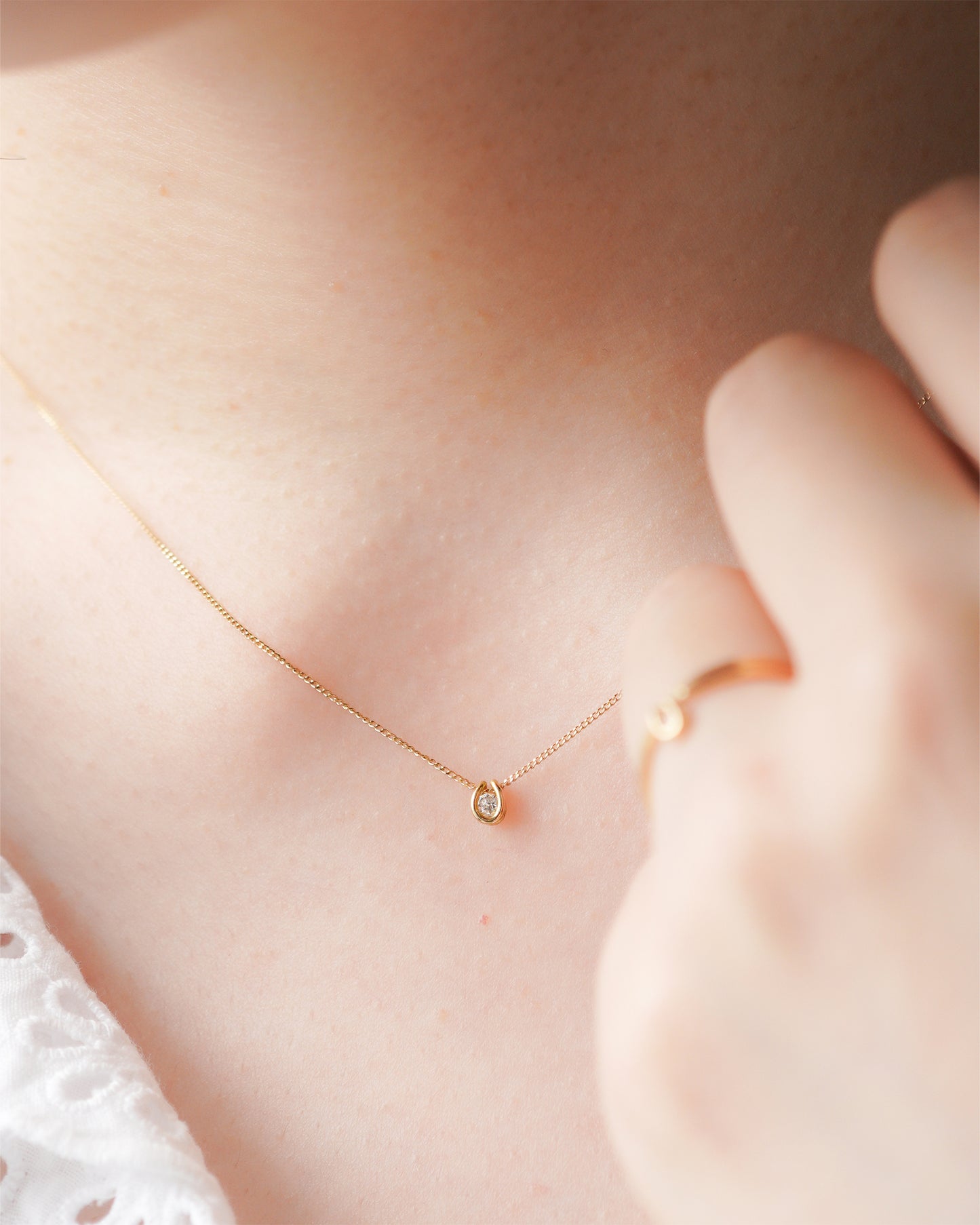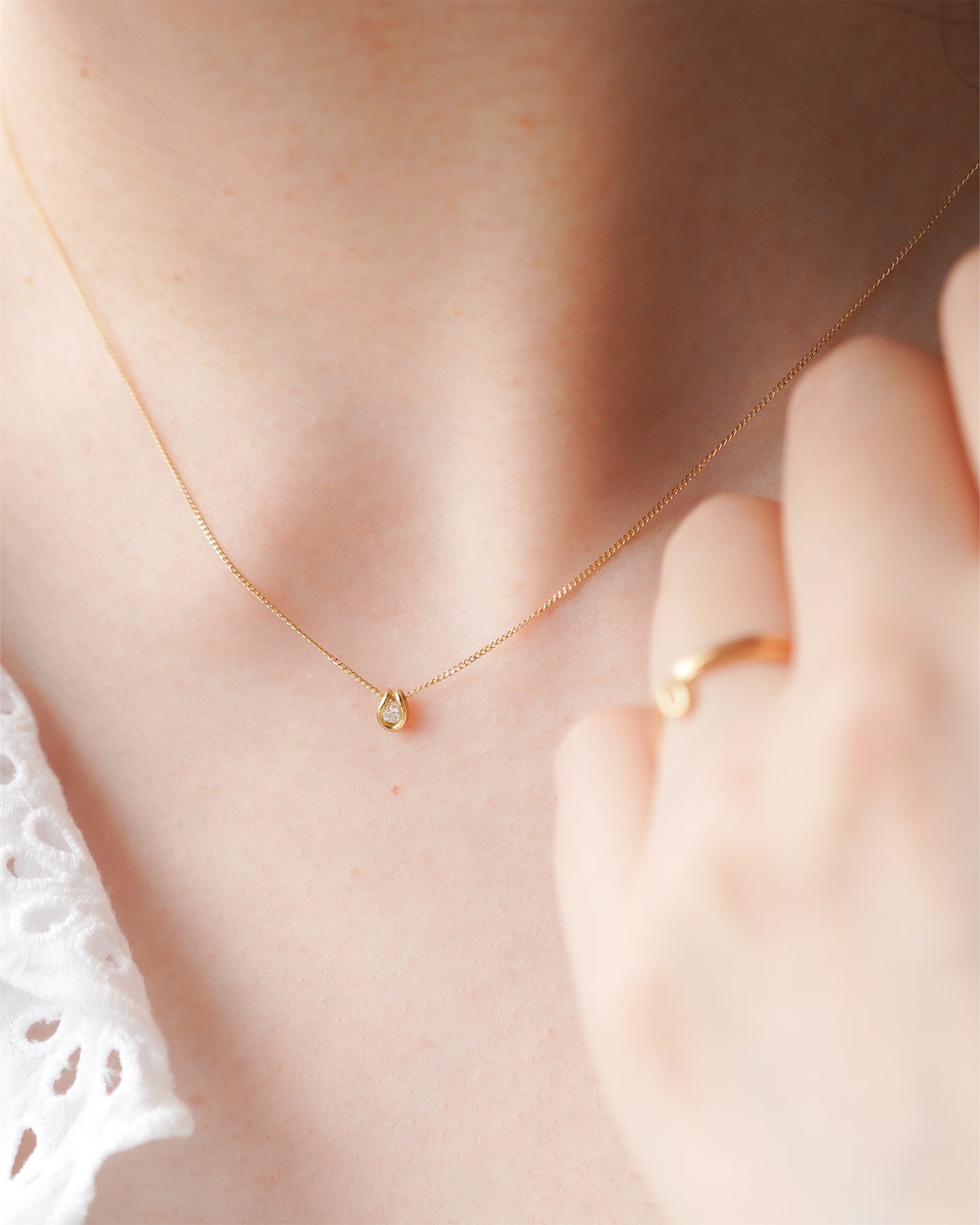 ダイヤモンドには様々な角度がら光が入る仕組みになっており動くたびにキラキラと輝きます。シンプルなデザインで重ねづけにもおすすめです。