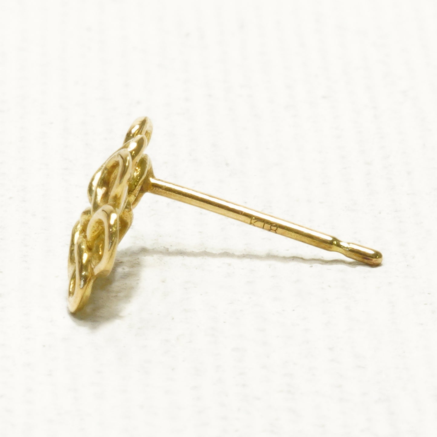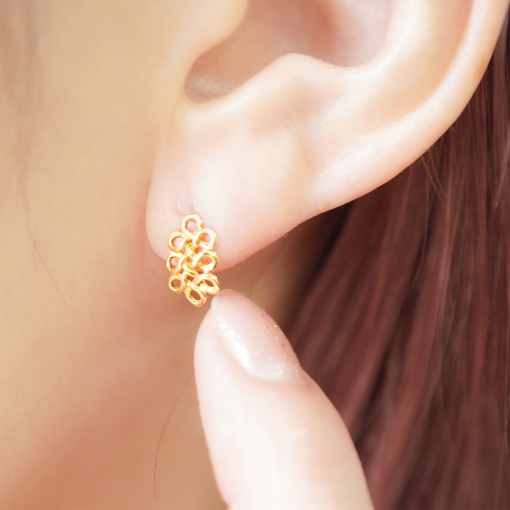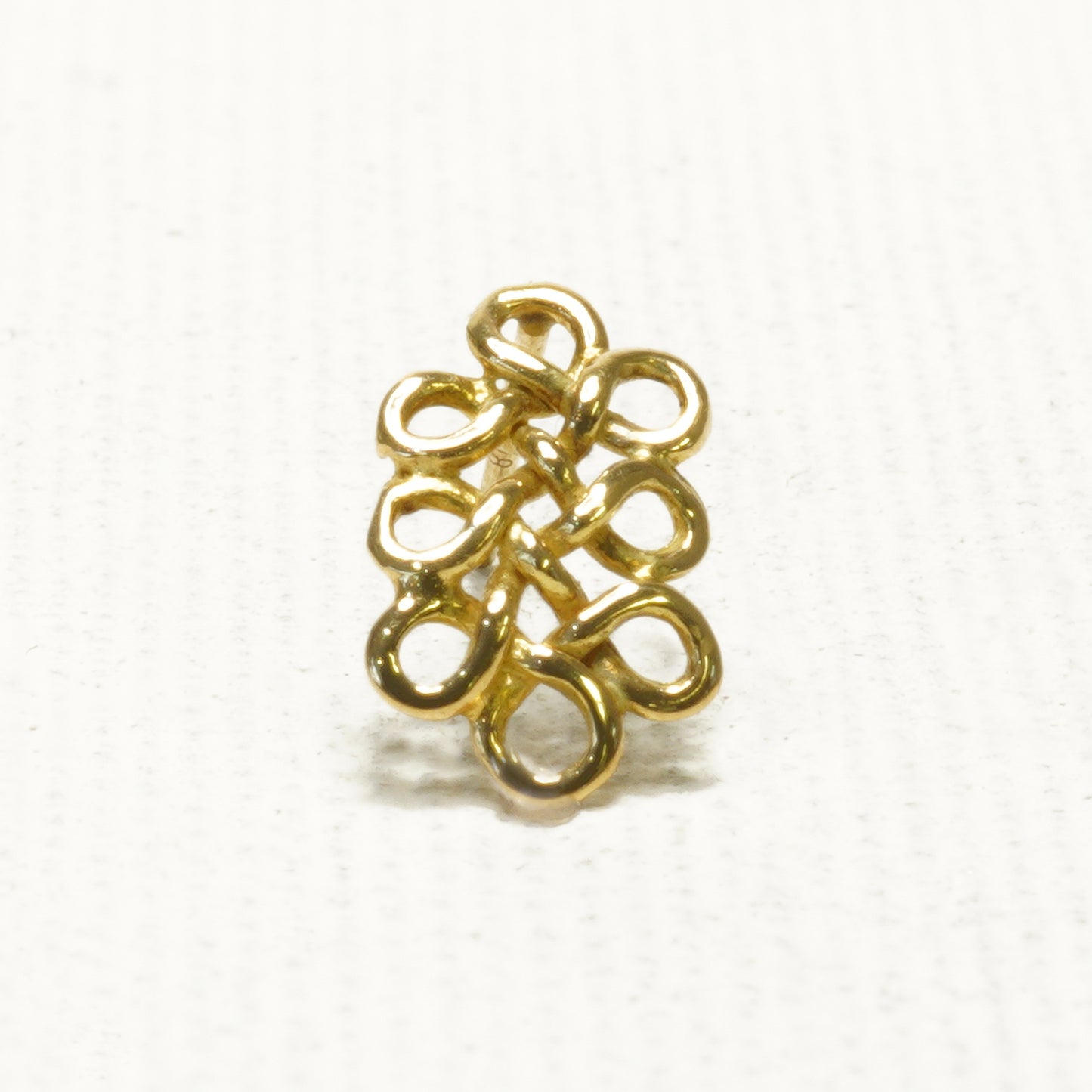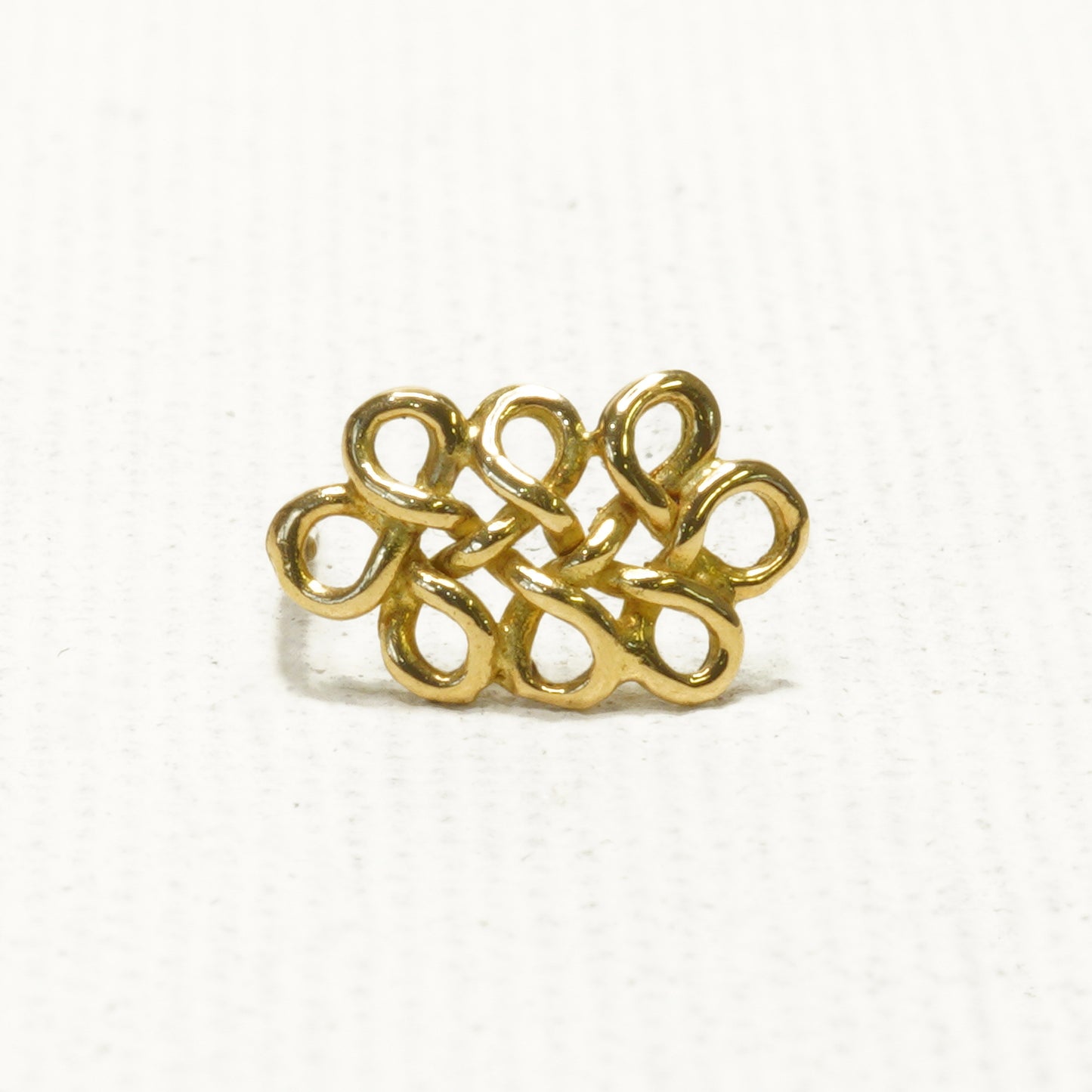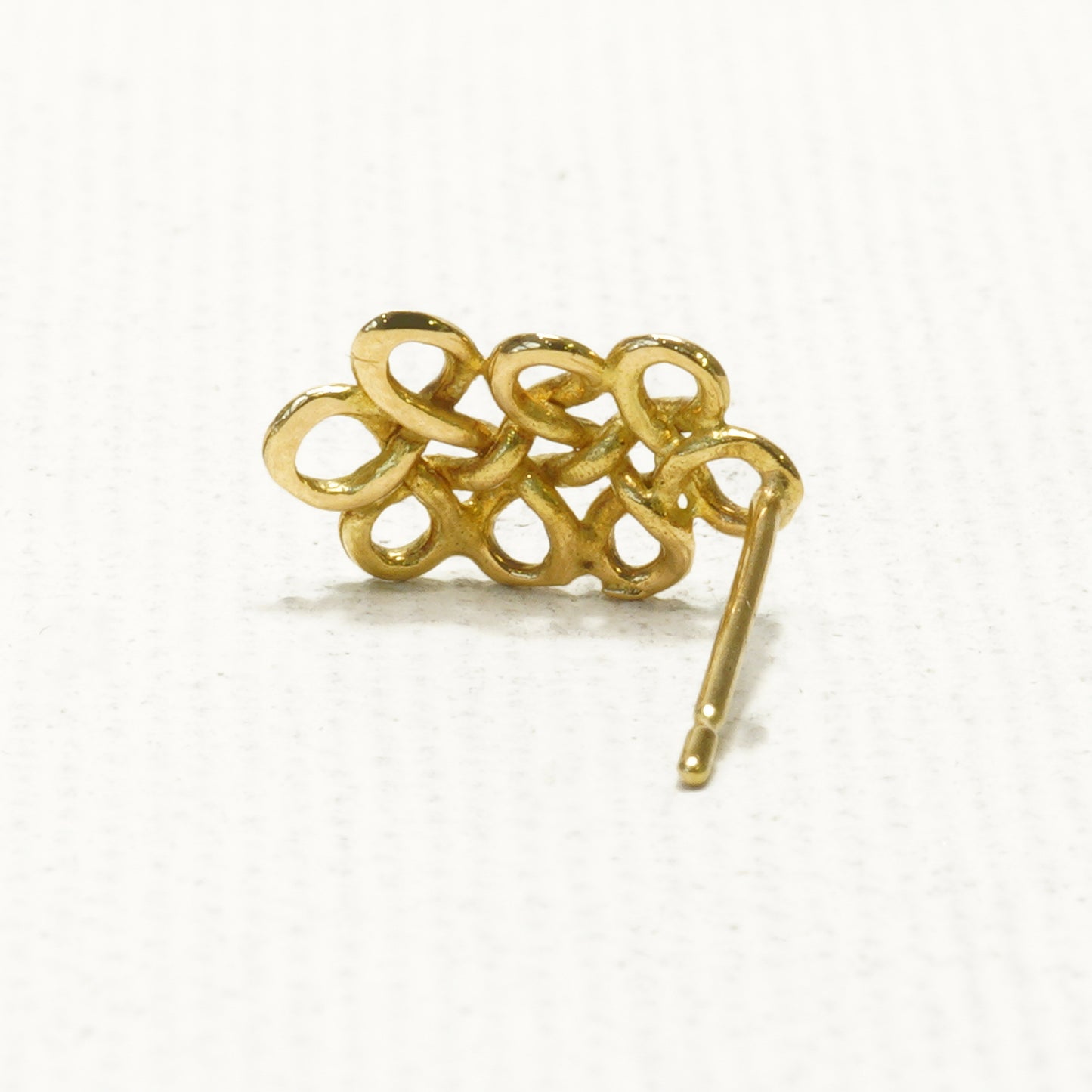 エンドレスノットをモチーフにした、ゴールドのピアス。