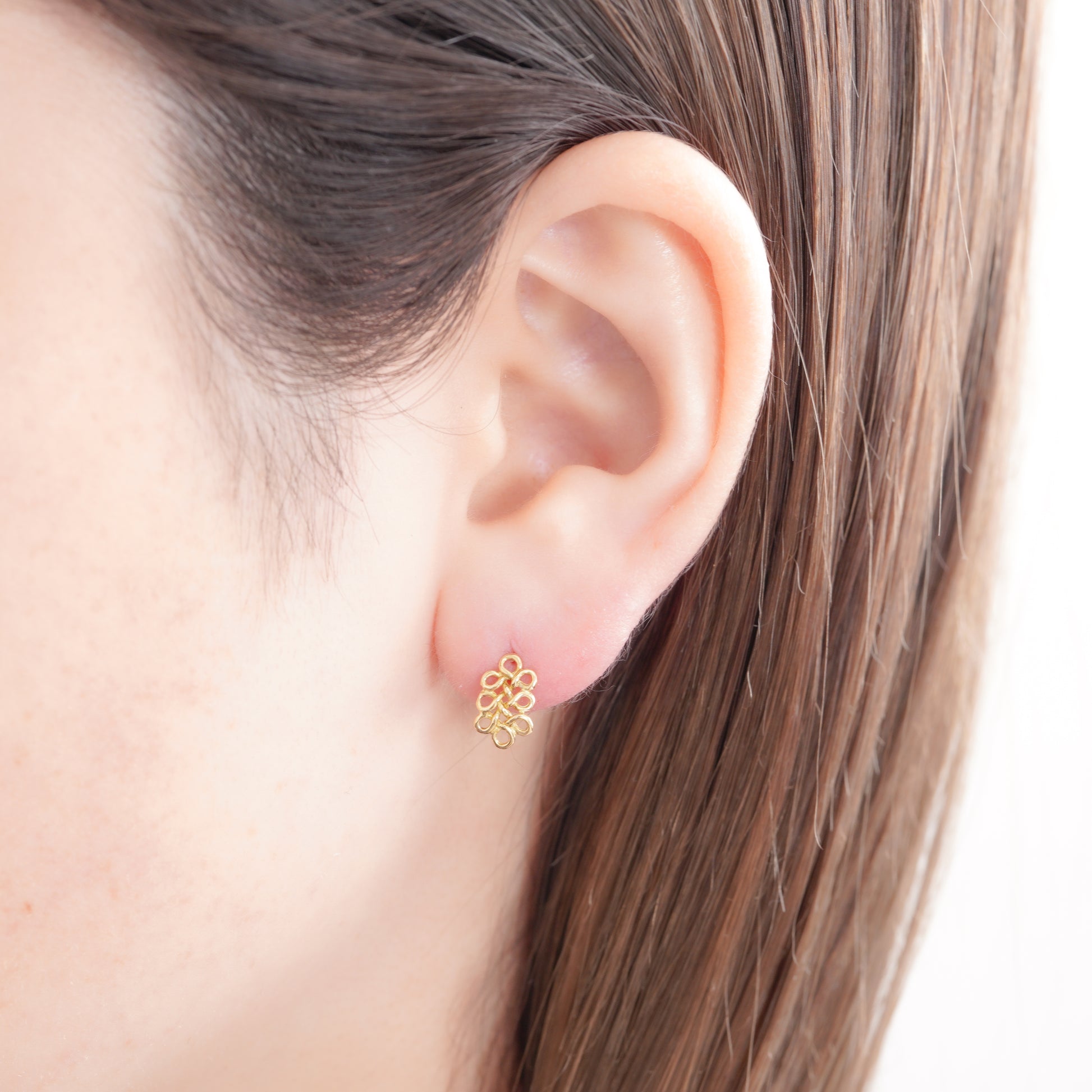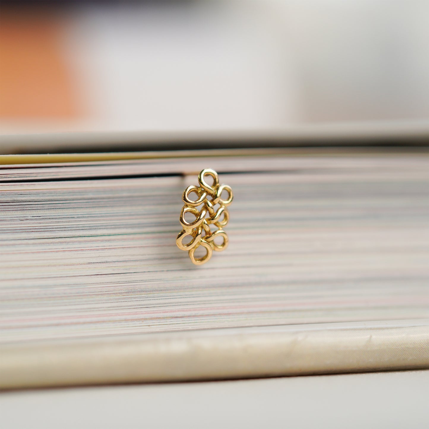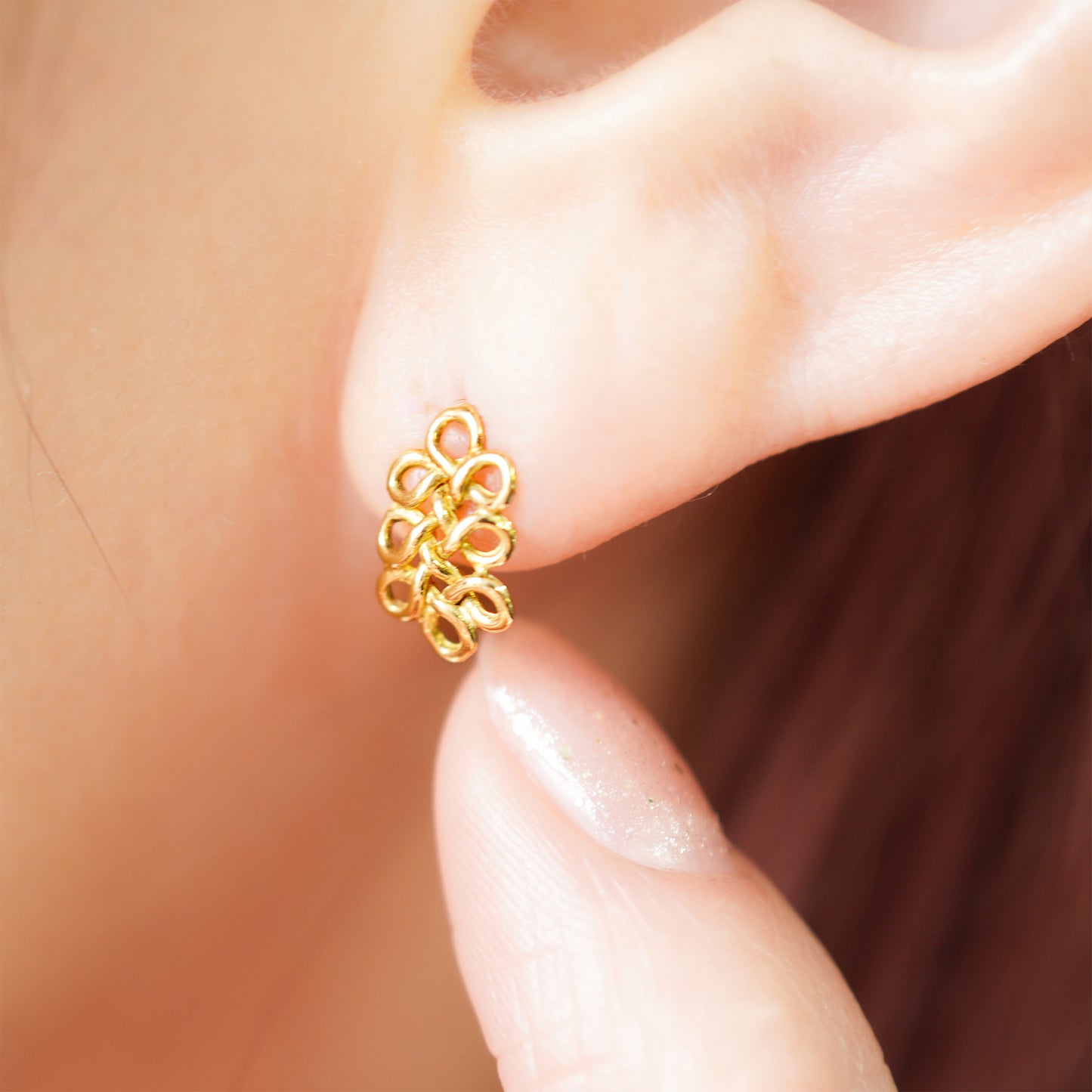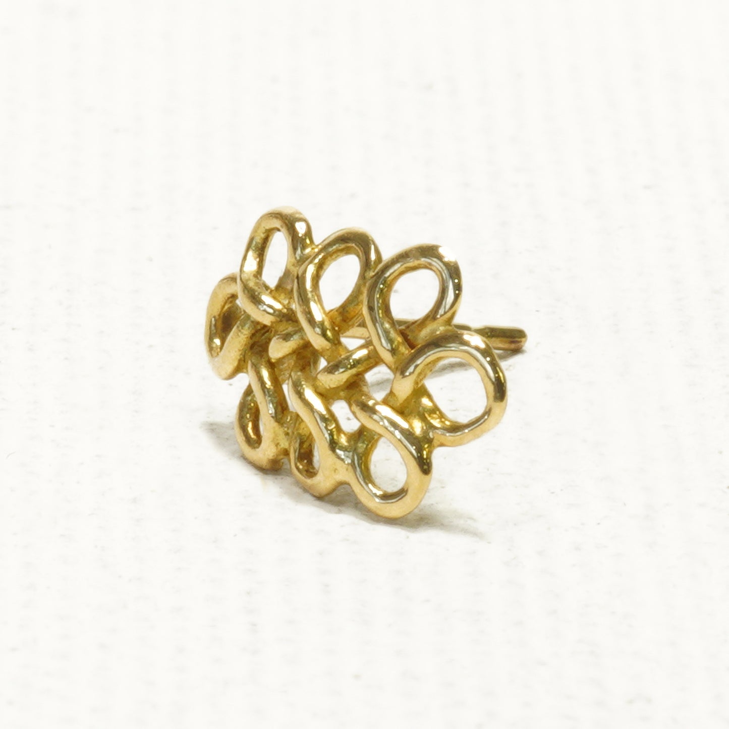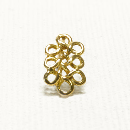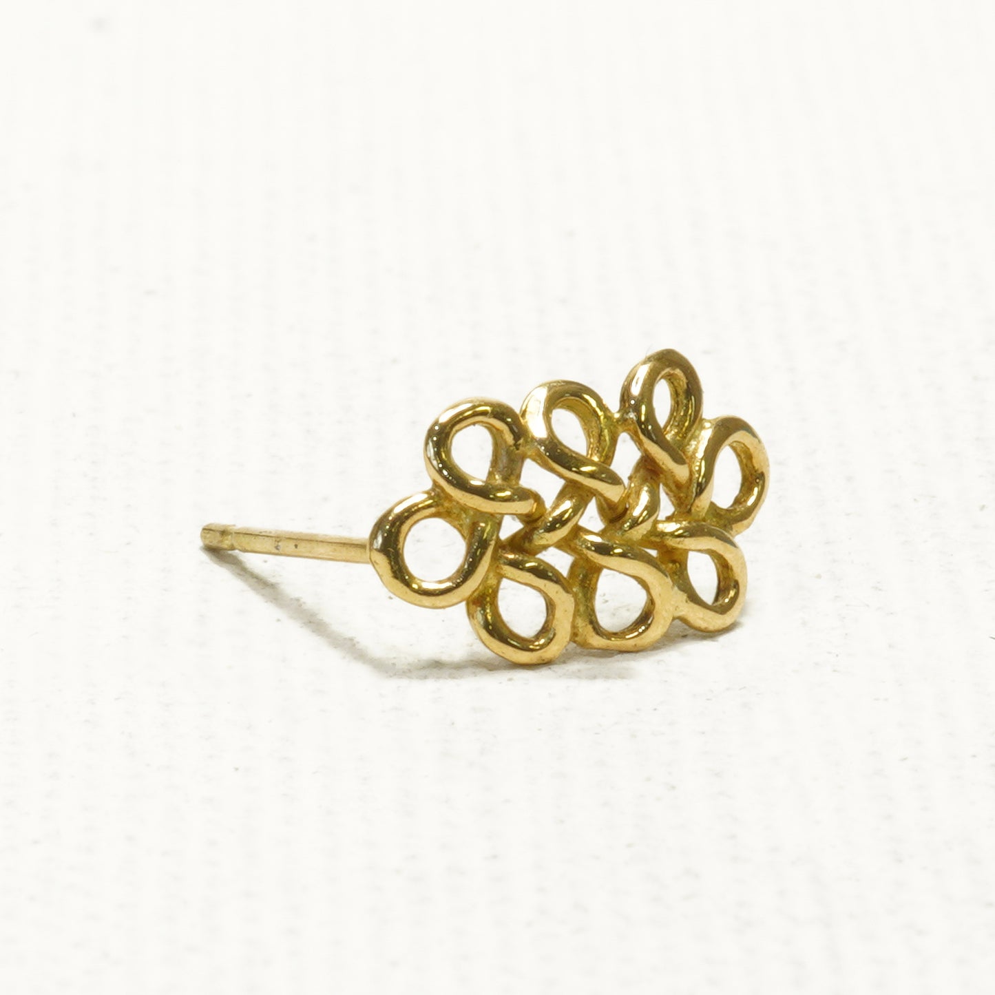 エンドレスノットをモチーフにした、ゴールドのピアス。
