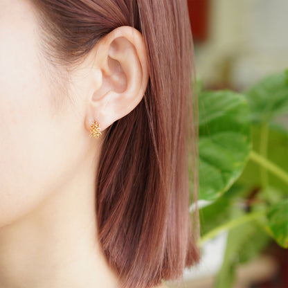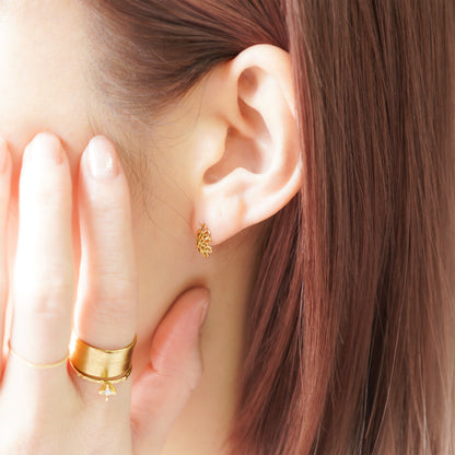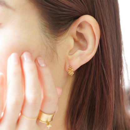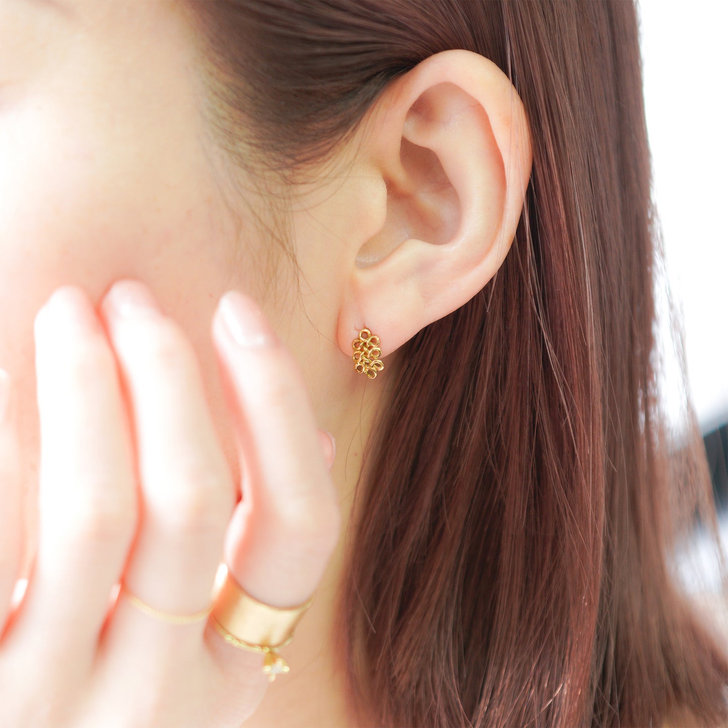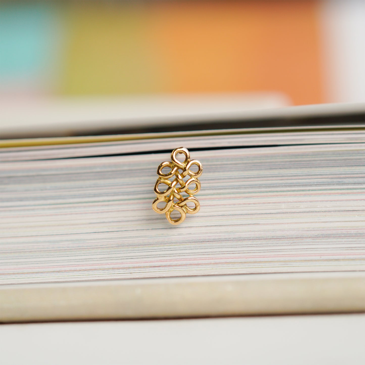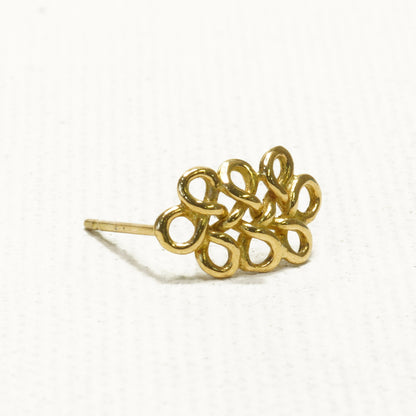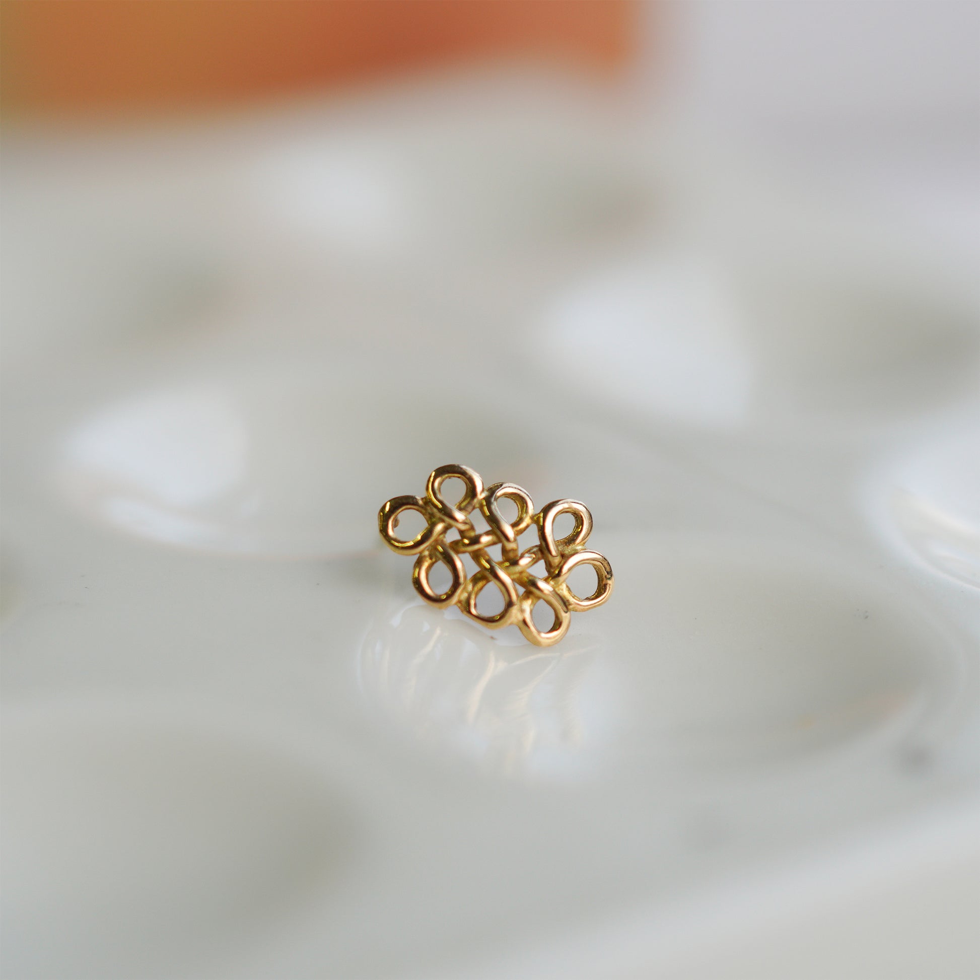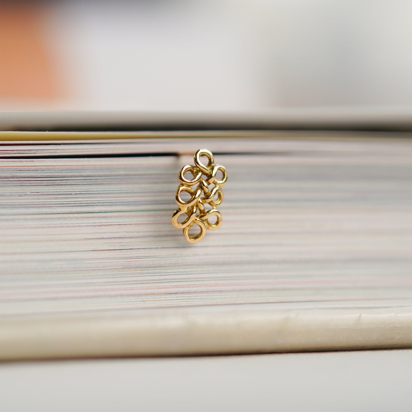 エンドレスノットをモチーフにした、ゴールドのピアス。