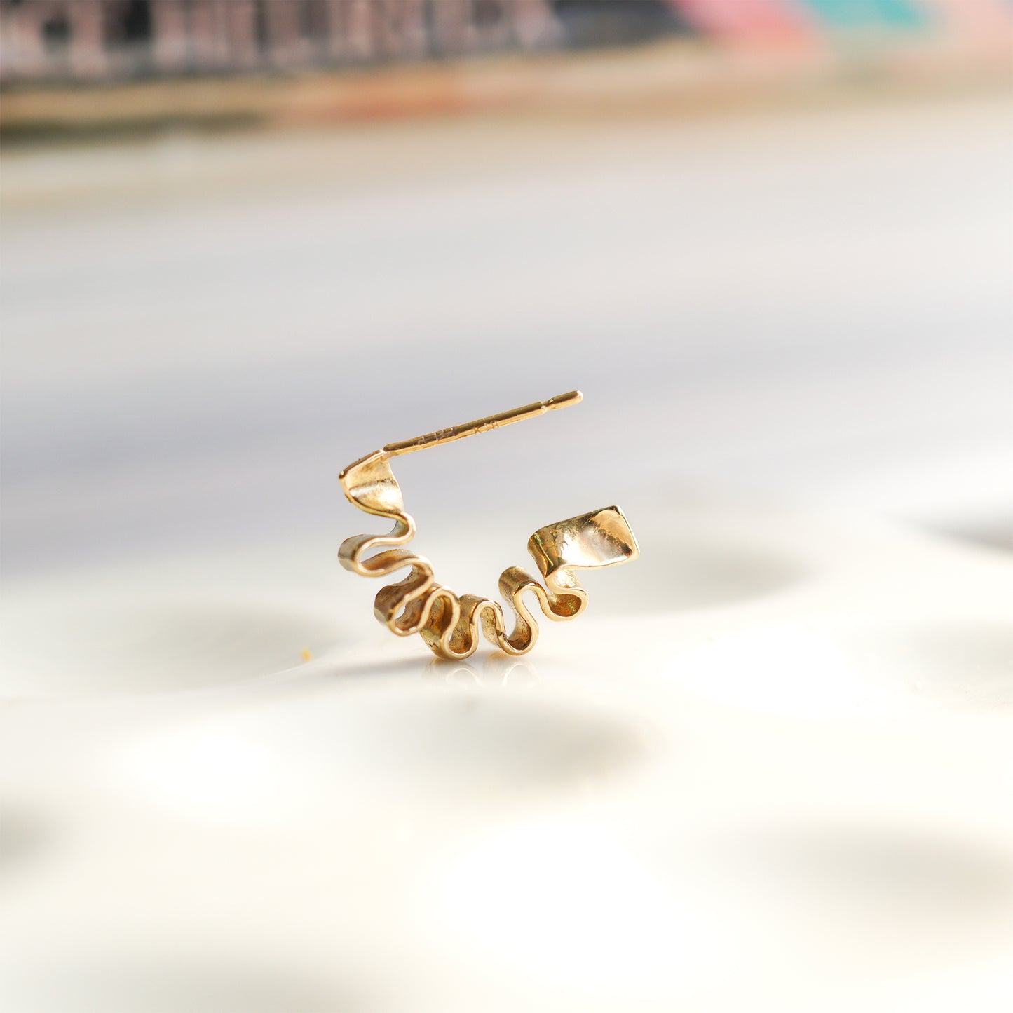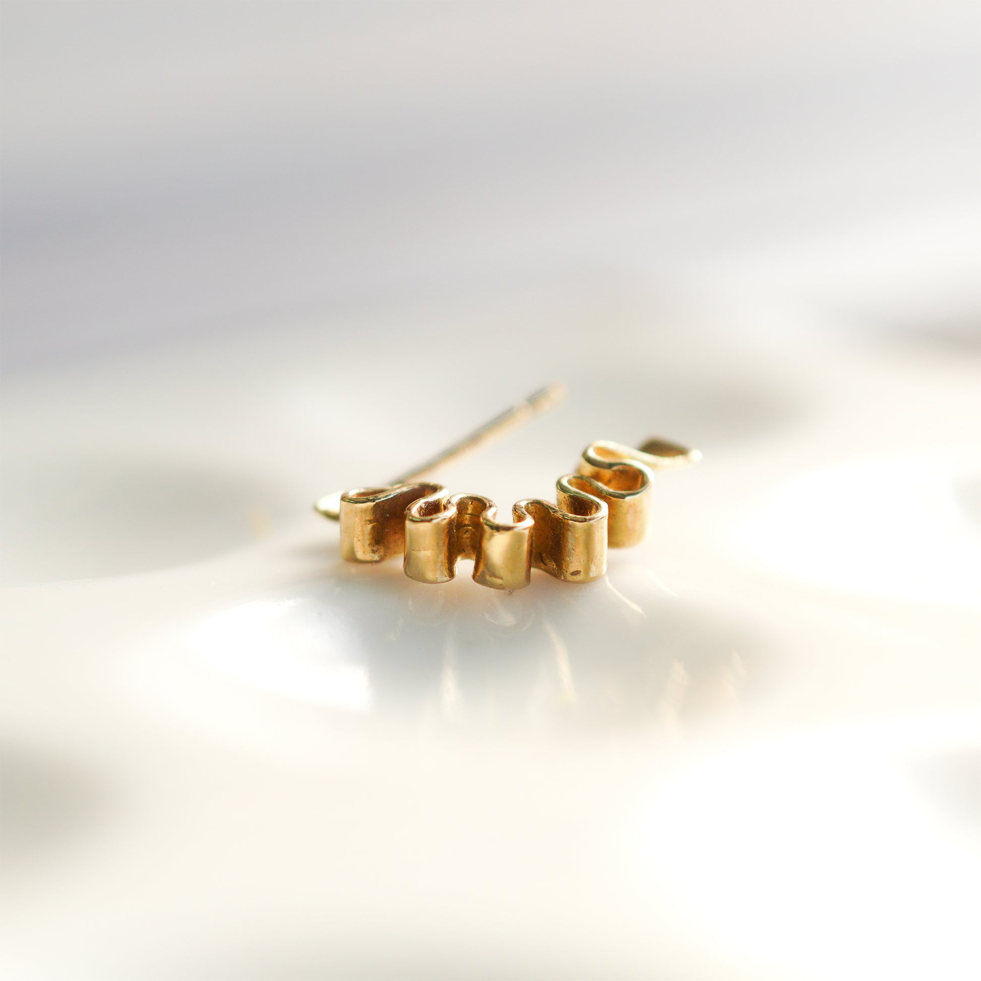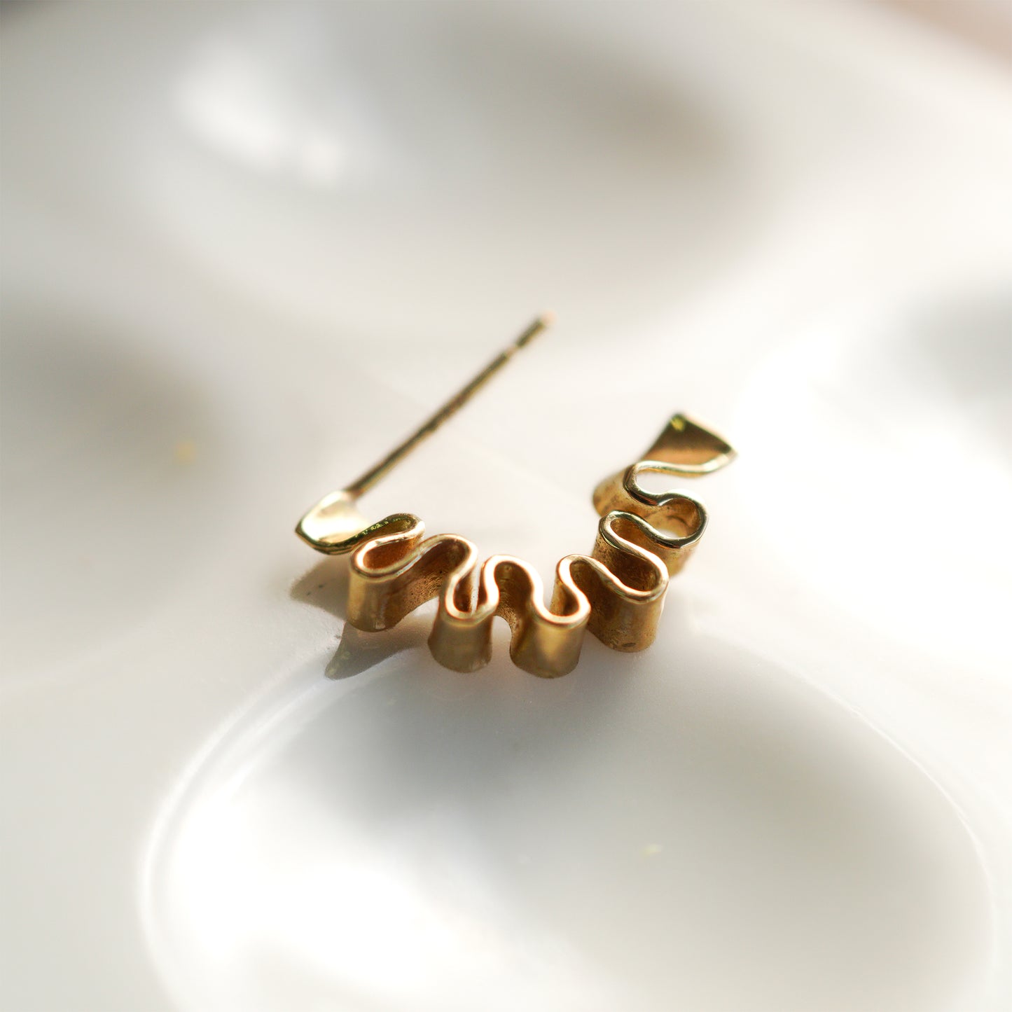 フリルやリボンのようなウェーブモチーフのピアス。