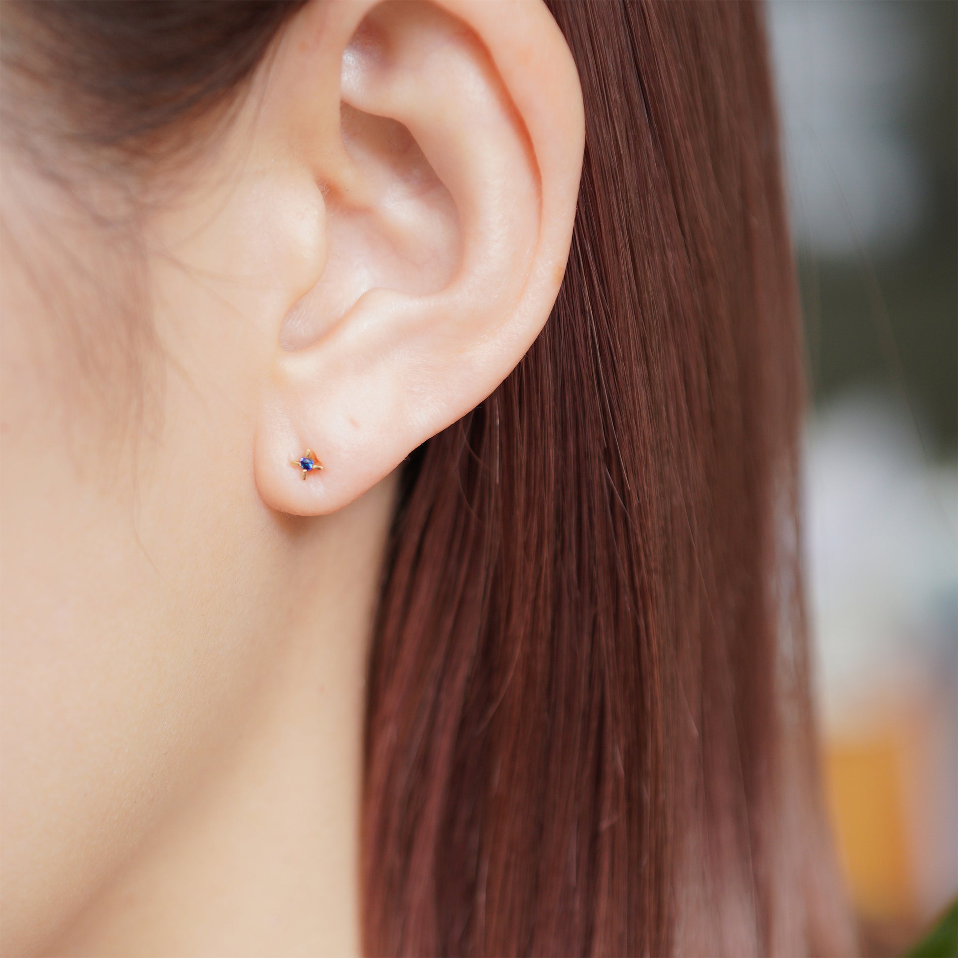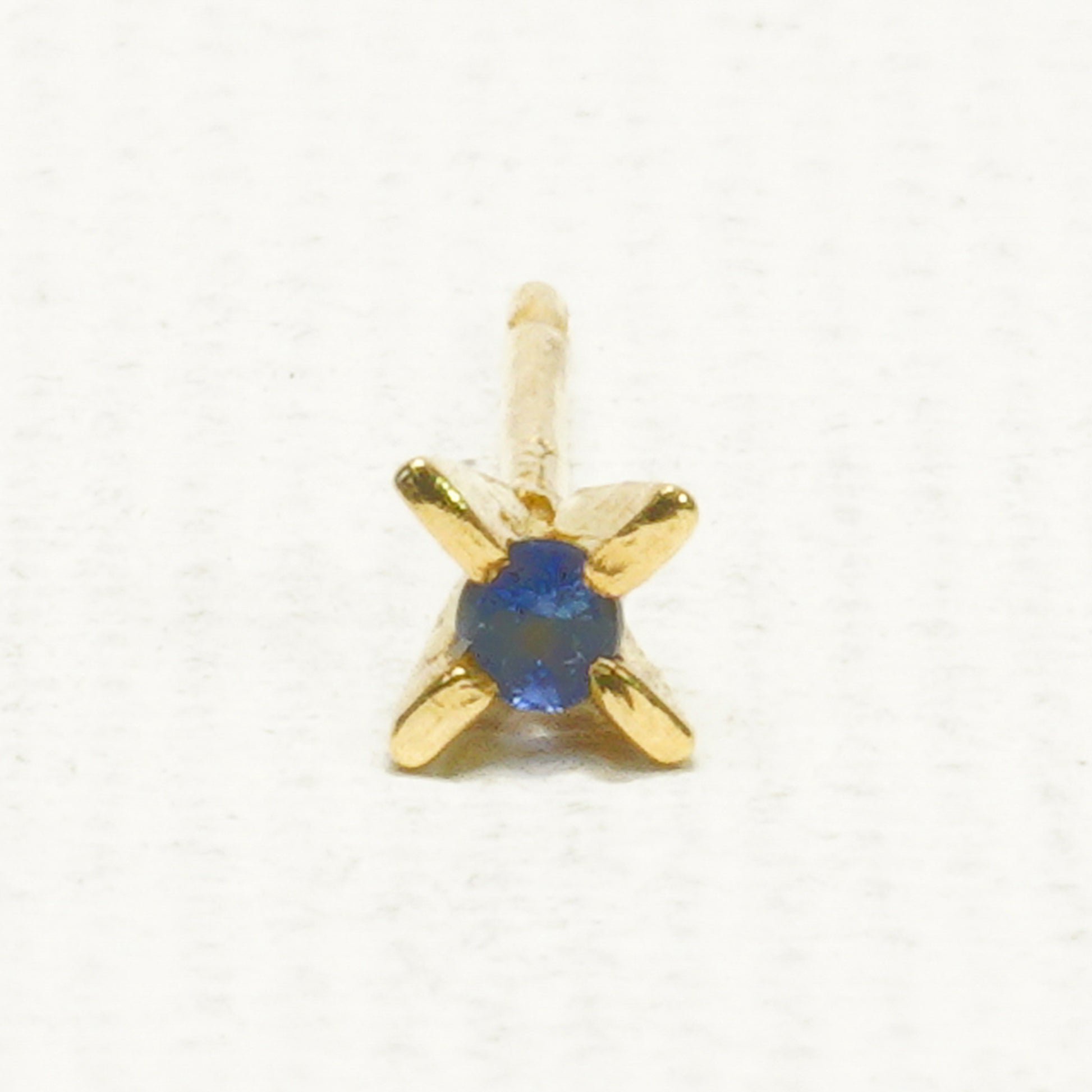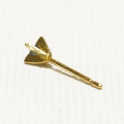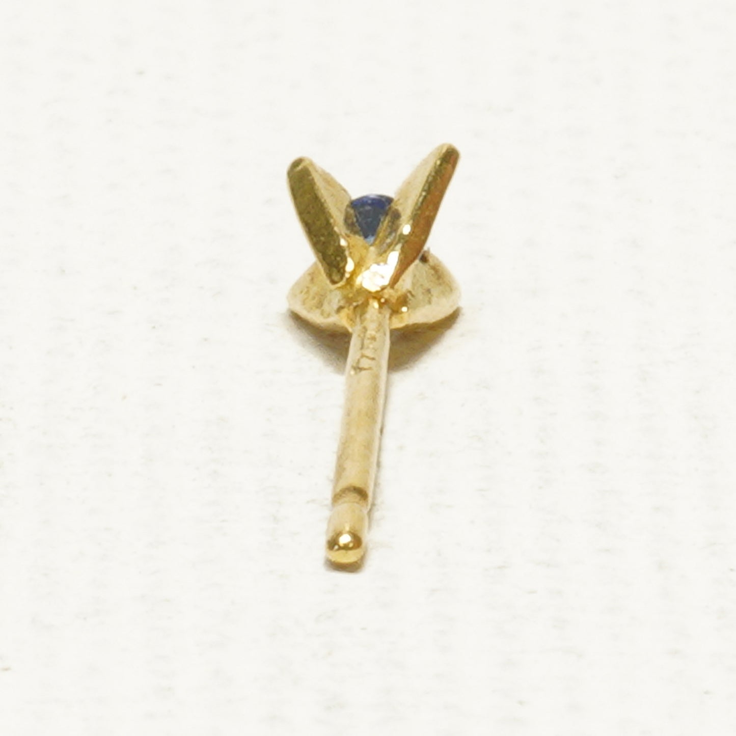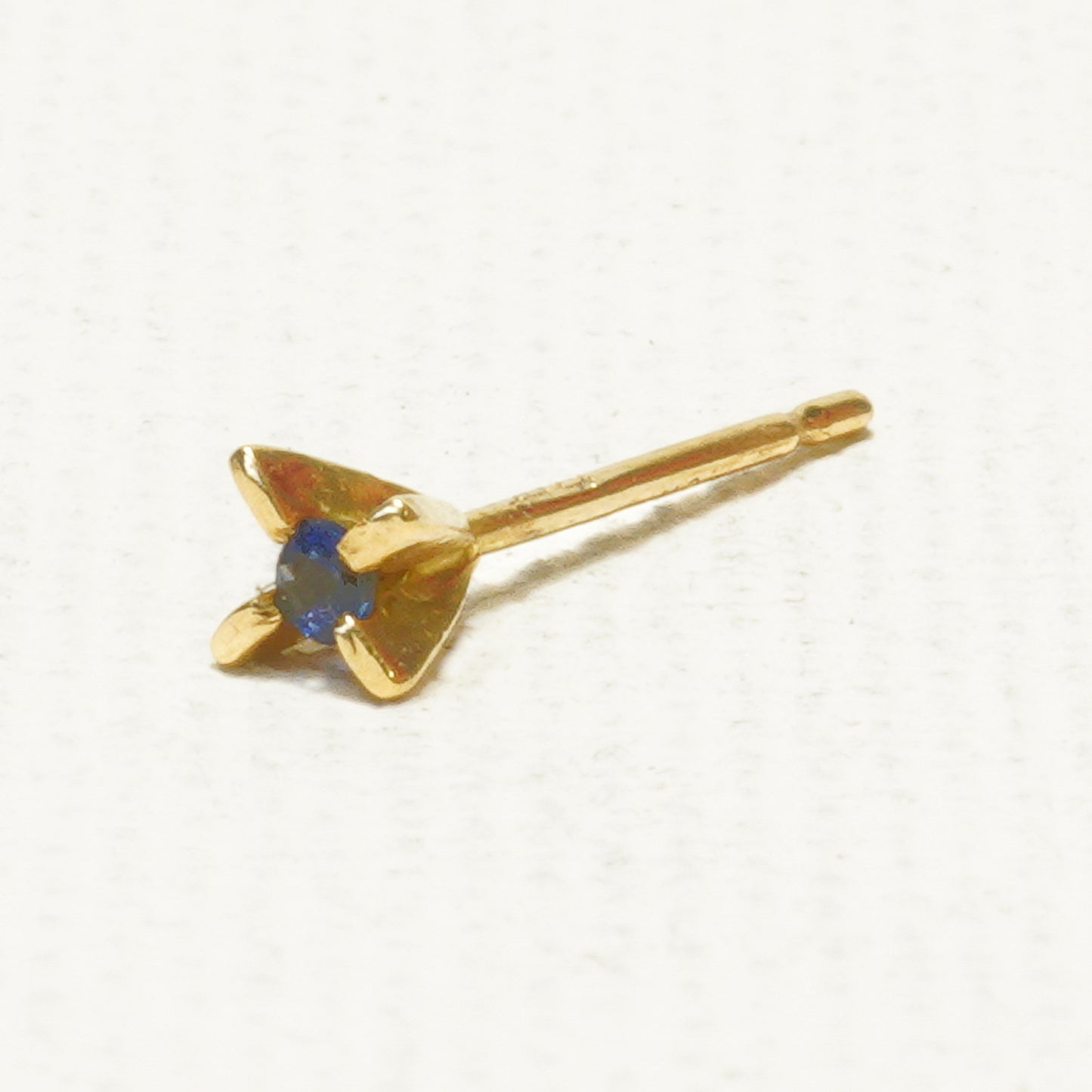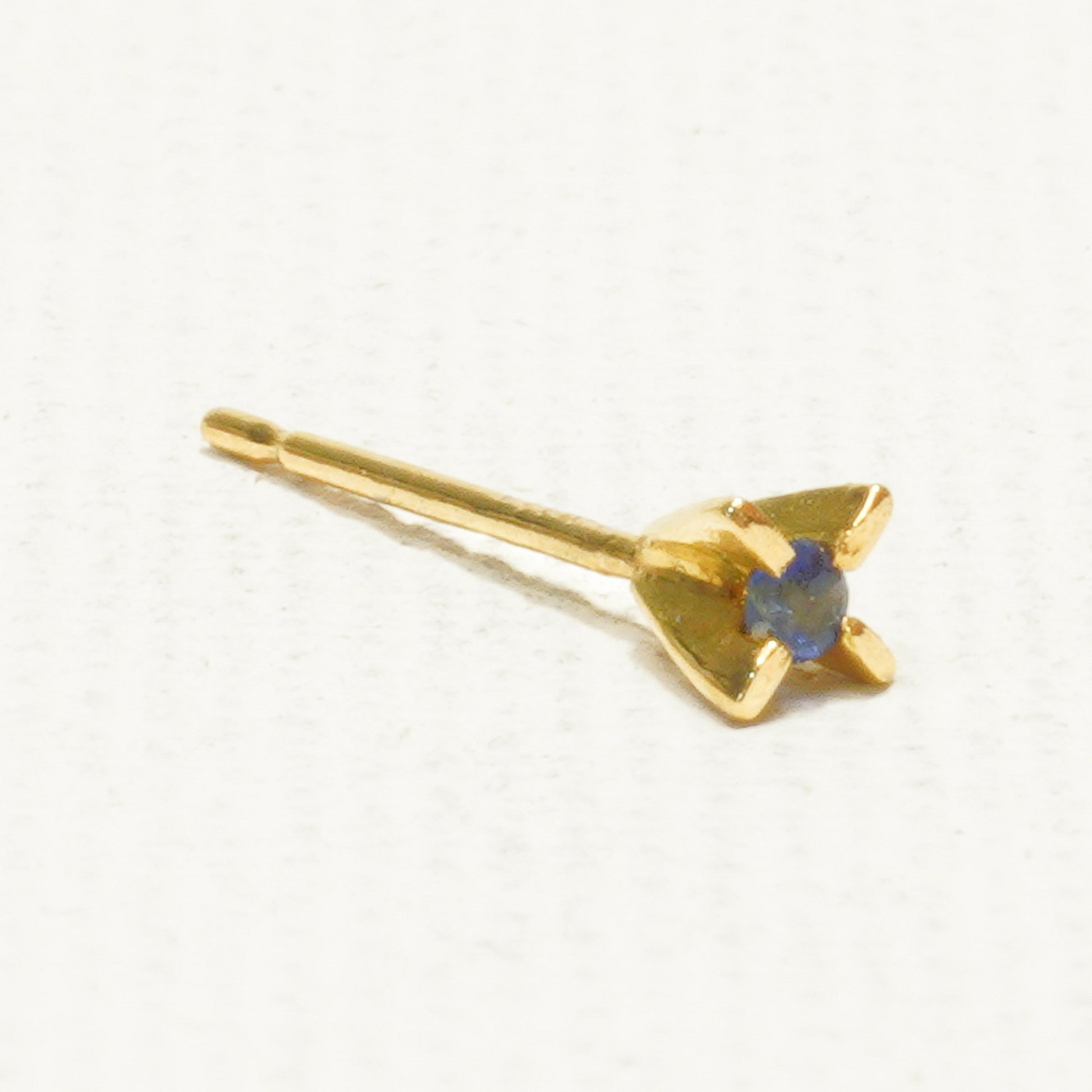 k18ゴールドのミニ立て爪サファイヤピアス。小さいながらも耳もとできらりと輝き、さりげない存在感を演出。シンプルで年齢を問わず身に着けていただけるので、ギフト・プレゼントにもぴったりです。