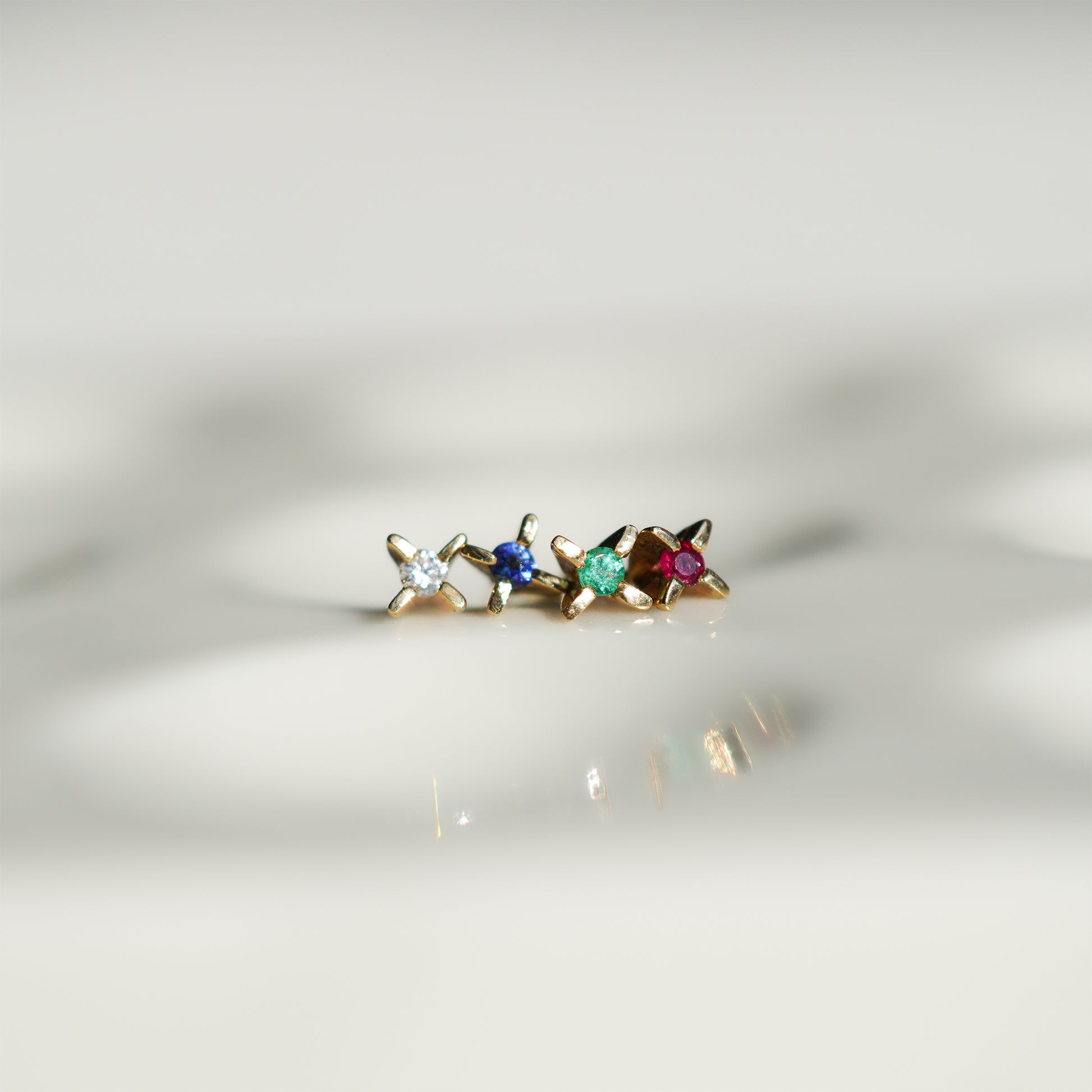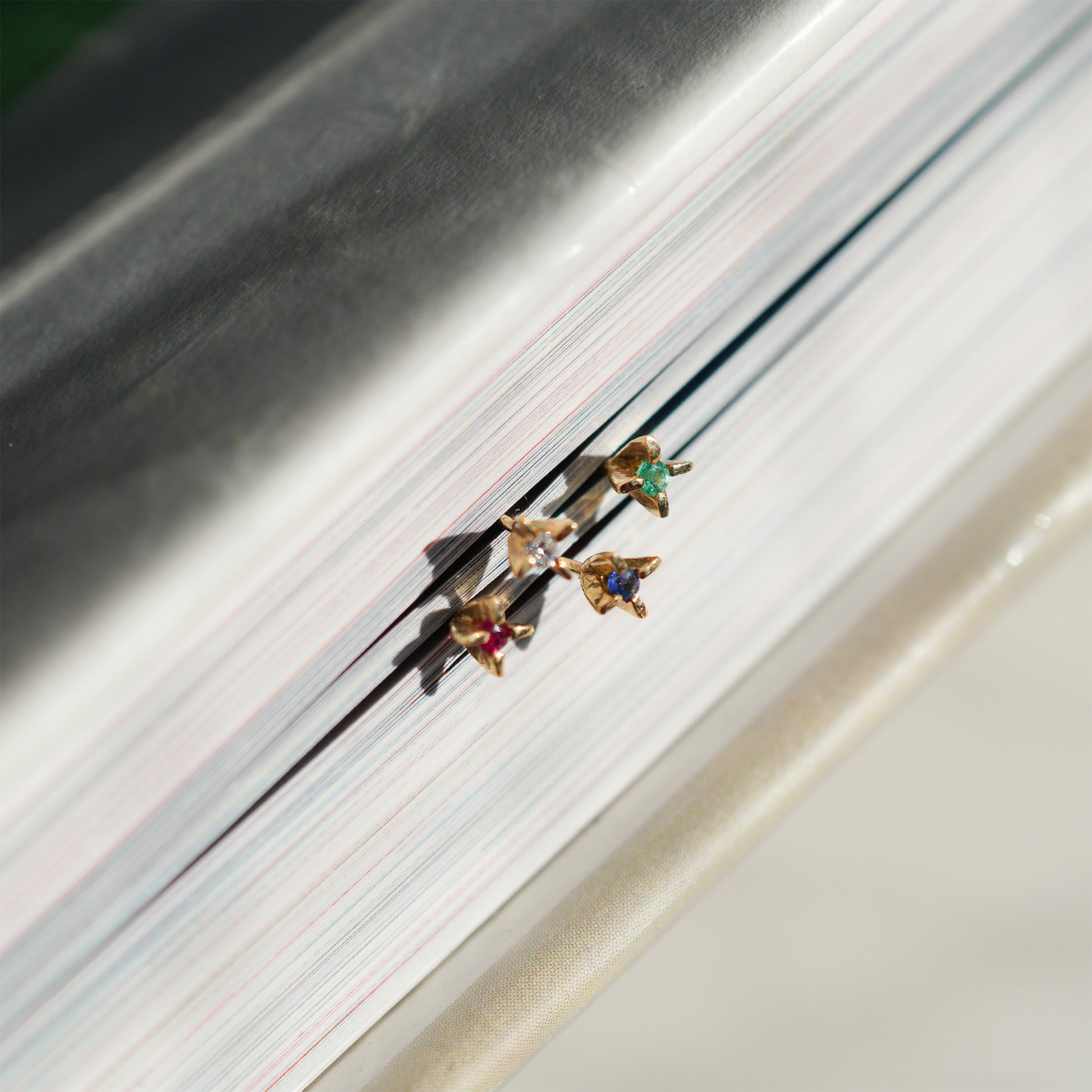 | マテリアル | トップモチーフ : サファイヤ k18 ポスト・キャッチ : k18 |