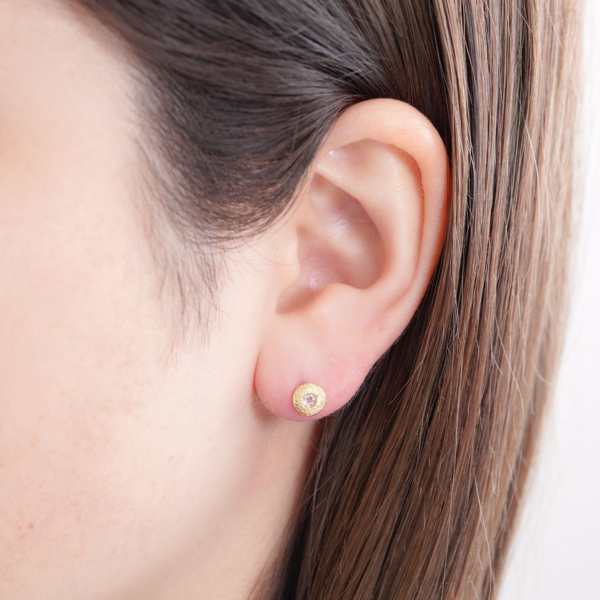 アンティークな風合いが感じられるフランス菓子のティグレをモチーフにしたピアス。ティグレの真ん中ガナッシュ部分には、2.5mmのローズカットダイヤがあしらわています。