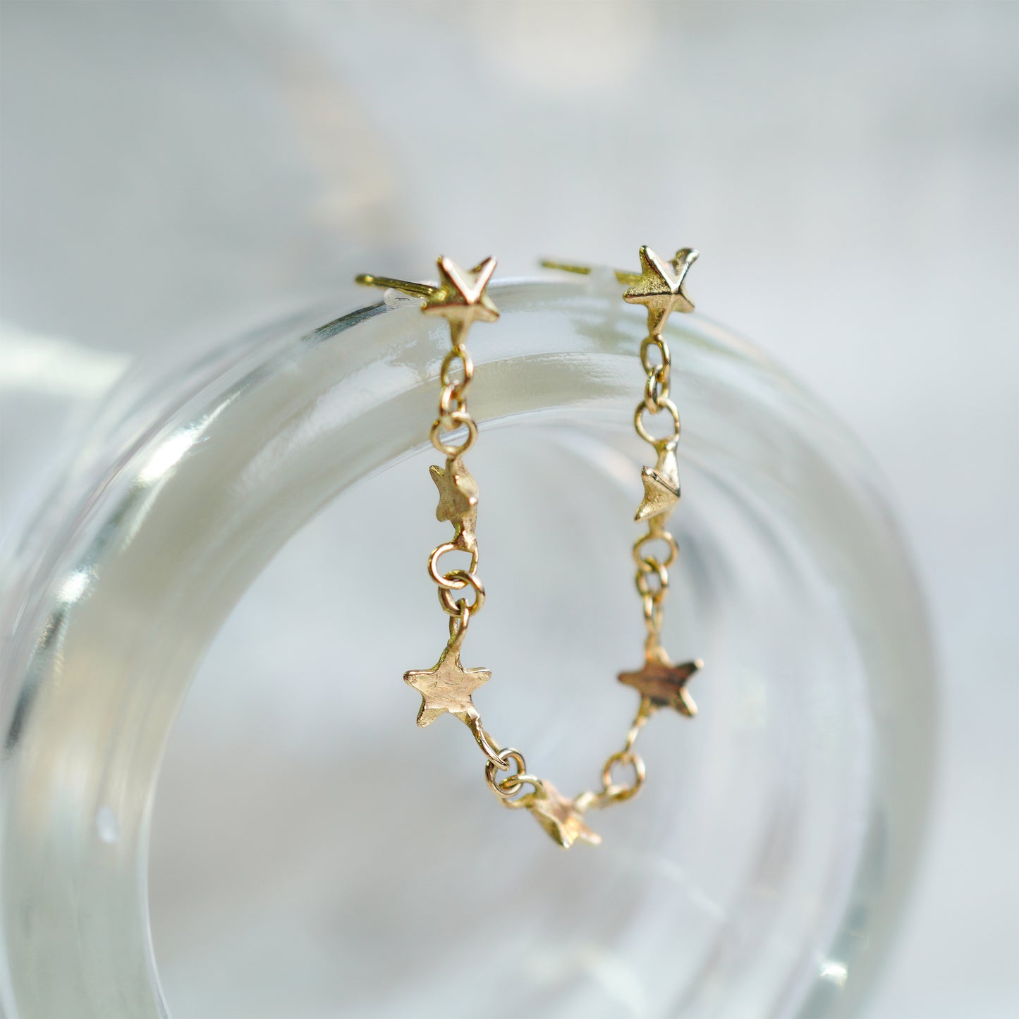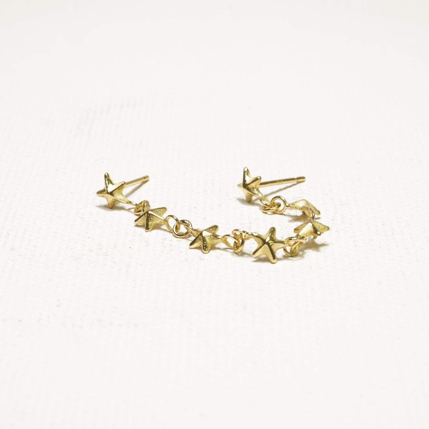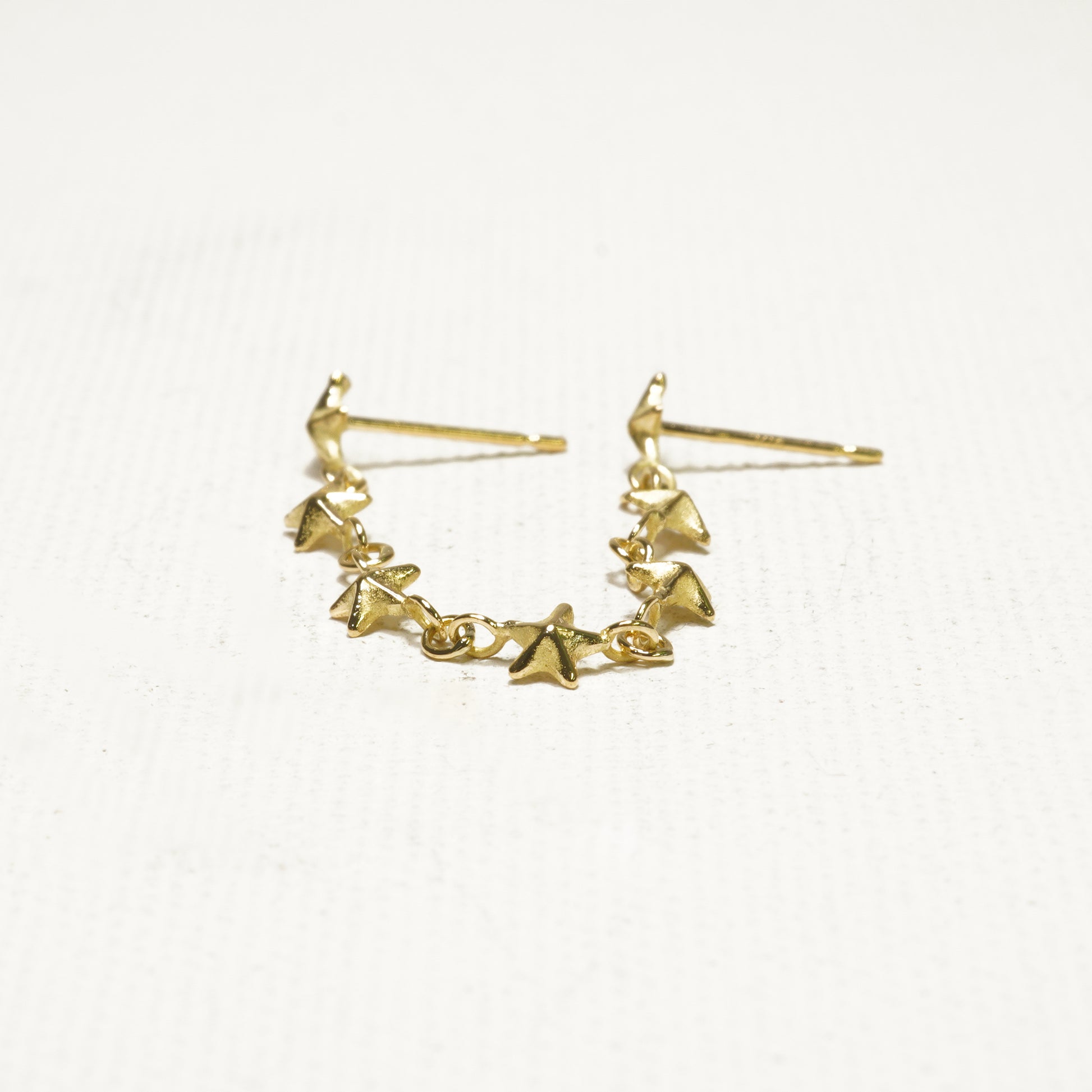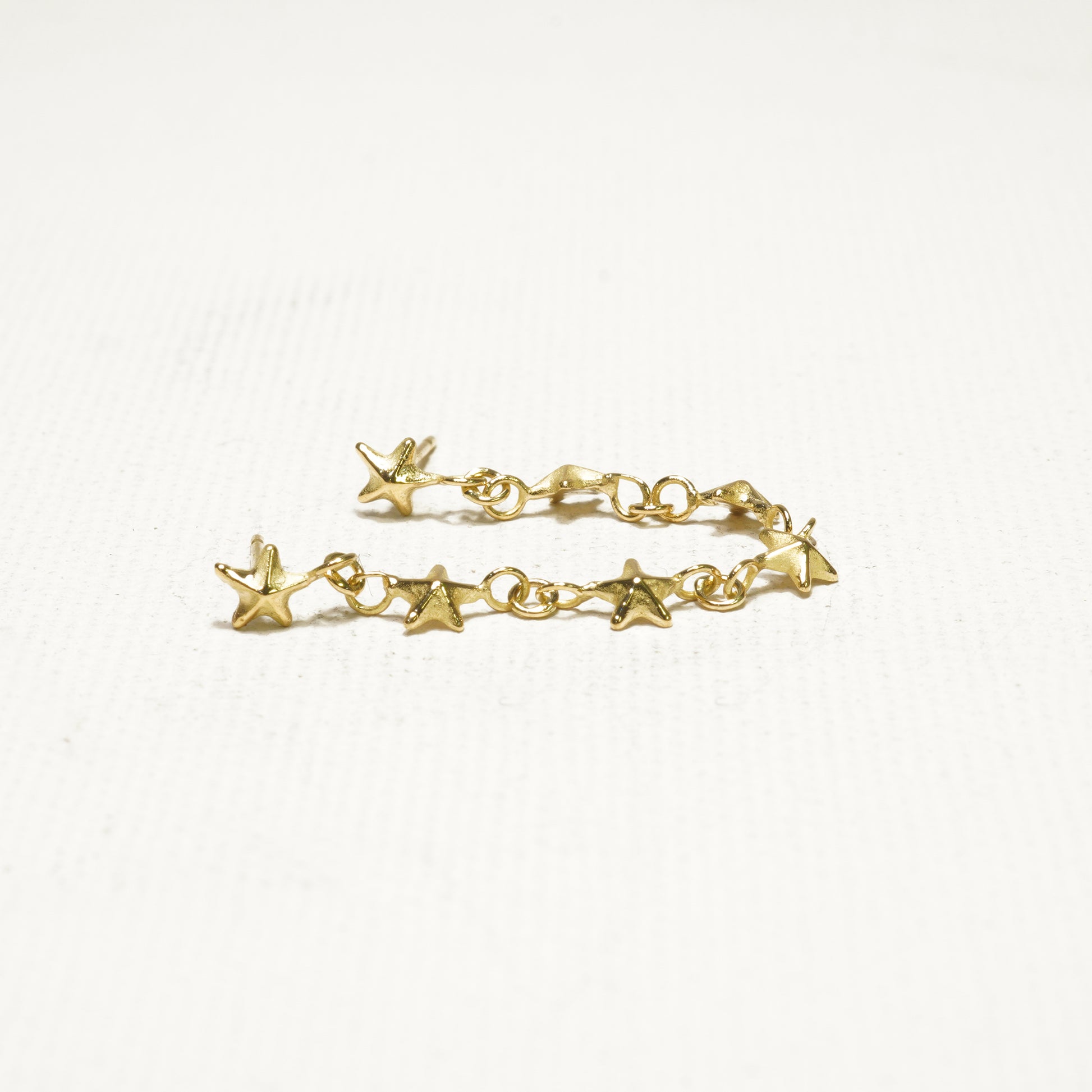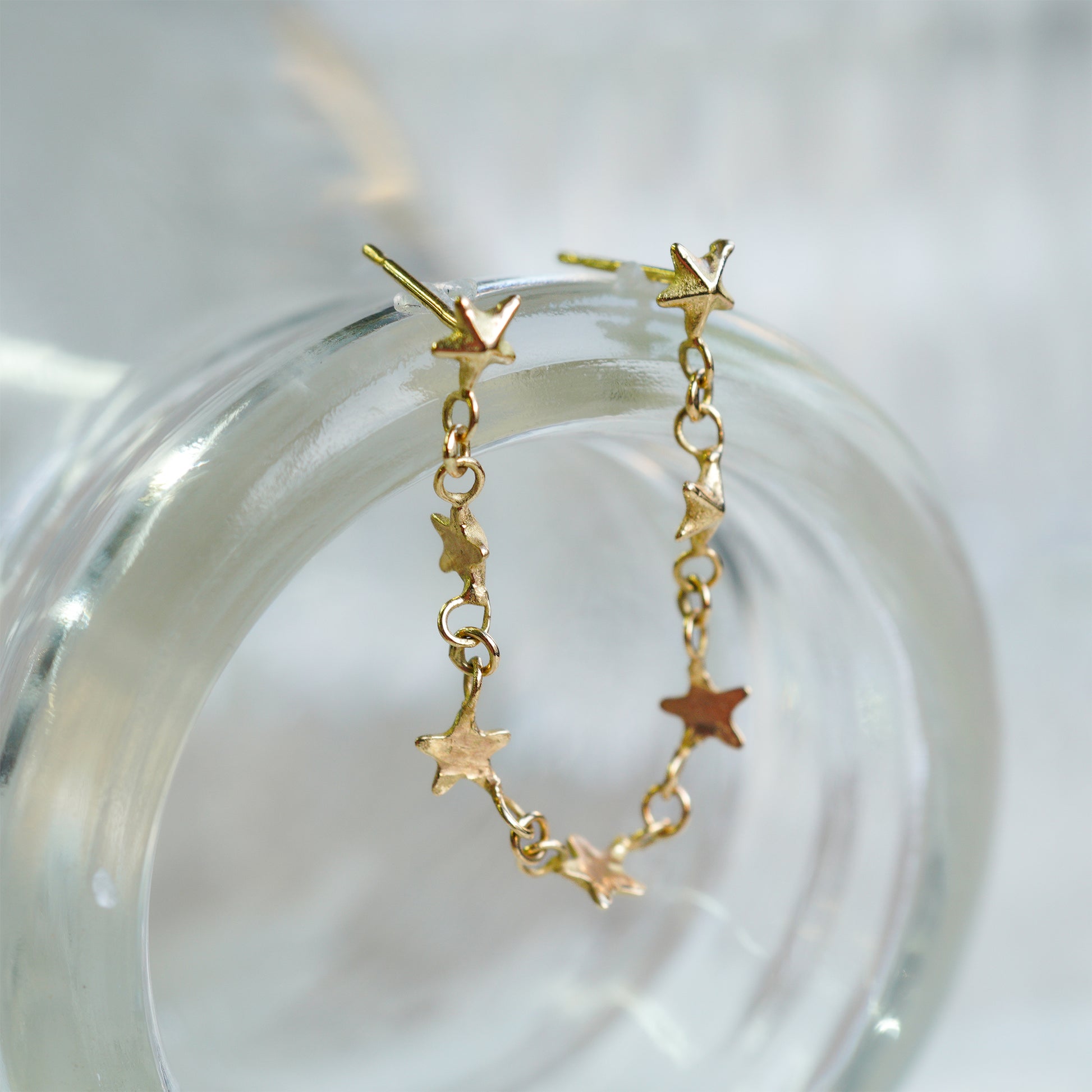 立体感のある星モチーフを七つ繋いだチェーンピアス。