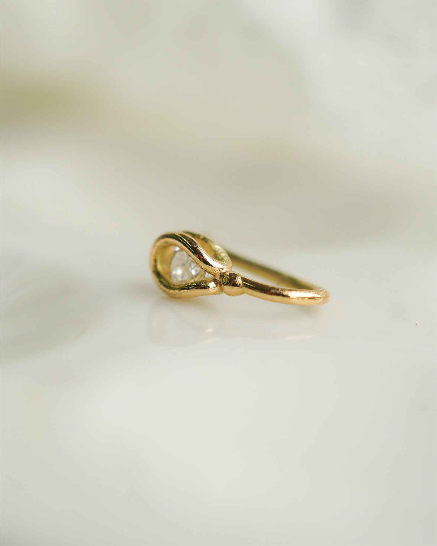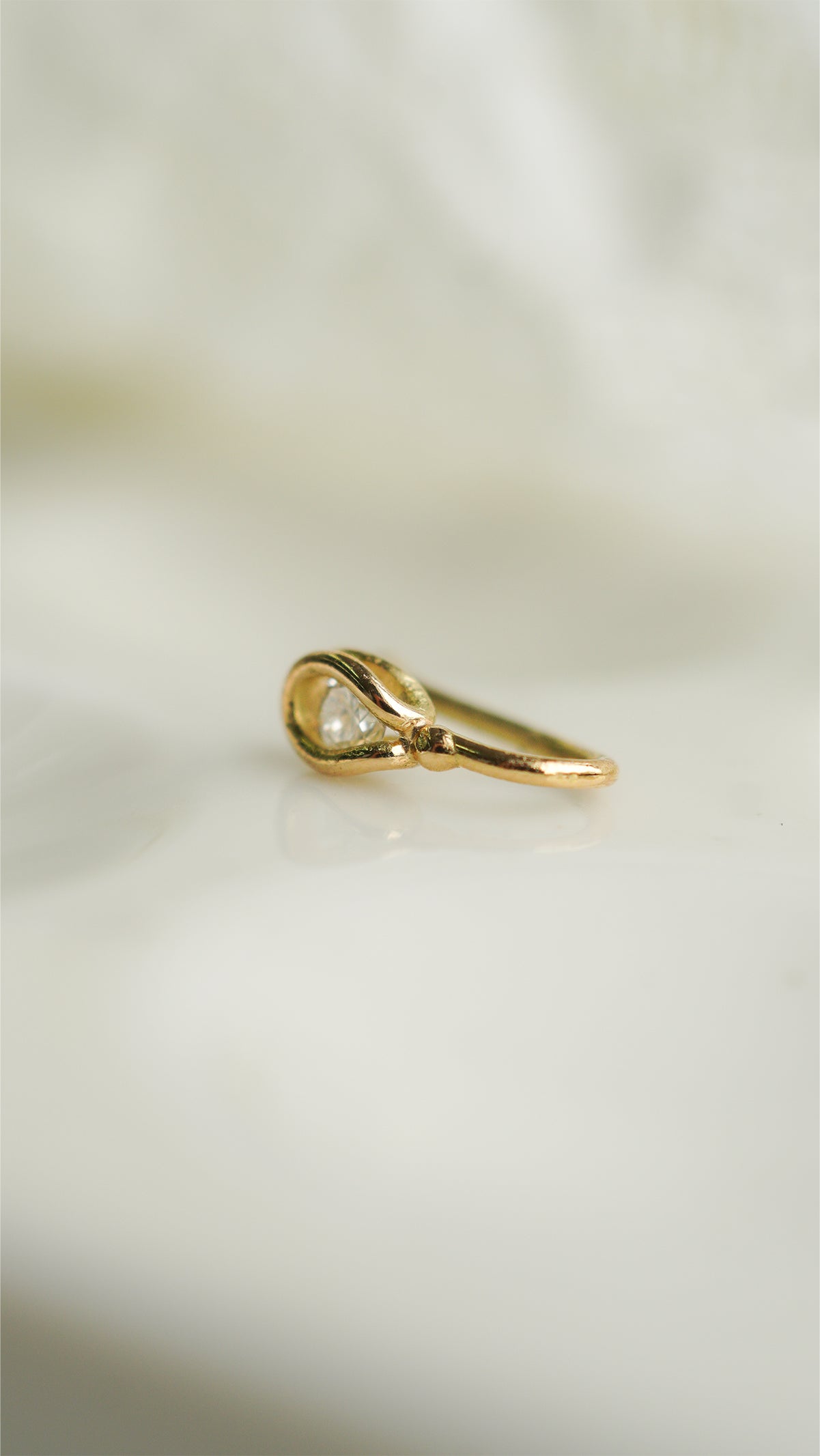 ダイヤモンドを包み込んだかのような蕾(つぼみ)を思わせるフォルムは、自然界の形状を抽象的に取り入れた日本美術の特徴を彷彿とさせる。