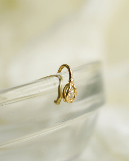 ダイヤモンドには様々な角度がら光が入る仕組みになっており動くたびにキラキラと輝きます。蕾が垂れ下がったようなフォルムが可愛らしいピアス。