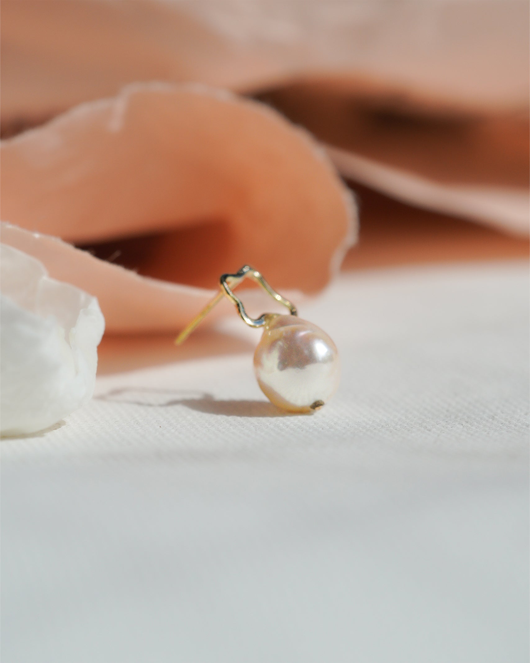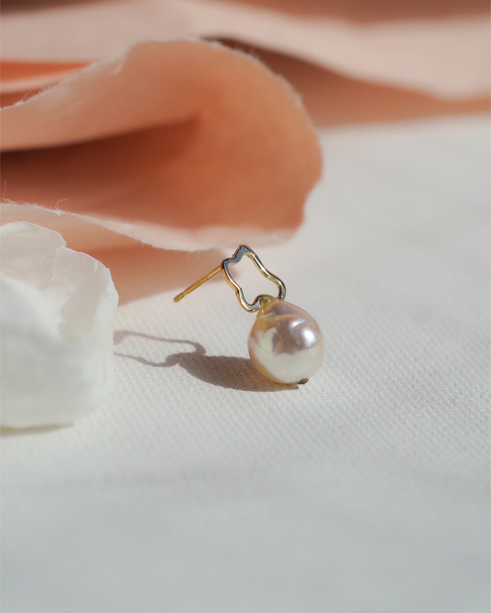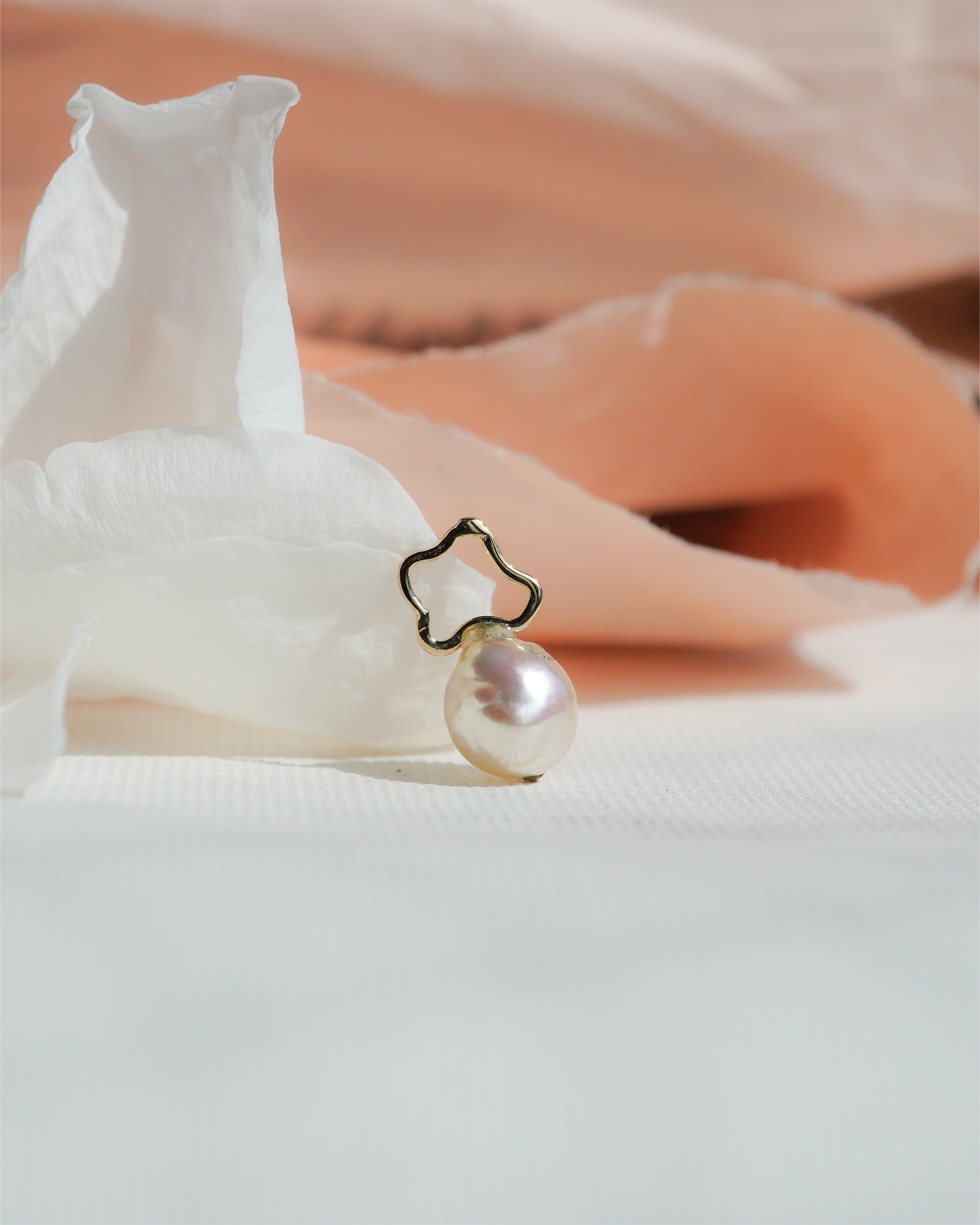 18Kの地金部分の歪な雲のシルエットにアコヤパールがつくことで品よくコーディネートをお楽しみいただけます。
