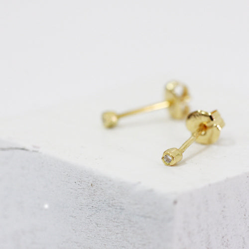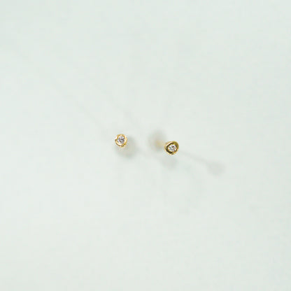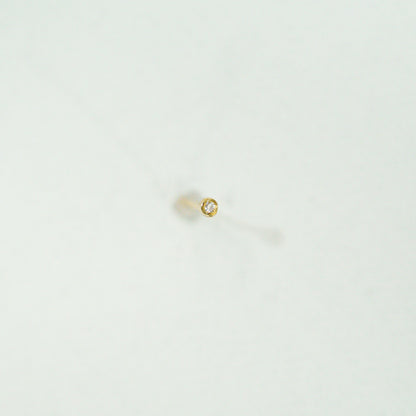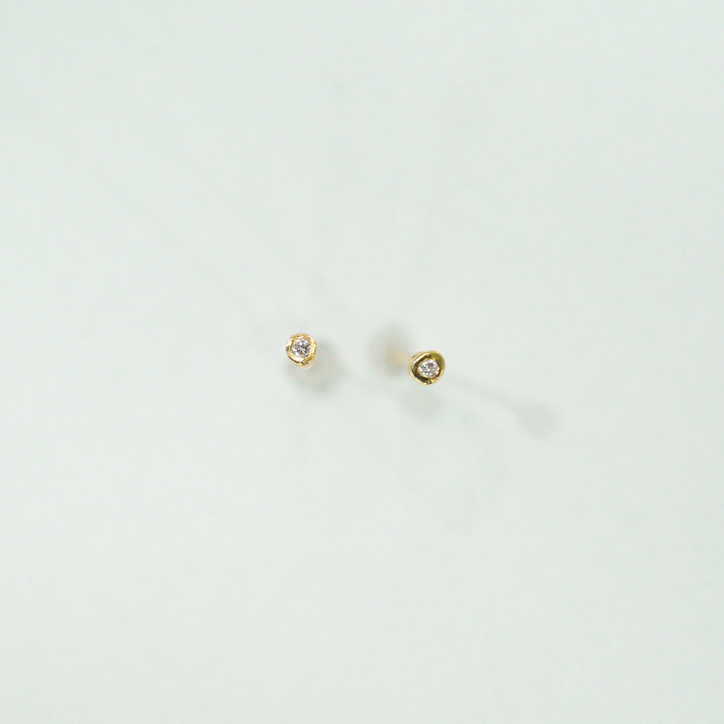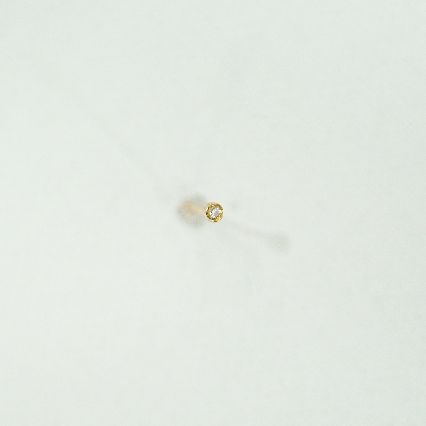 極小さなダイヤが一粒あしらわれたk18ゴールドのピアス。