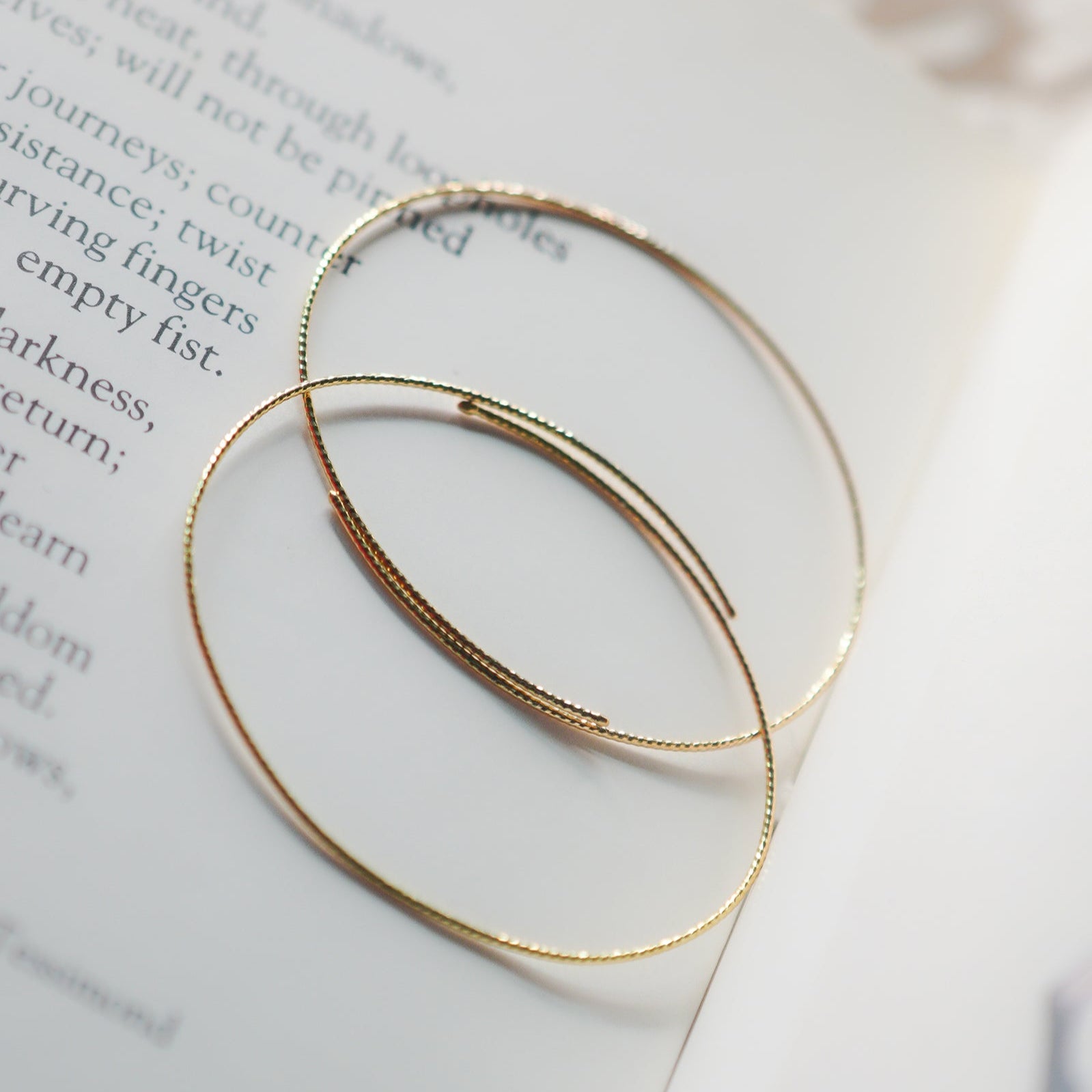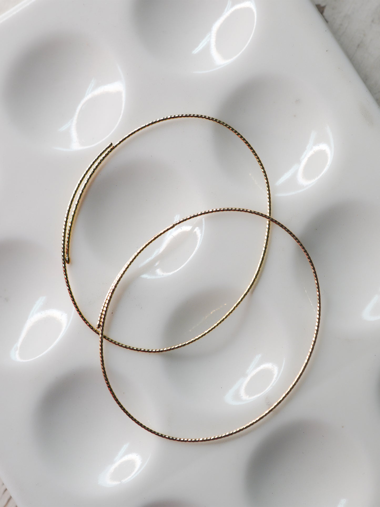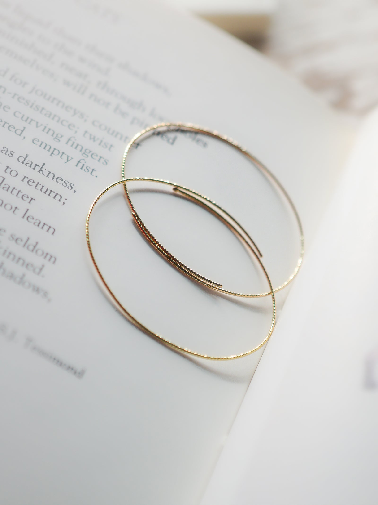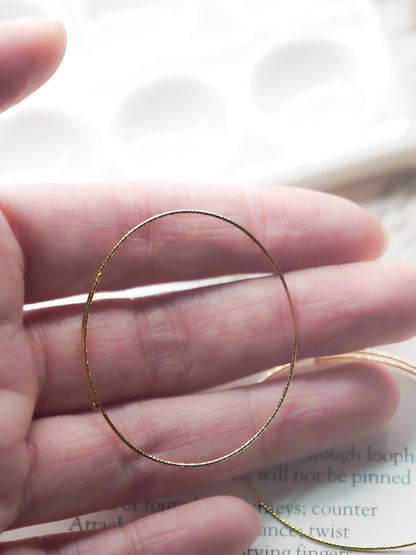 カットされたk18ゴールドワイヤーのオーバルフープピアス。