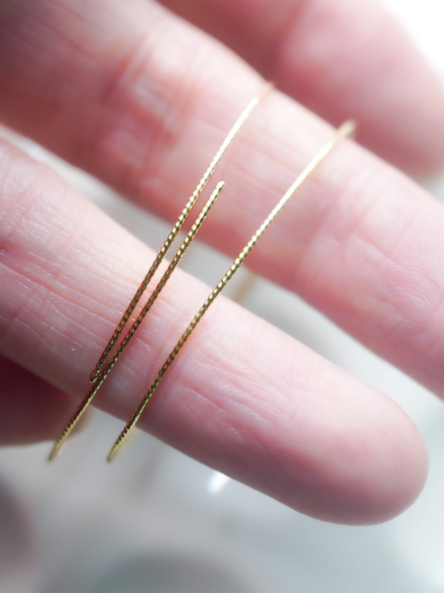 比較するとこちらのhp-8-8-193-Aの方が落ち着いた感じで、hp-364 カットワイヤーピアスの方がキラキラと輝く印象です。