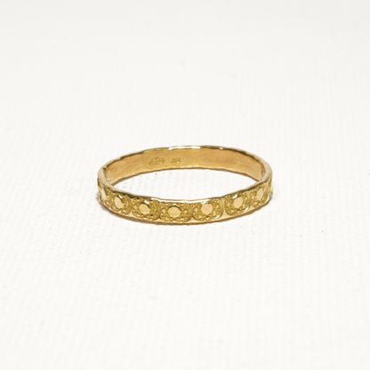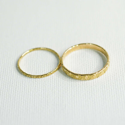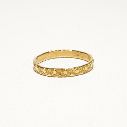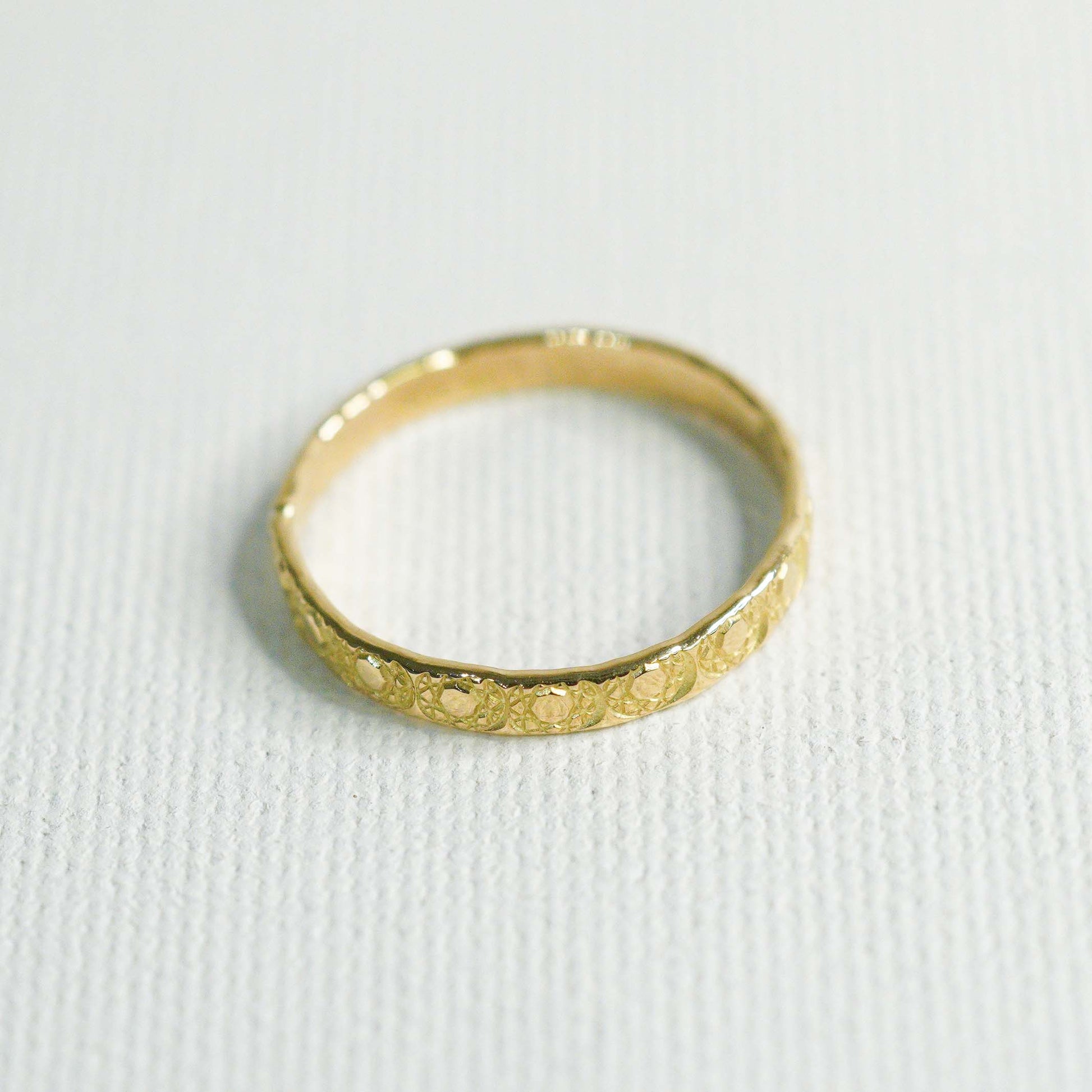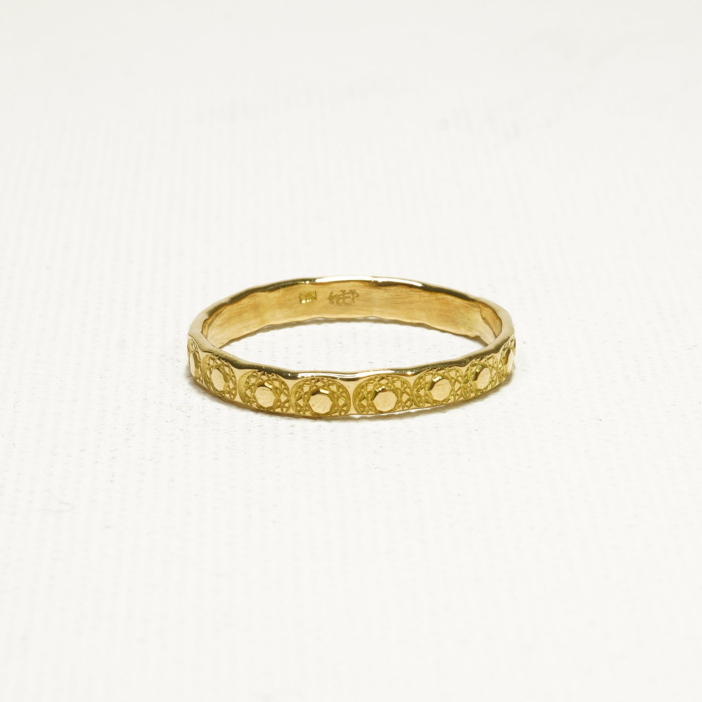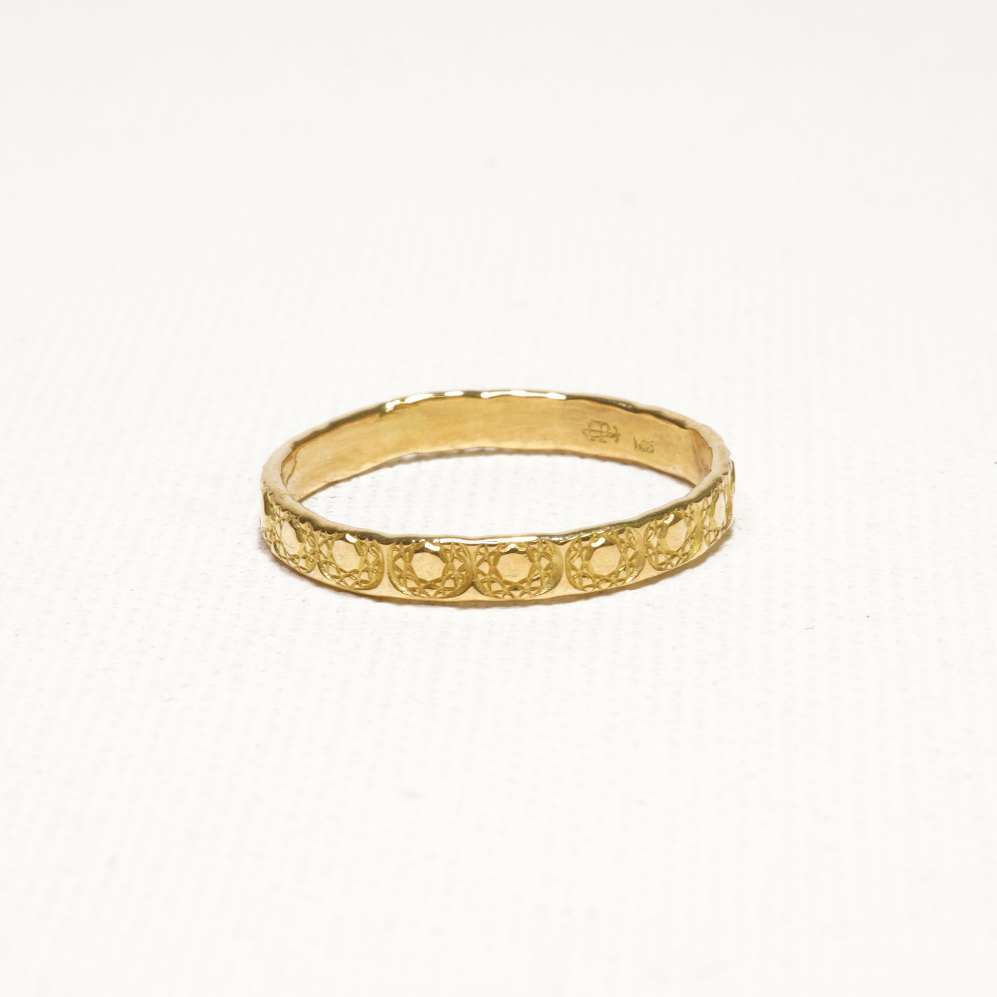 シンプルな平打ちのリングにモチーフを刻印。