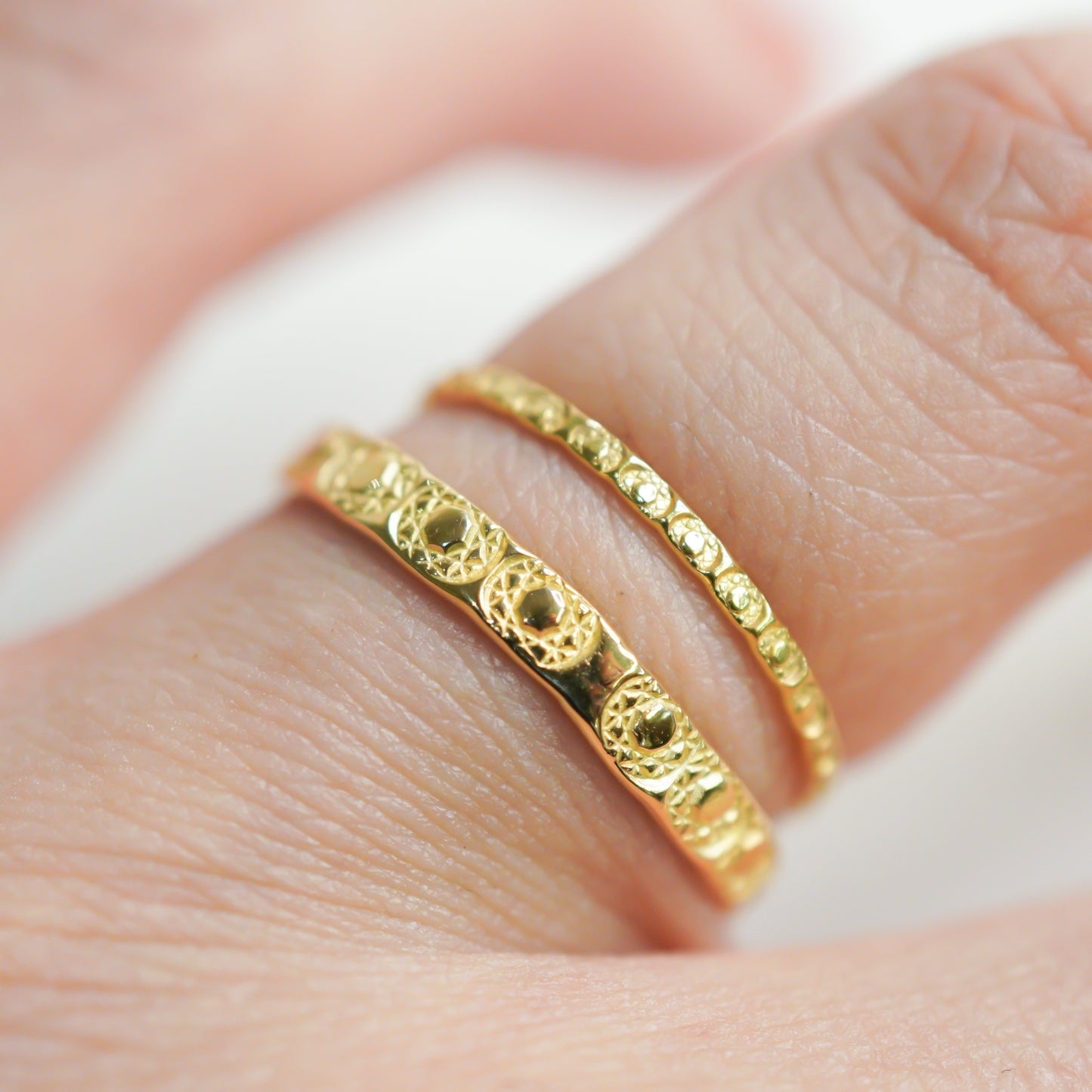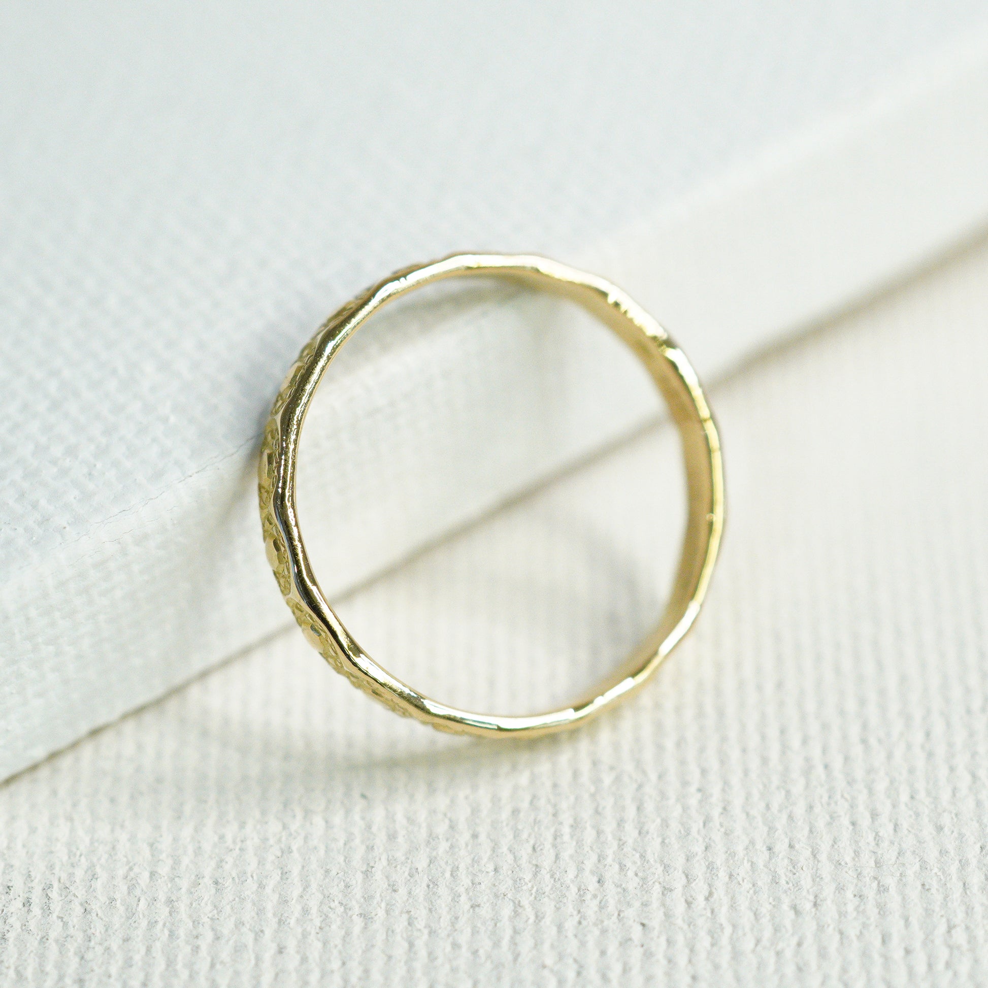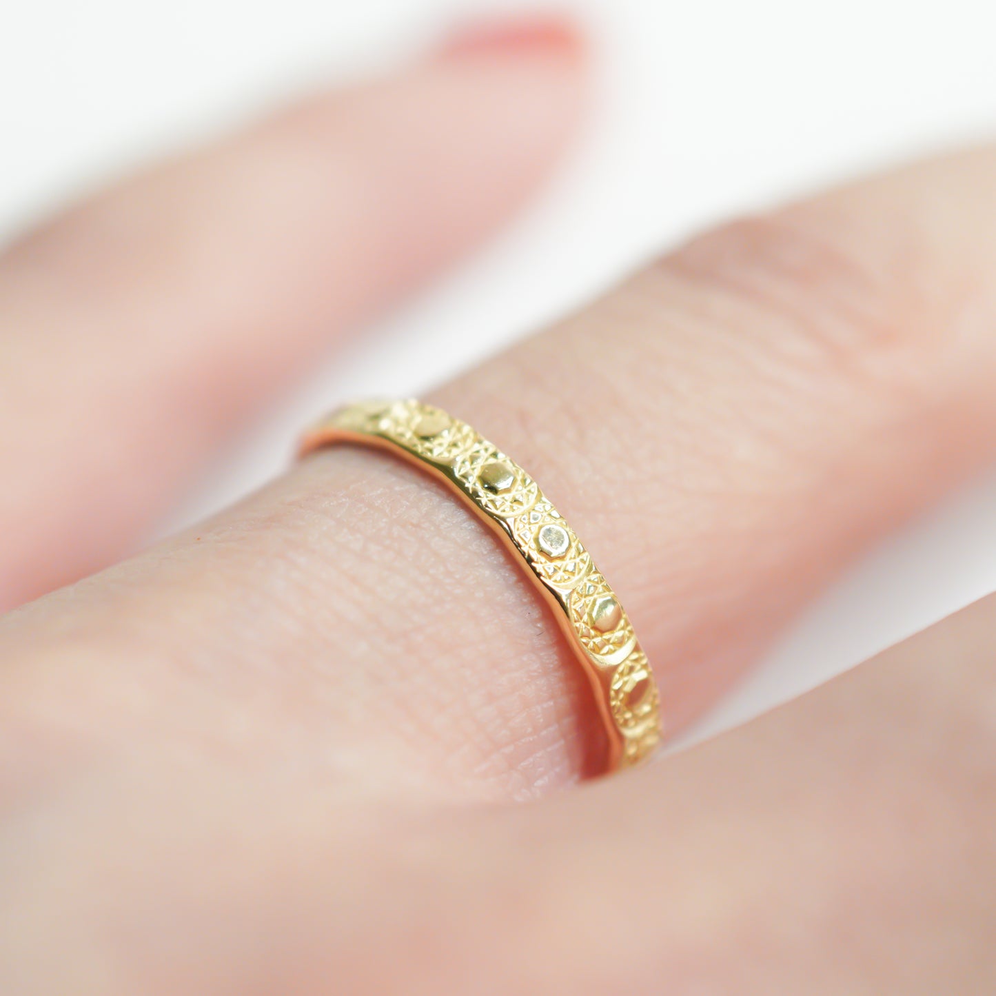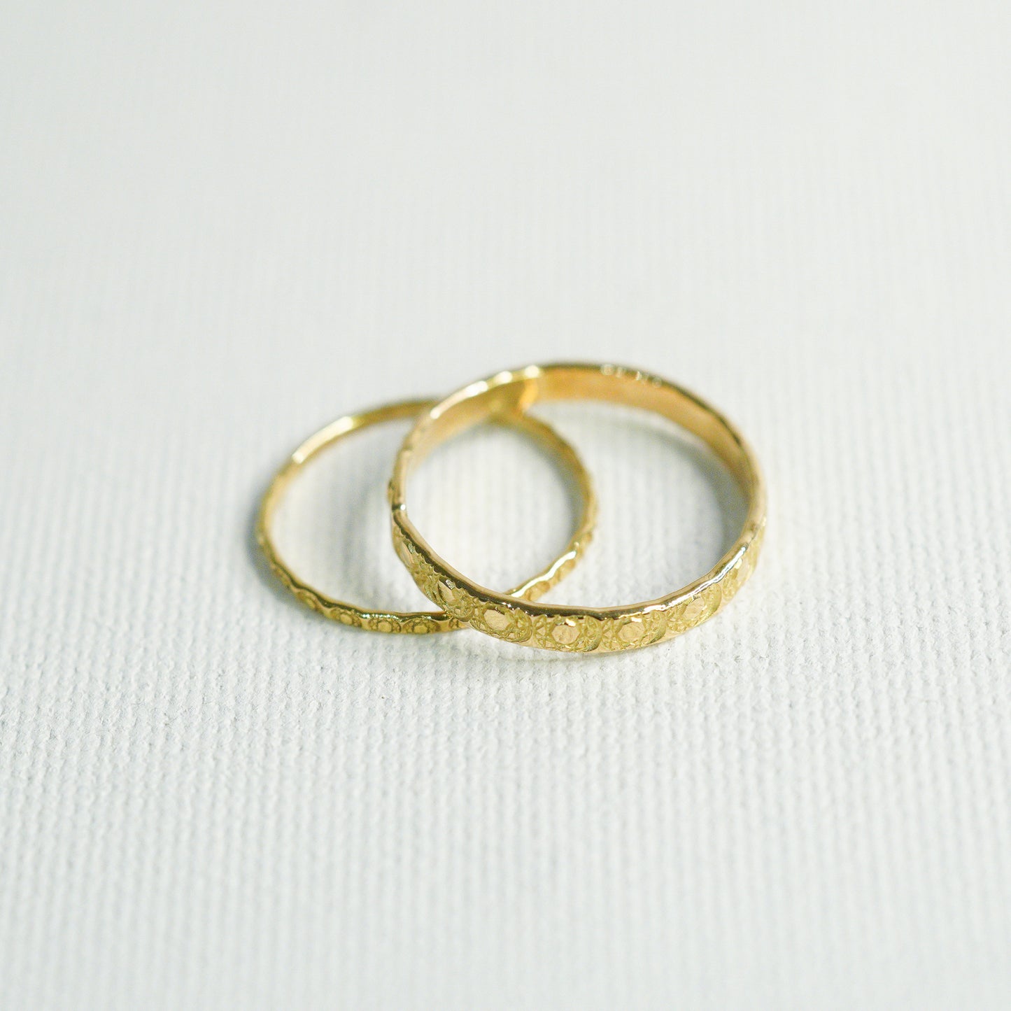 シンプルな平打ちのリングにモチーフを刻印。