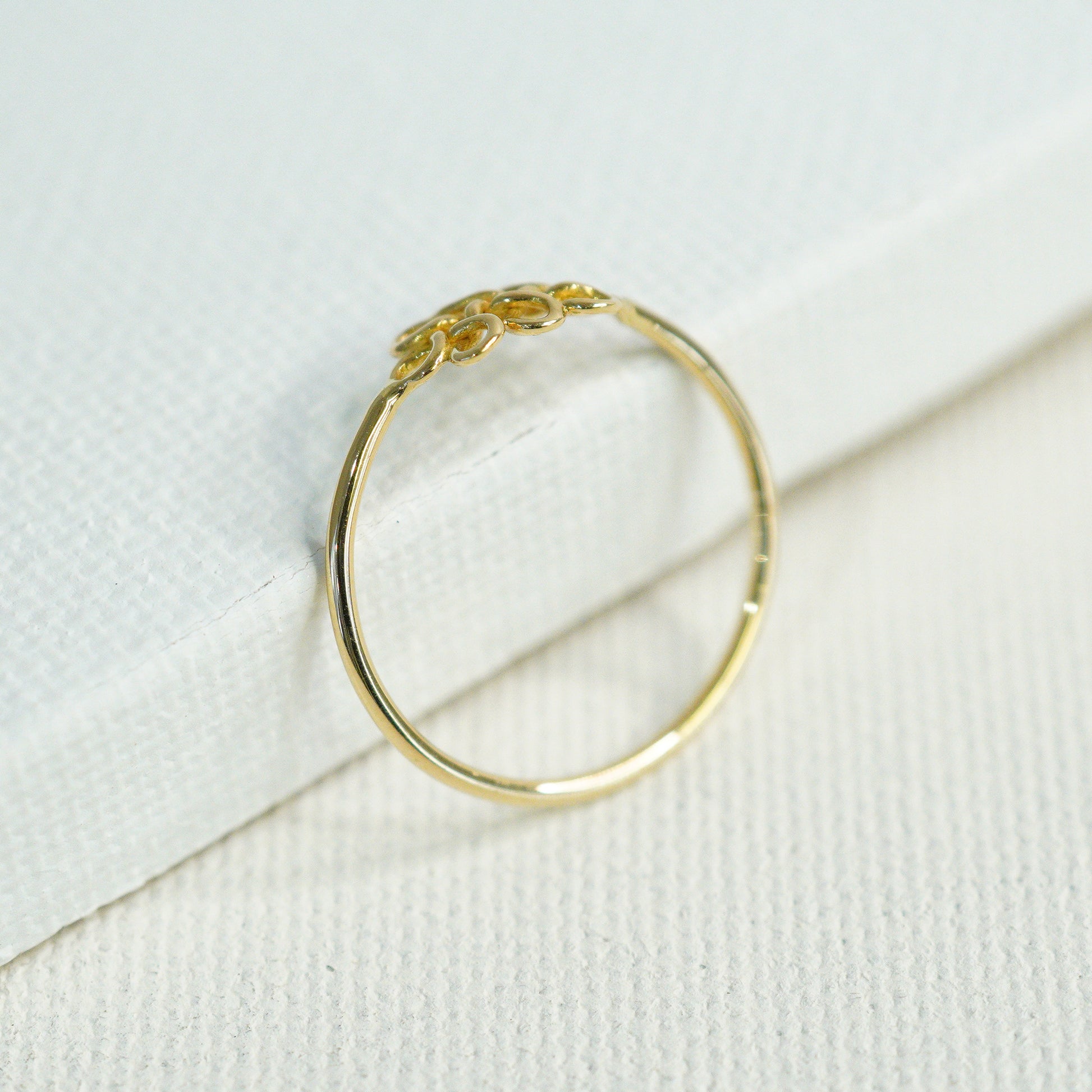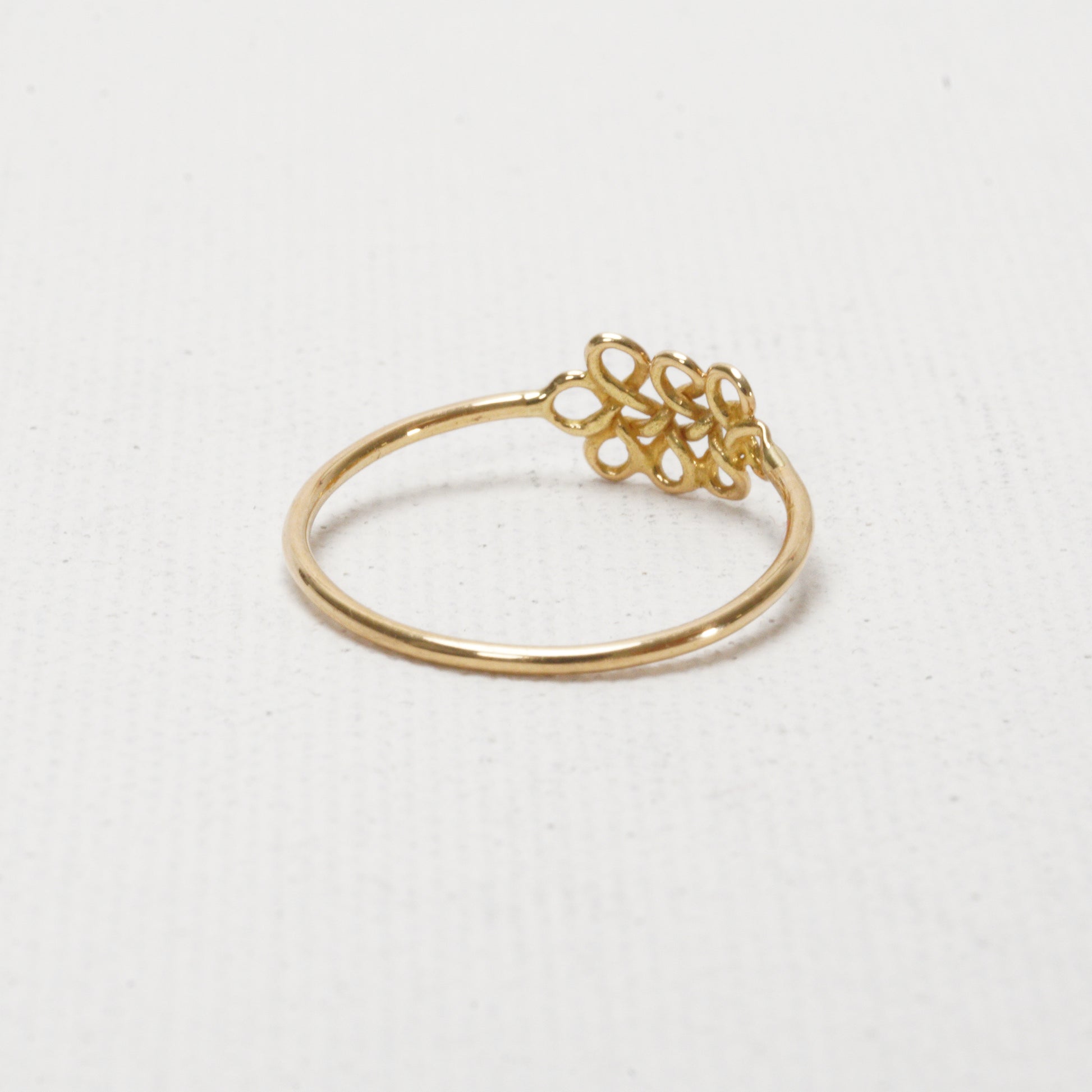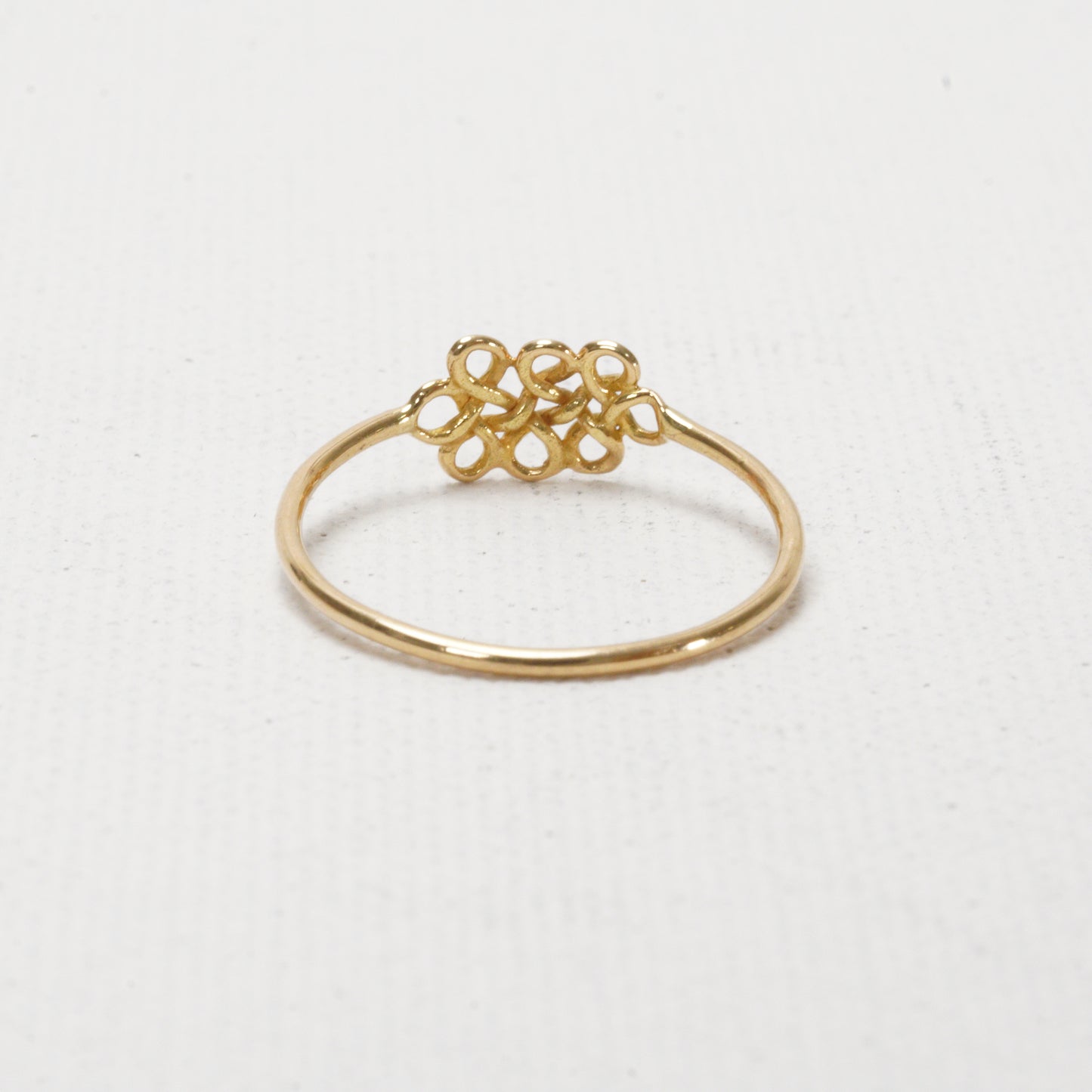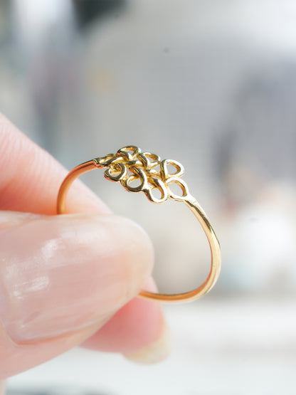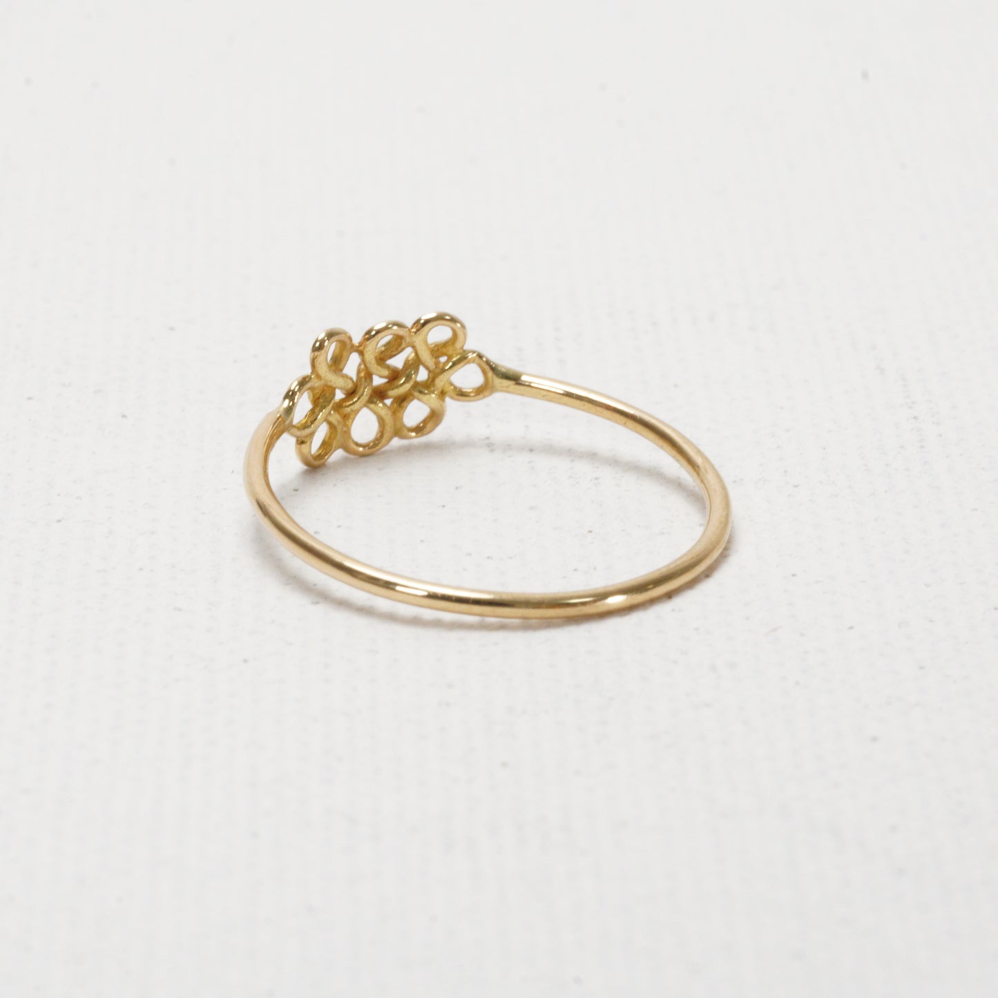 エンドレスノットをモチーフにした、ゴールドのリング。