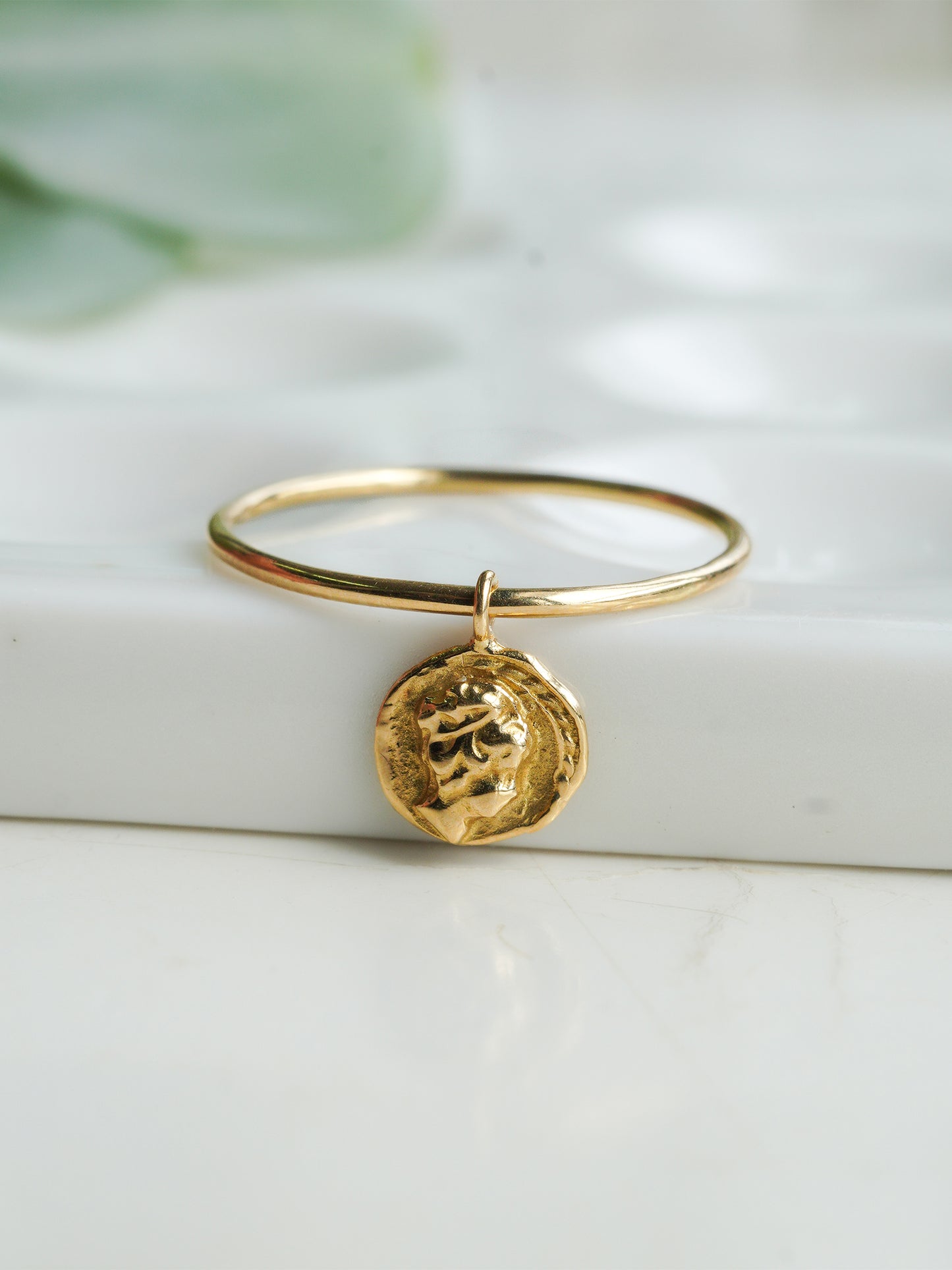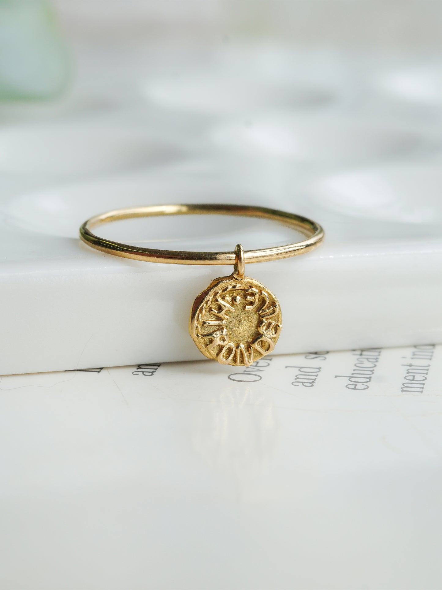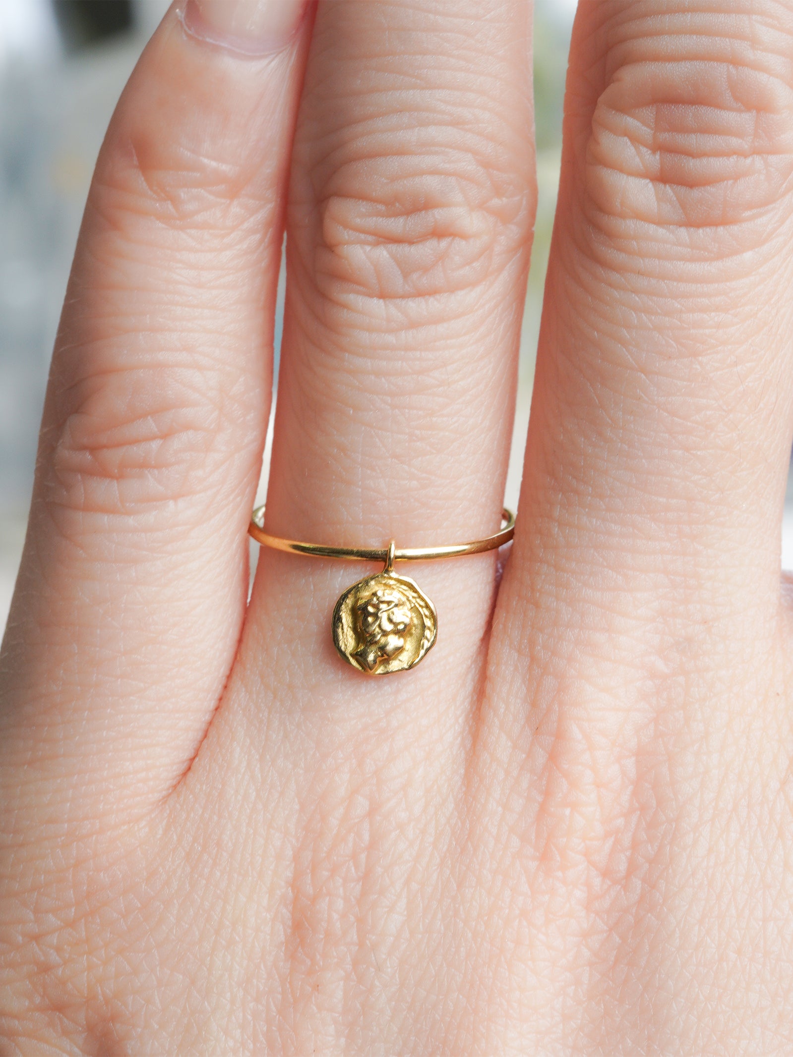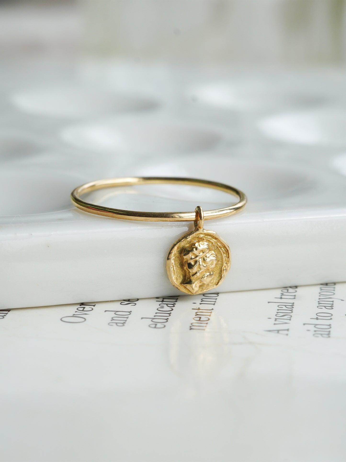 華奢な18kリングにコインをモチーフがぶら下がっているデザインです。