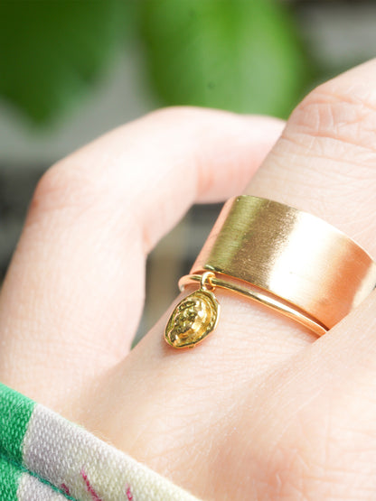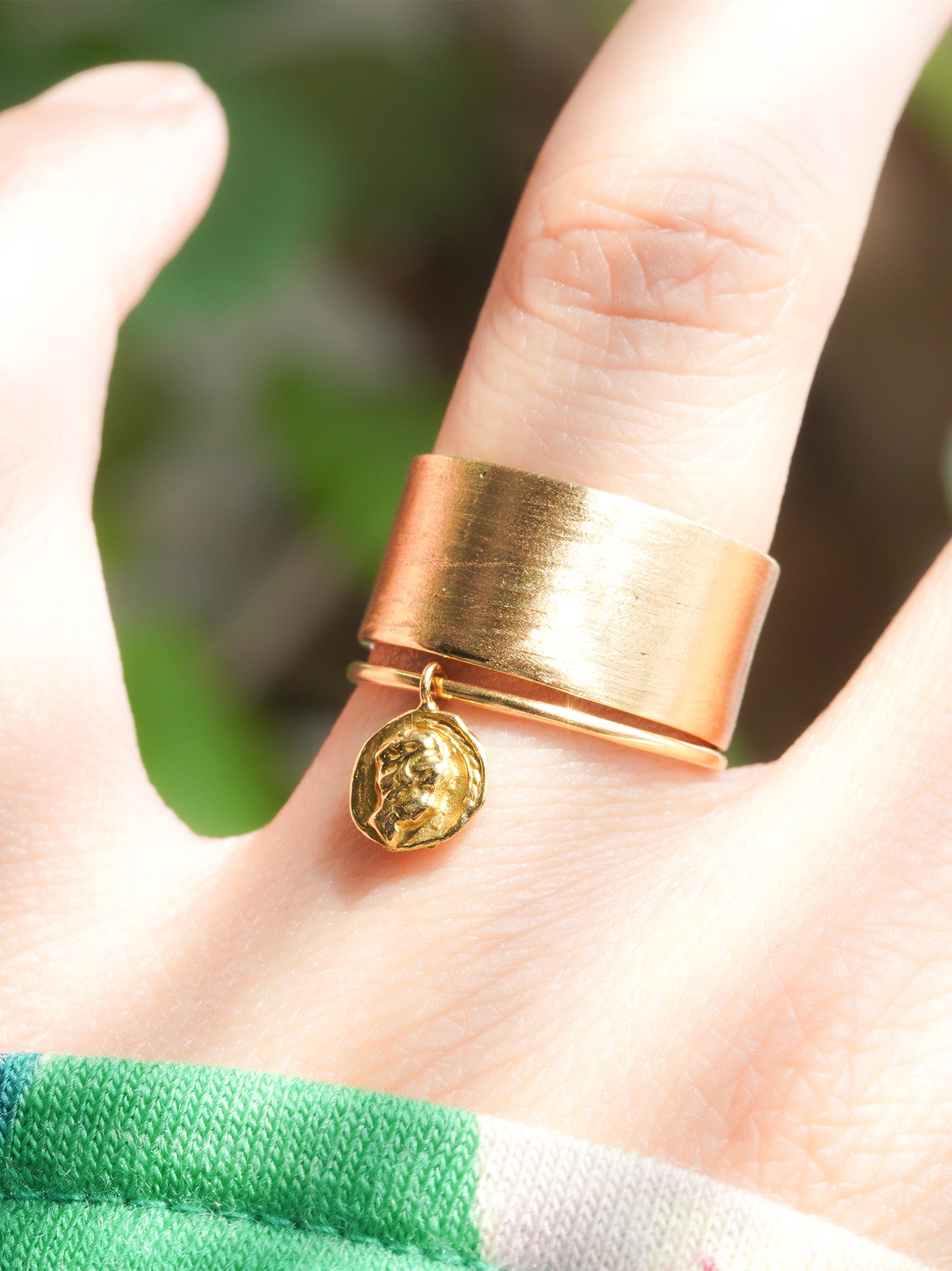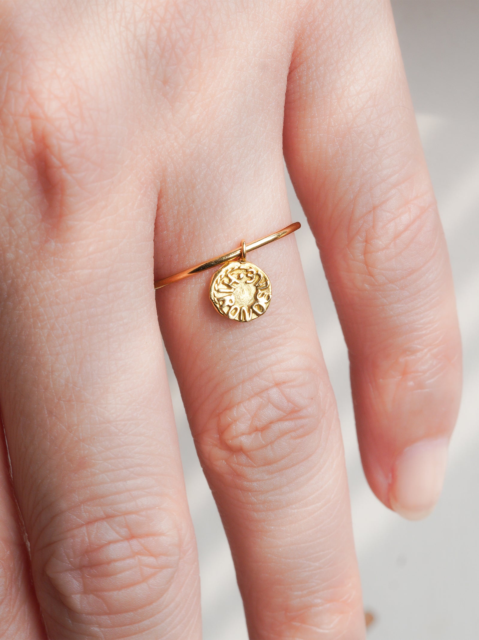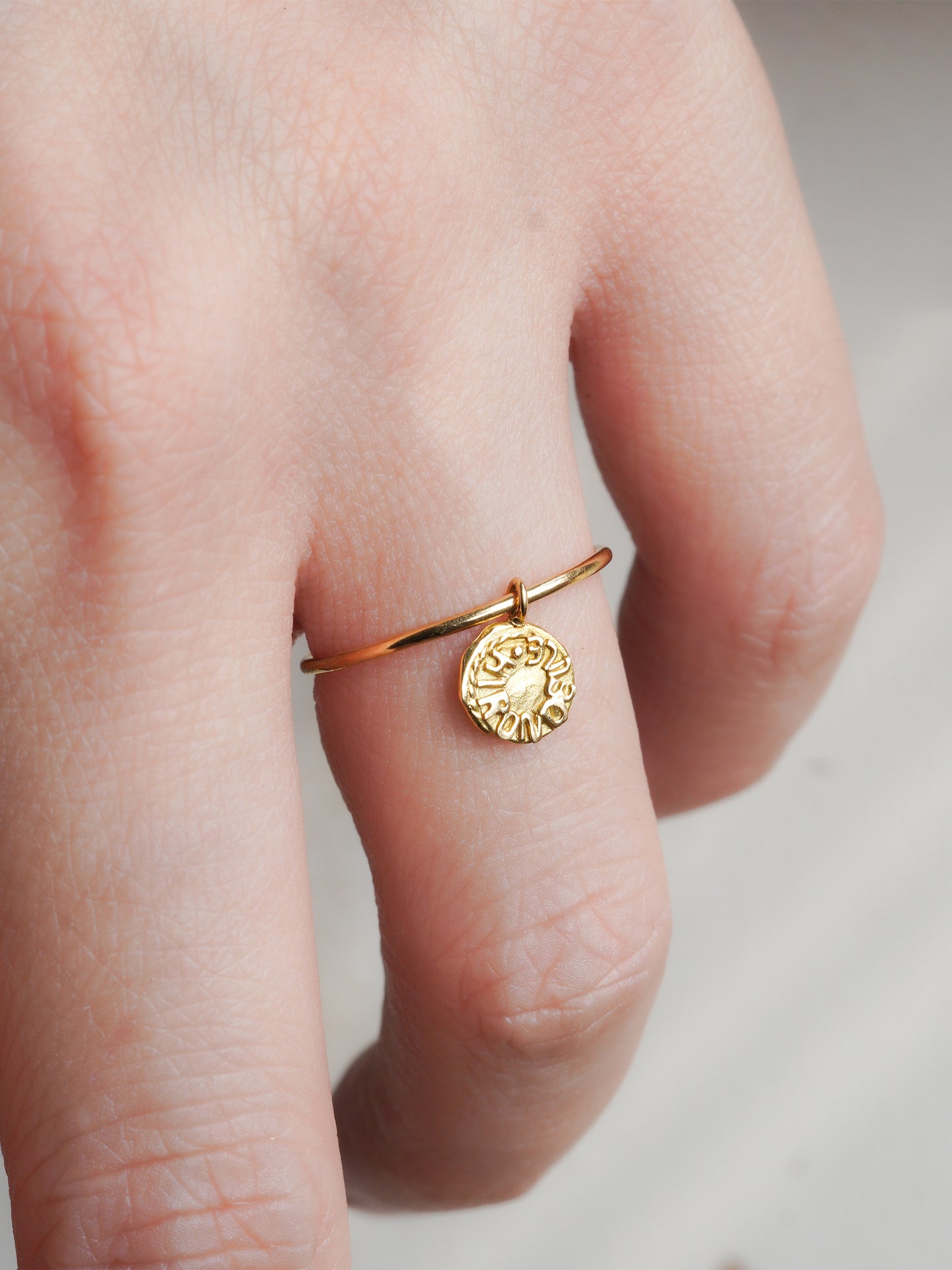 華奢な18kリングにコインをモチーフがぶら下がっているデザインです。
