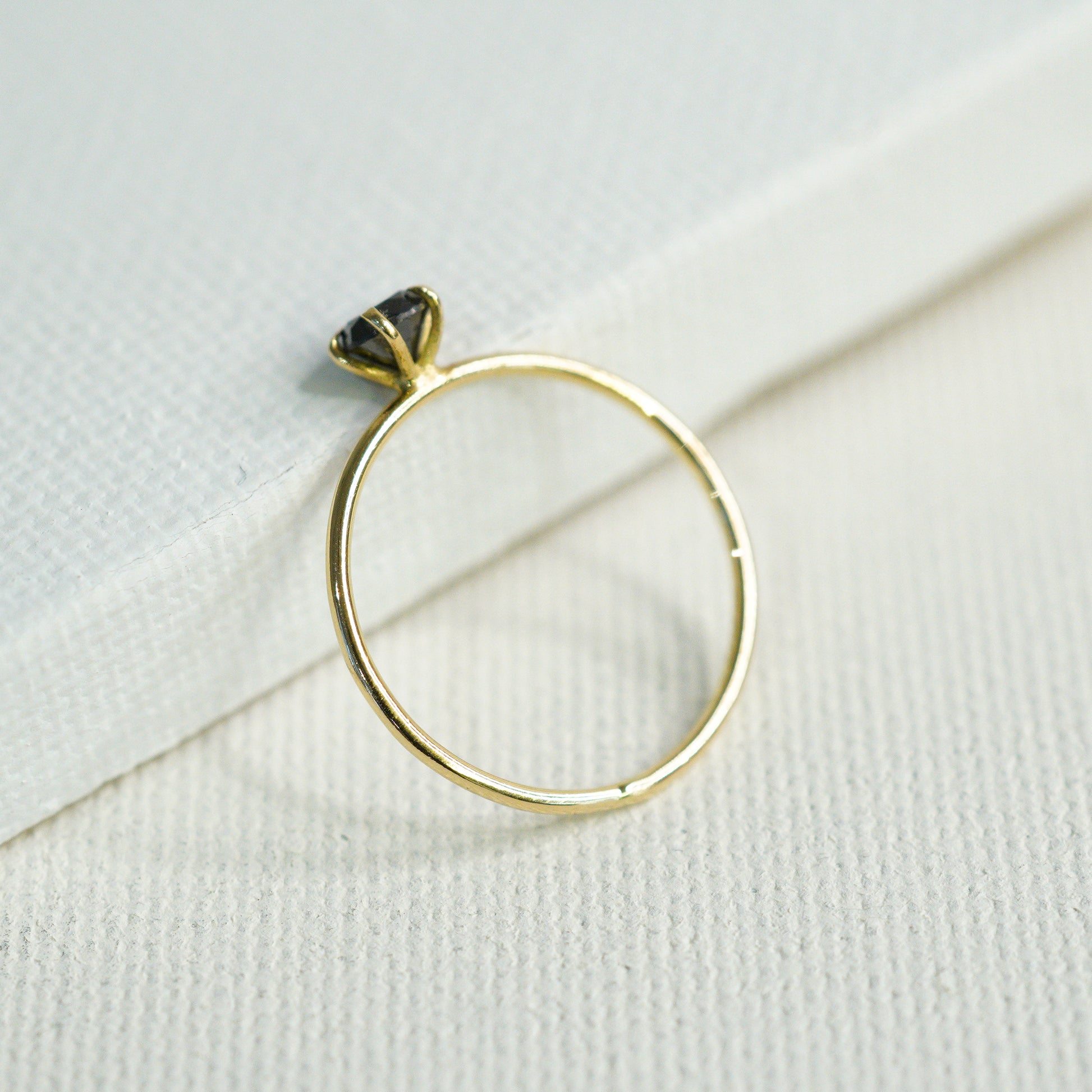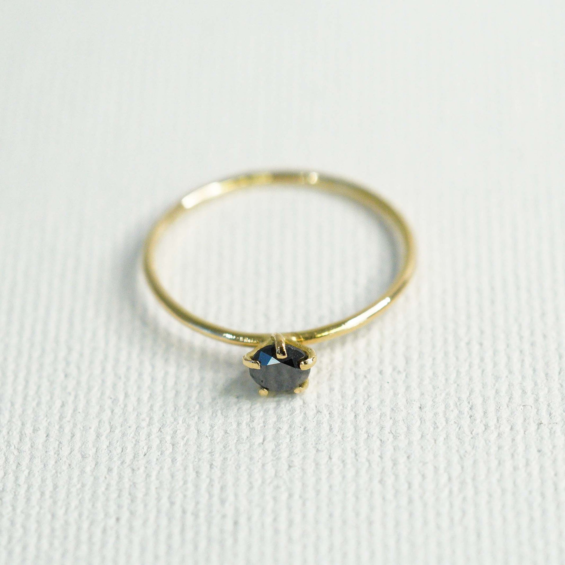 そんなダイヤモンドの魅力を無駄なく最大限に惹き立たせる5つ爪ブラックダイヤのk18ゴールドのリング。