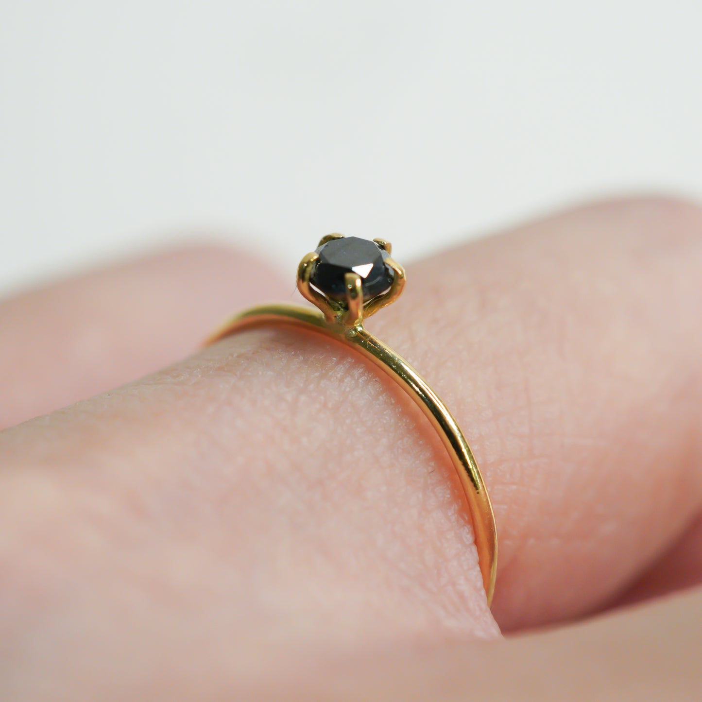 hr-20fw-561 5つ爪ブラックダイヤ リング / ゴールド