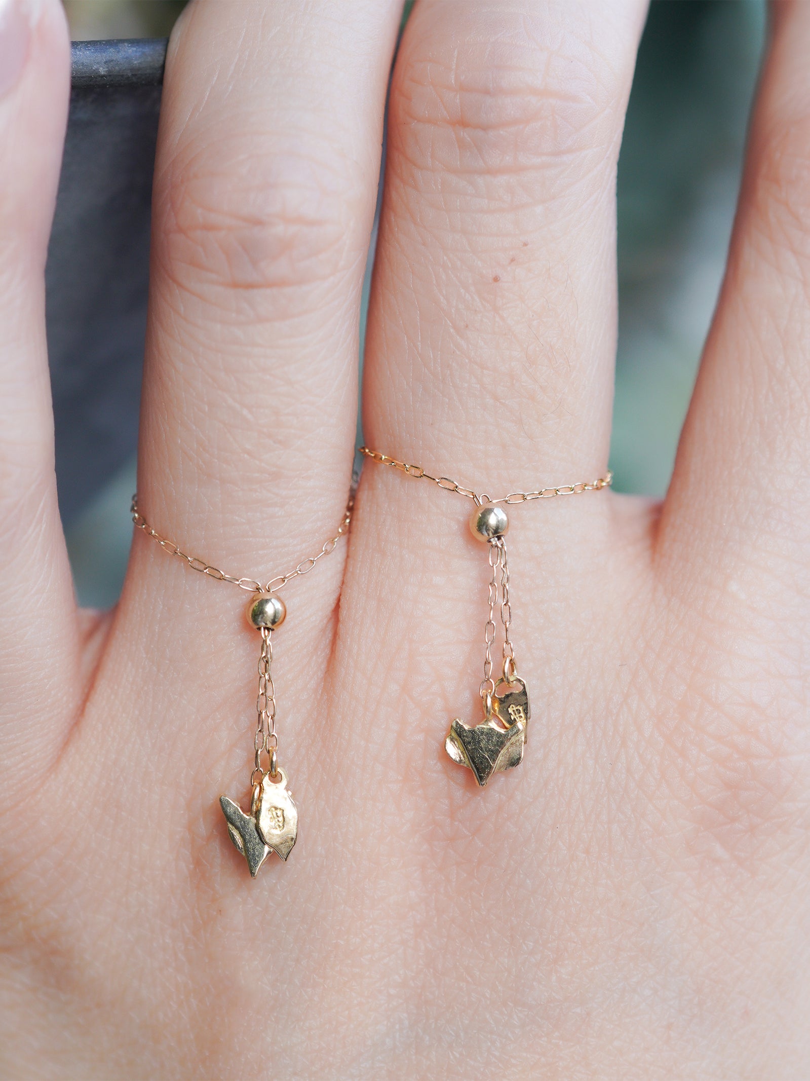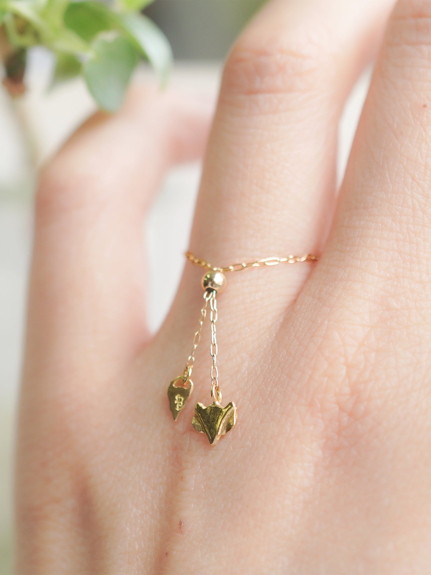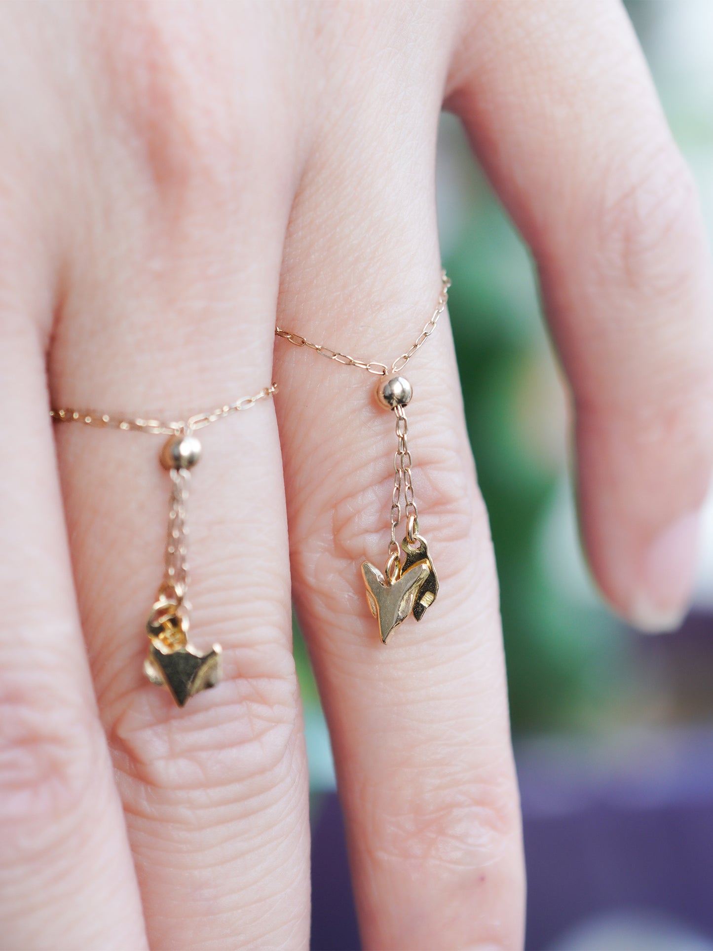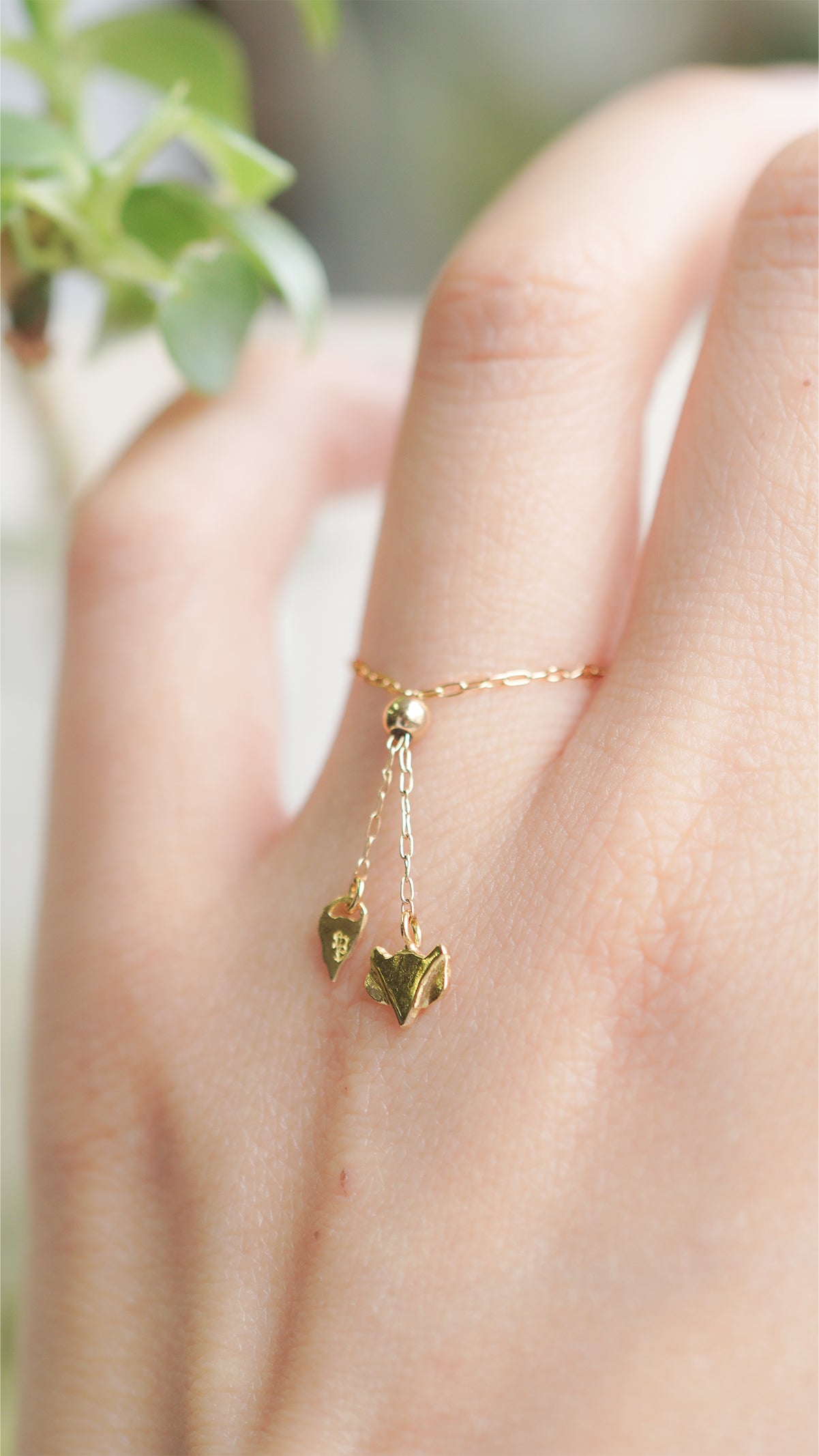 着用したい指のサイズに予めスライドボールでチェーンリングの長さを調整いただいてから指に着用し、