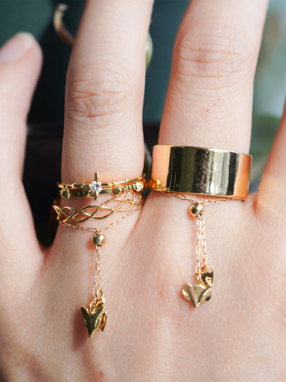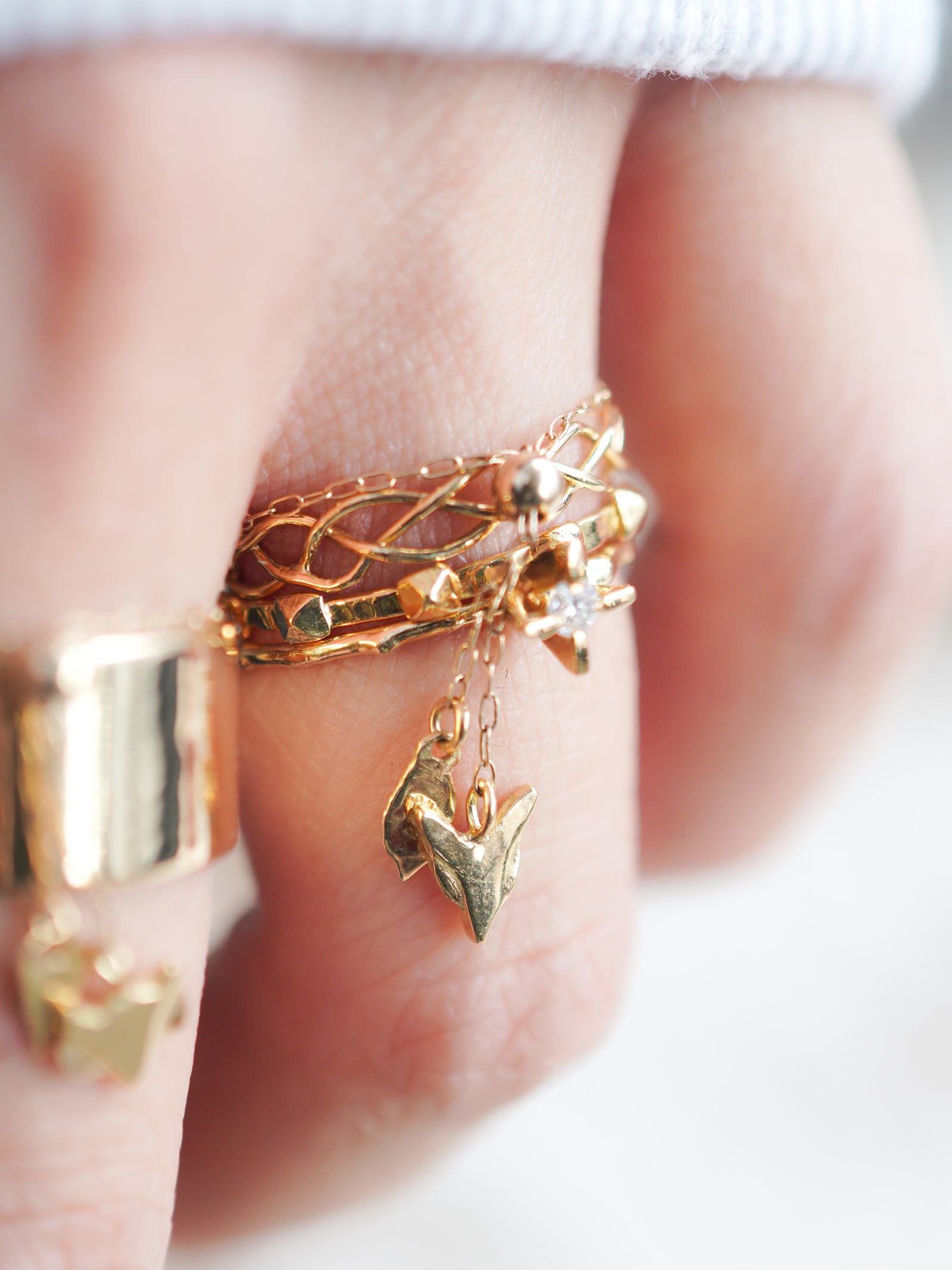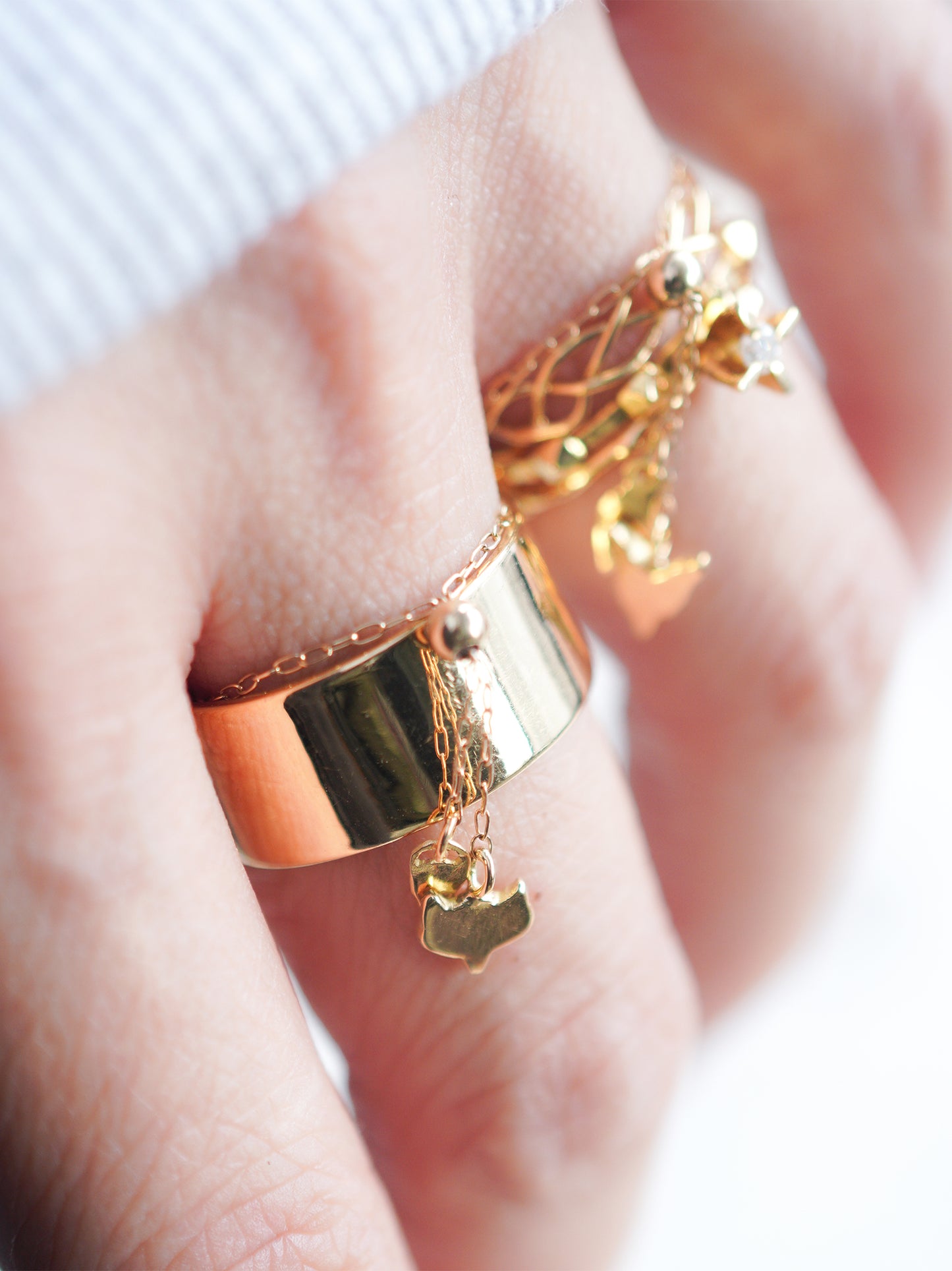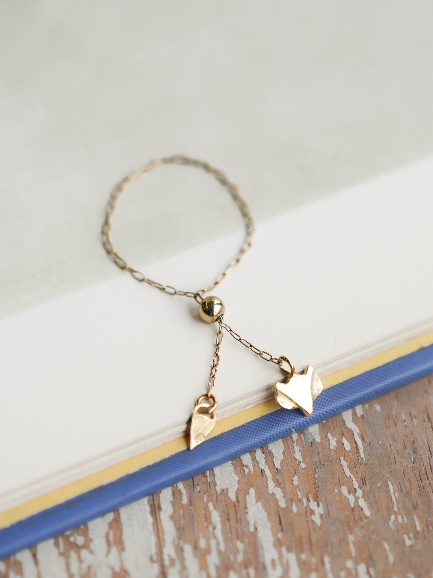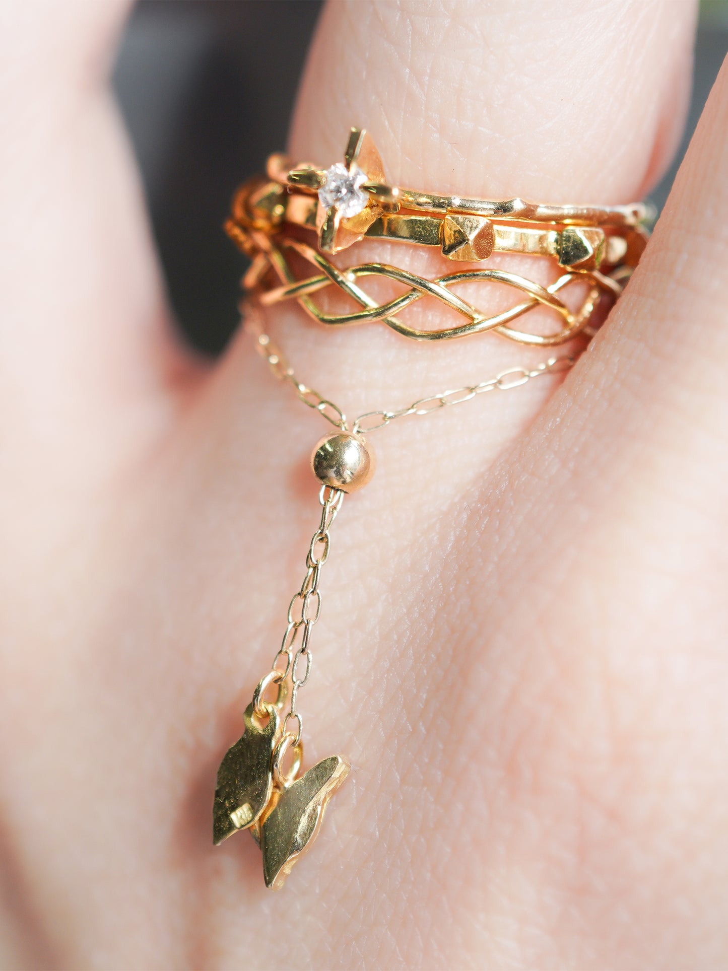 着用したい指のサイズに予めスライドボールでチェーンリングの長さを調整いただいてから指に着用し、