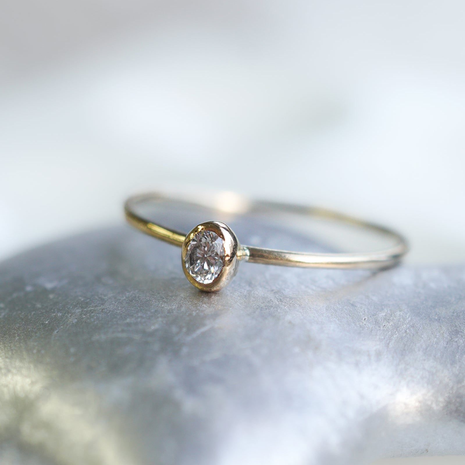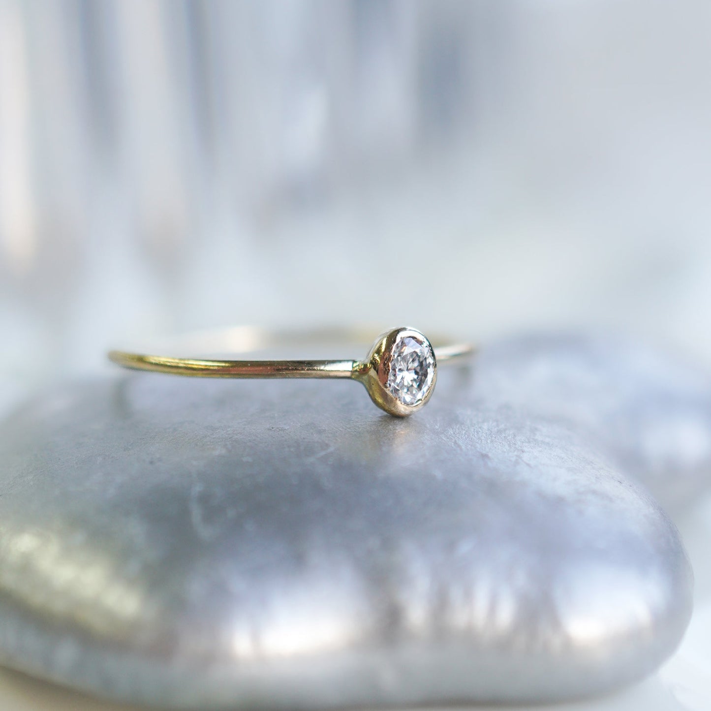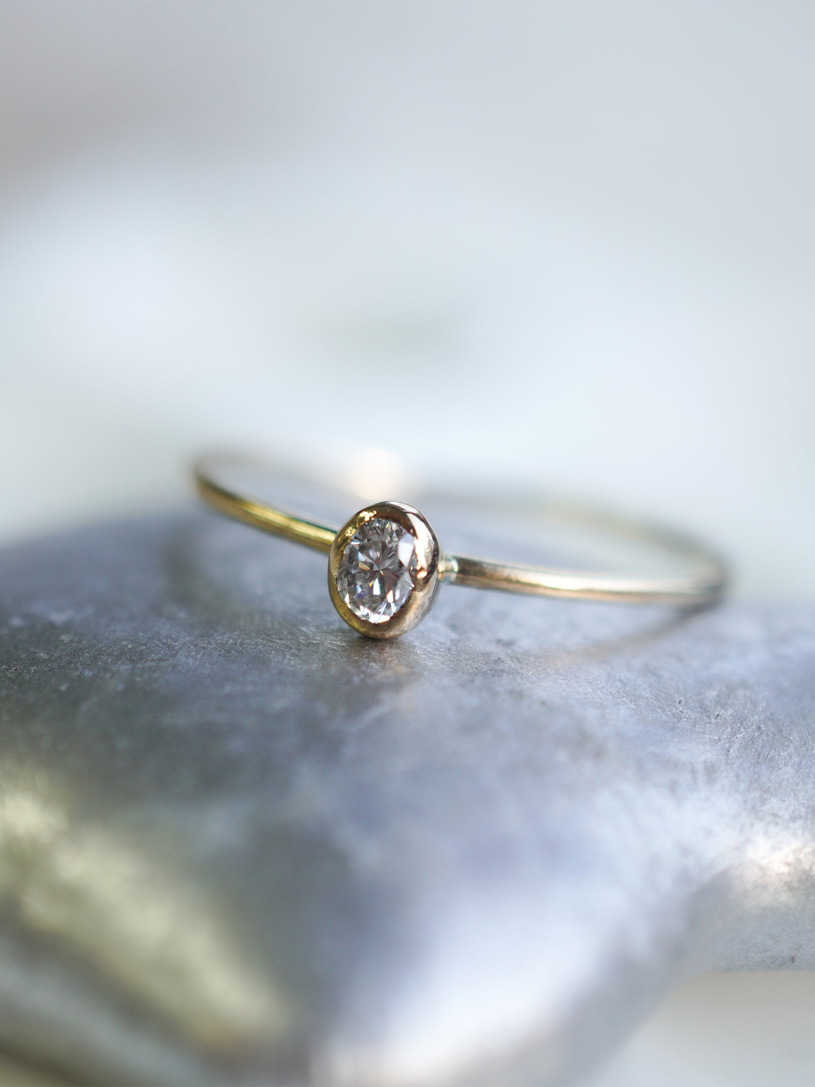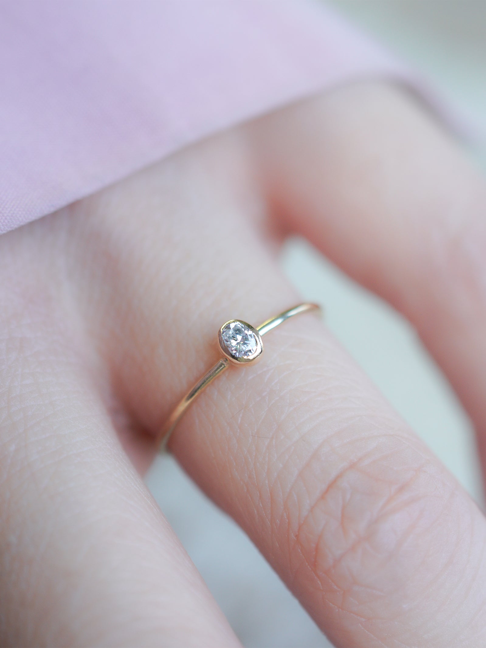 シンプルなオーバル型のダイヤモンドをあしらったリング。
