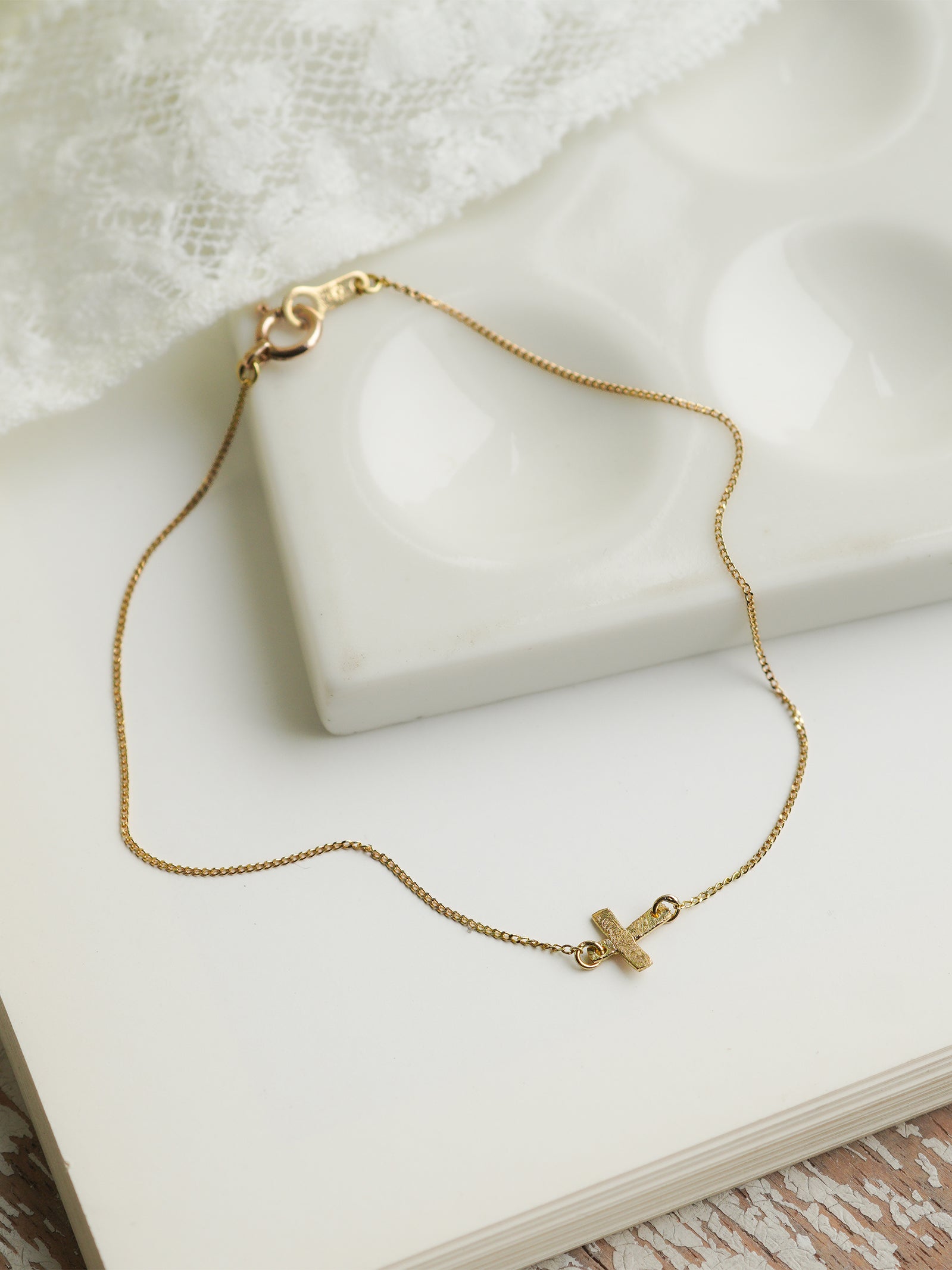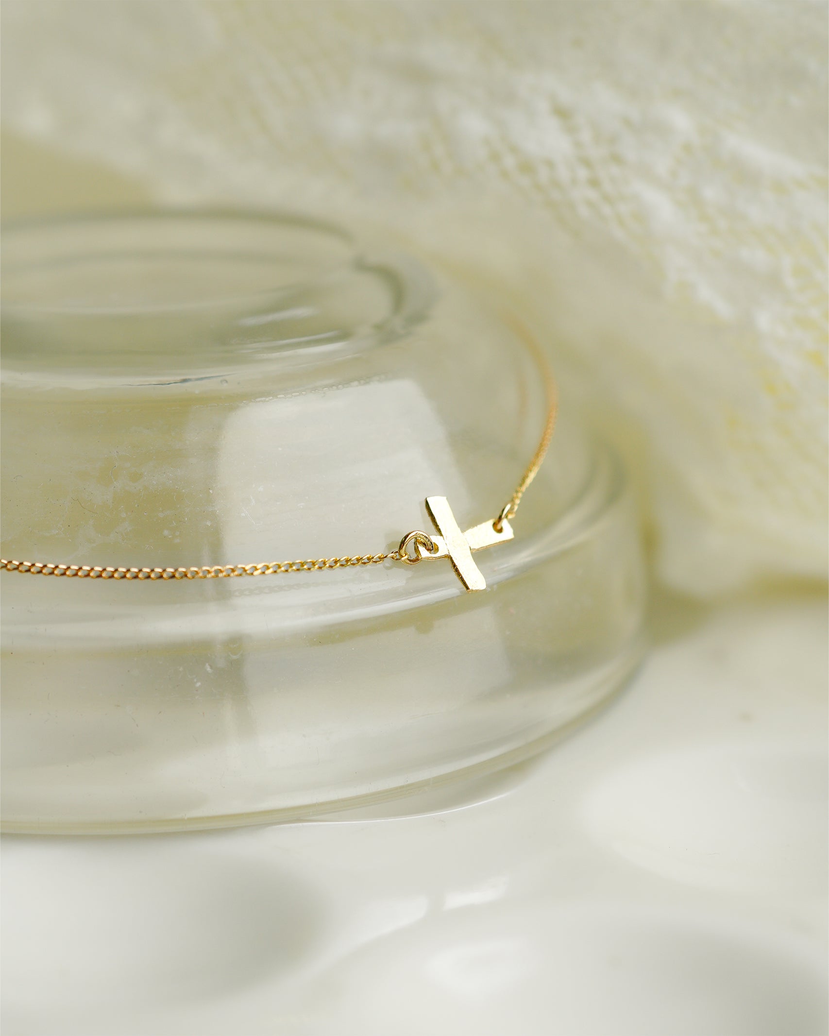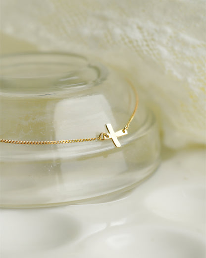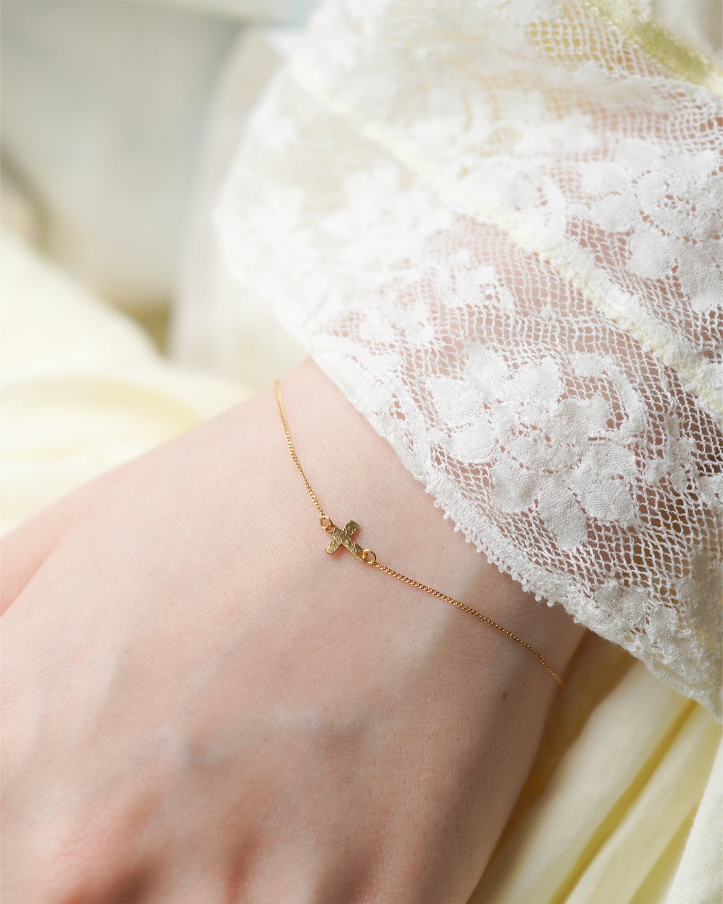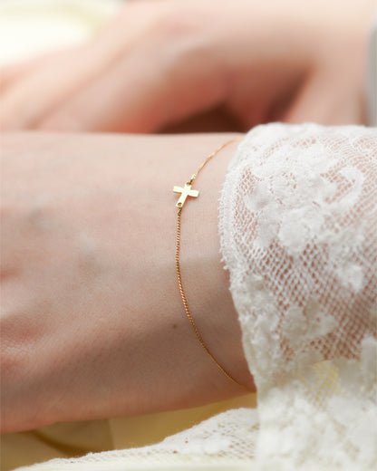 表面に繊細な模様が施された肌馴染みのいいクロスデザインのブレスレット。