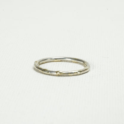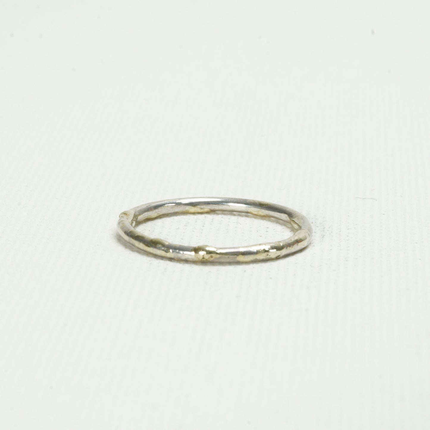 silver925で作られたリングに施されたk18敢ゴールドは、敢えてムラになるよう施されていて、ハンドメイドならではの風合いが楽しめます。