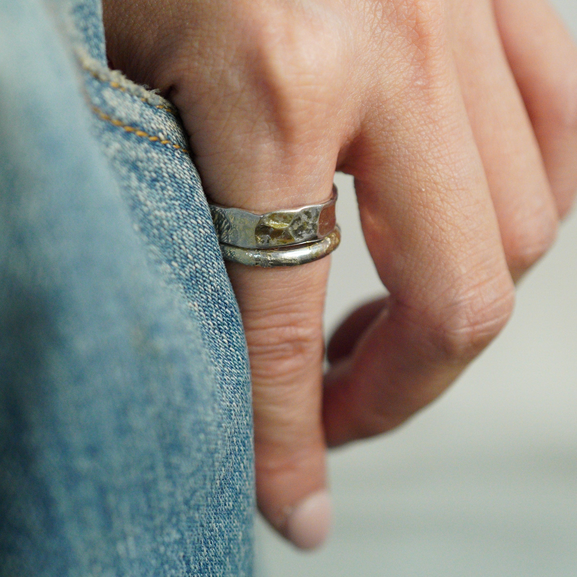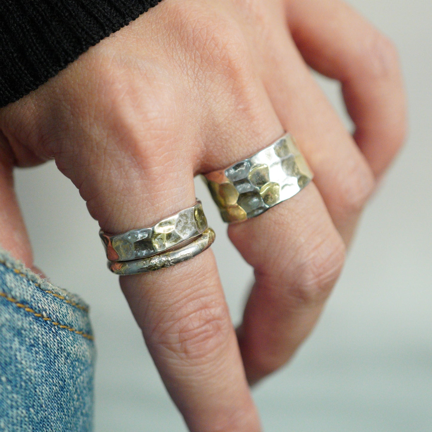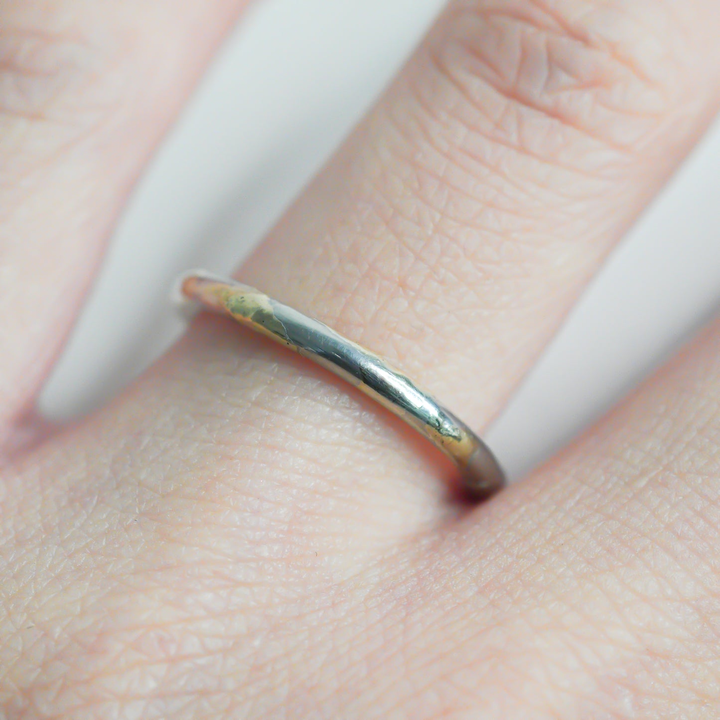 silver925で作られたリングに施されたk18敢ゴールドは、敢えてムラになるよう施されていて、ハンドメイドならではの風合いが楽しめます。