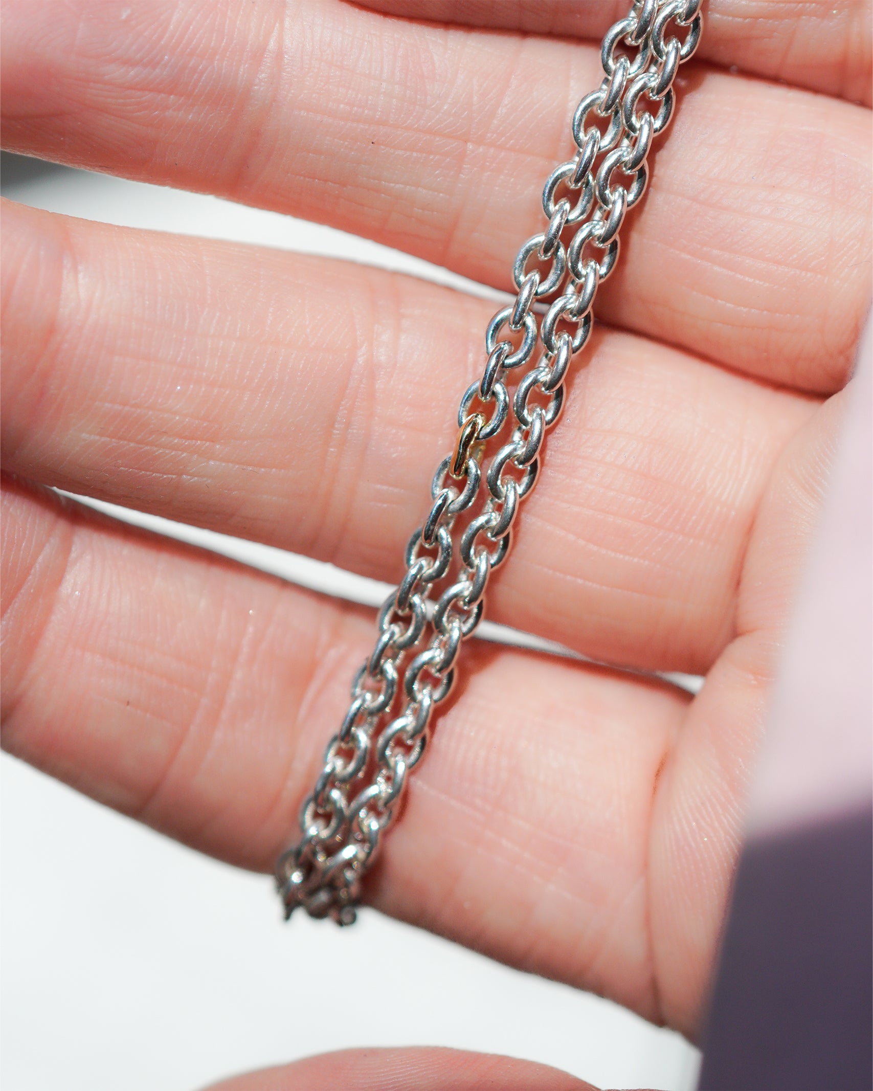 雨をイメージしたシルバーチェーン。1つの雨粒をGOLDでつなぎ、エタニティのデザインで仕上げたアクセサリーです。
