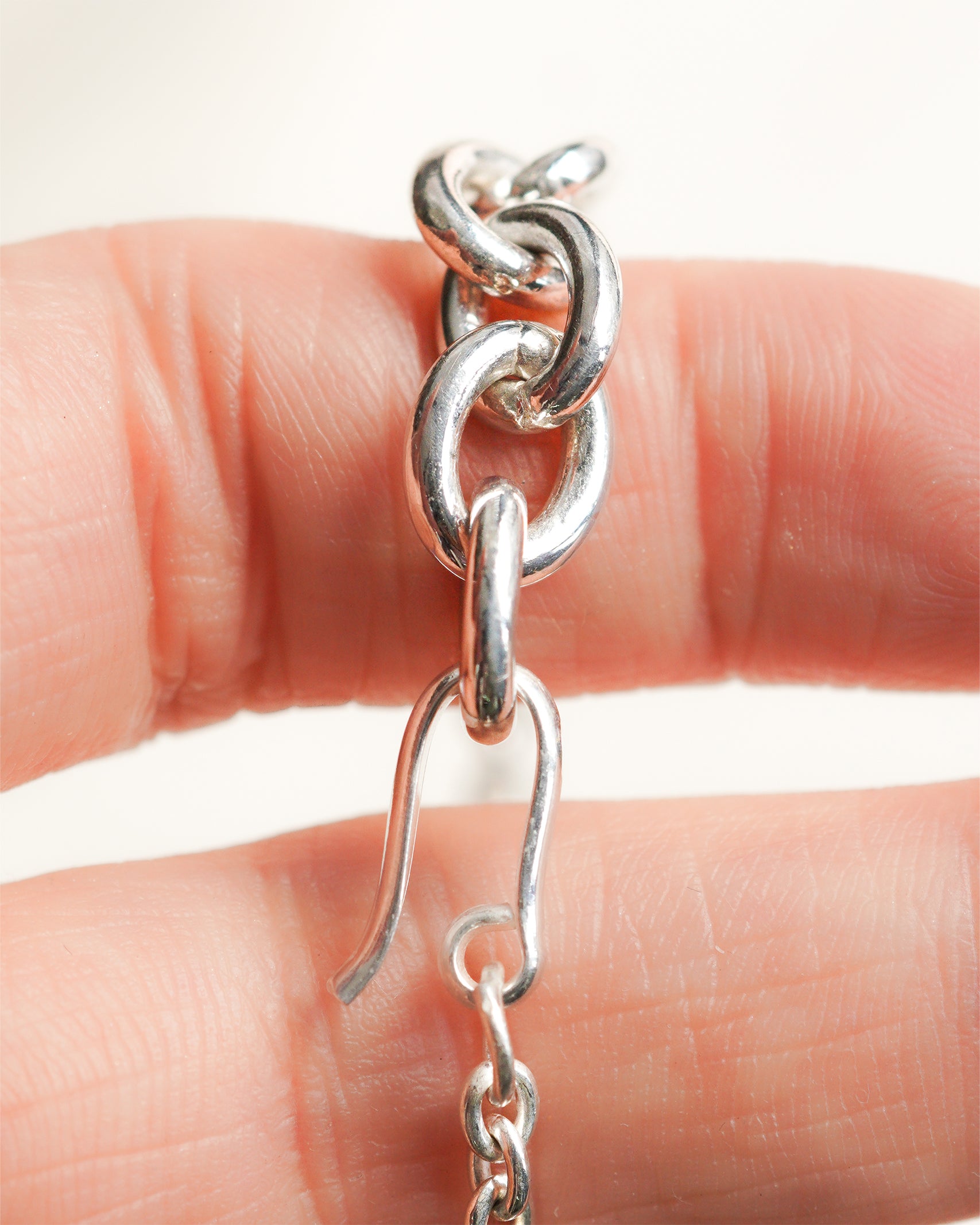 突然雷を伴って降る大粒の雨。プリュイシリーズのチェーンから同じ形のアズキチェーンの大粒と繋ぎ雷雨を表現しております。