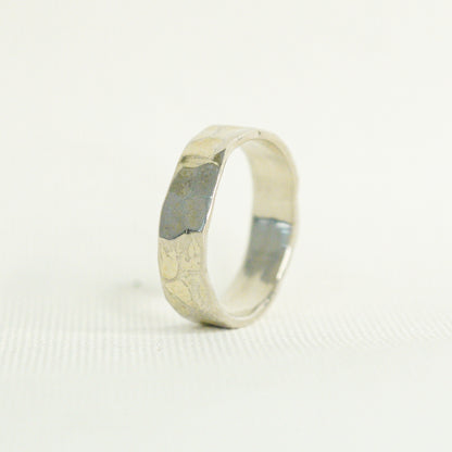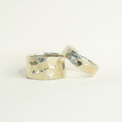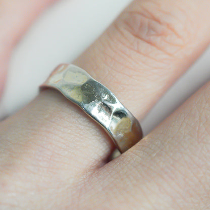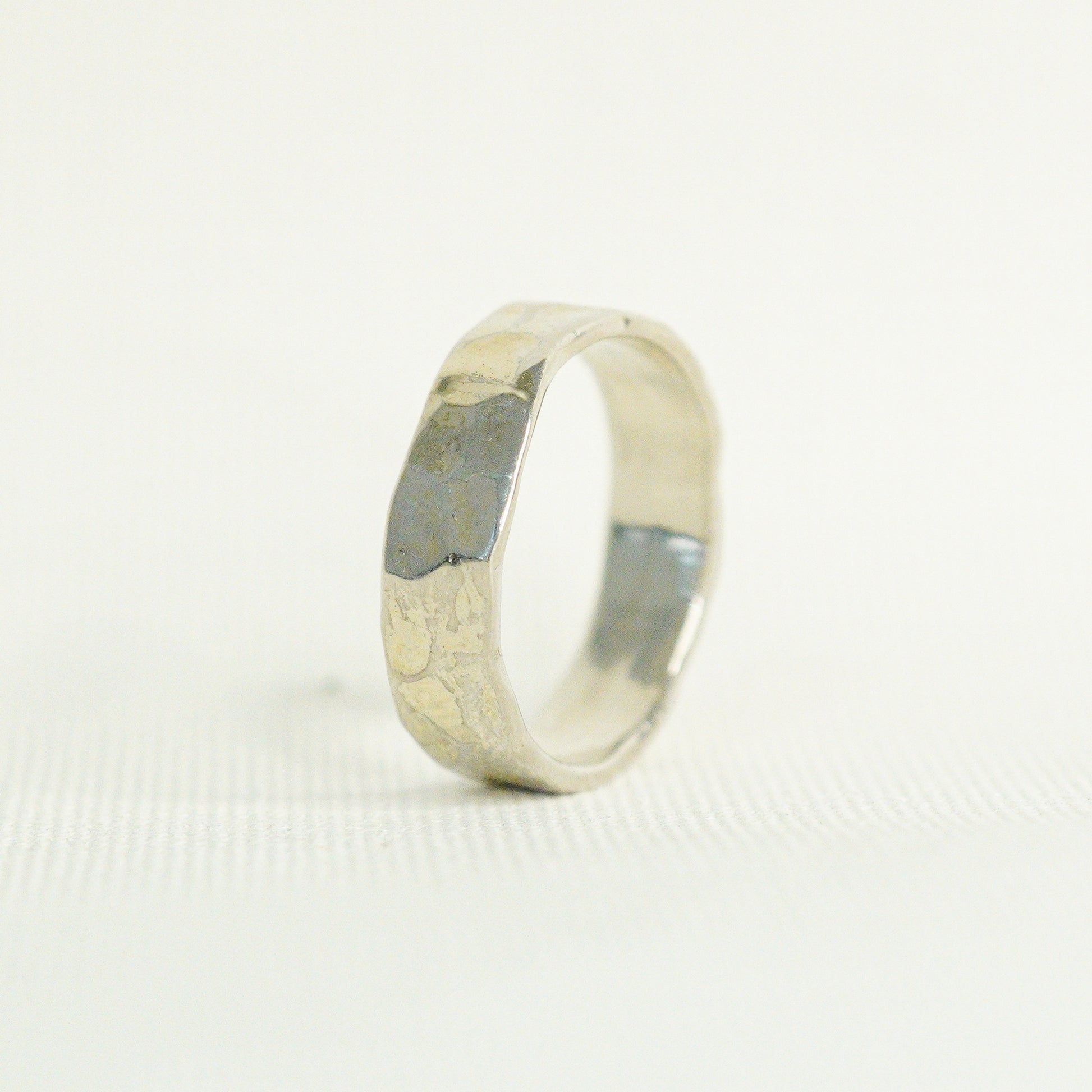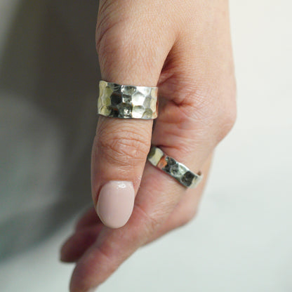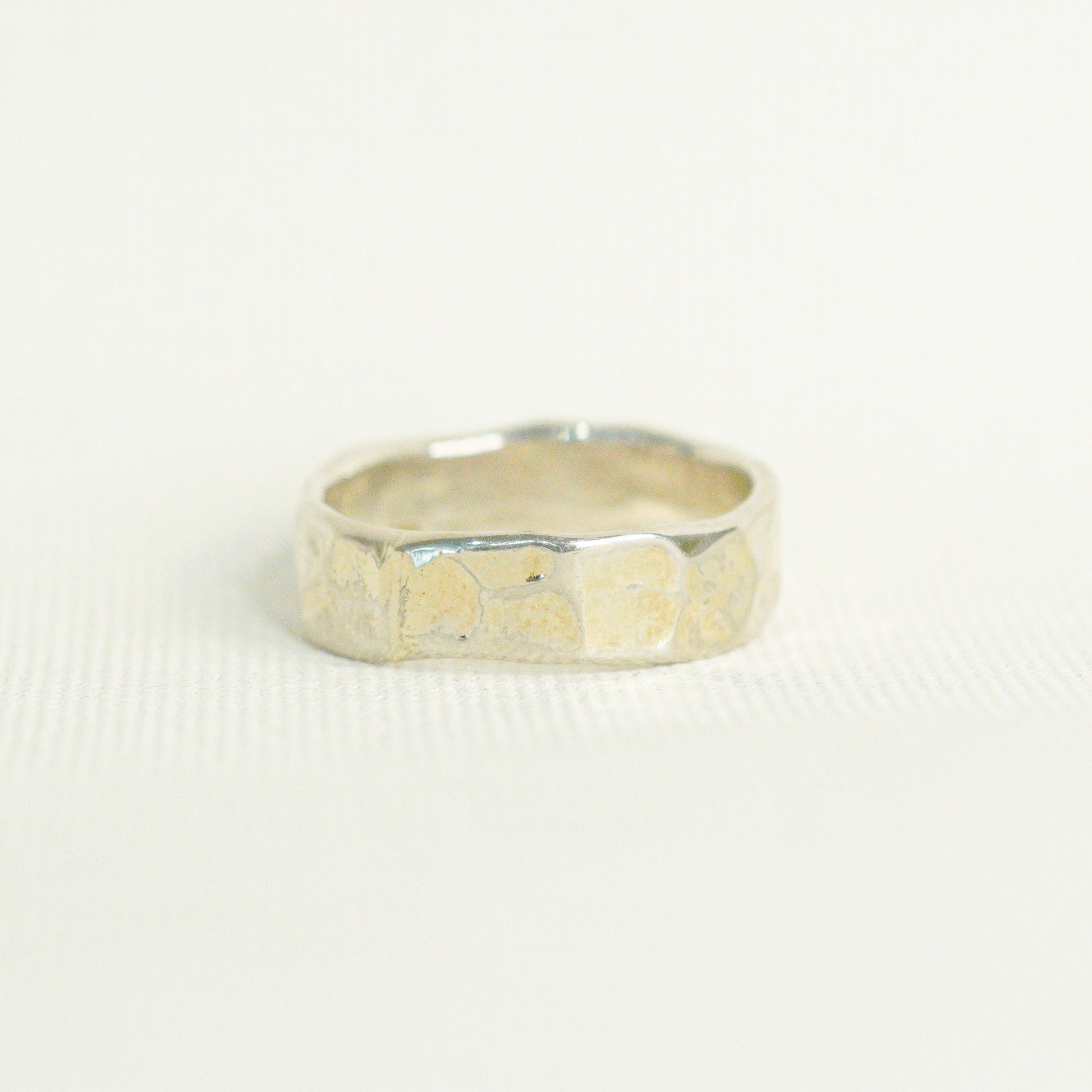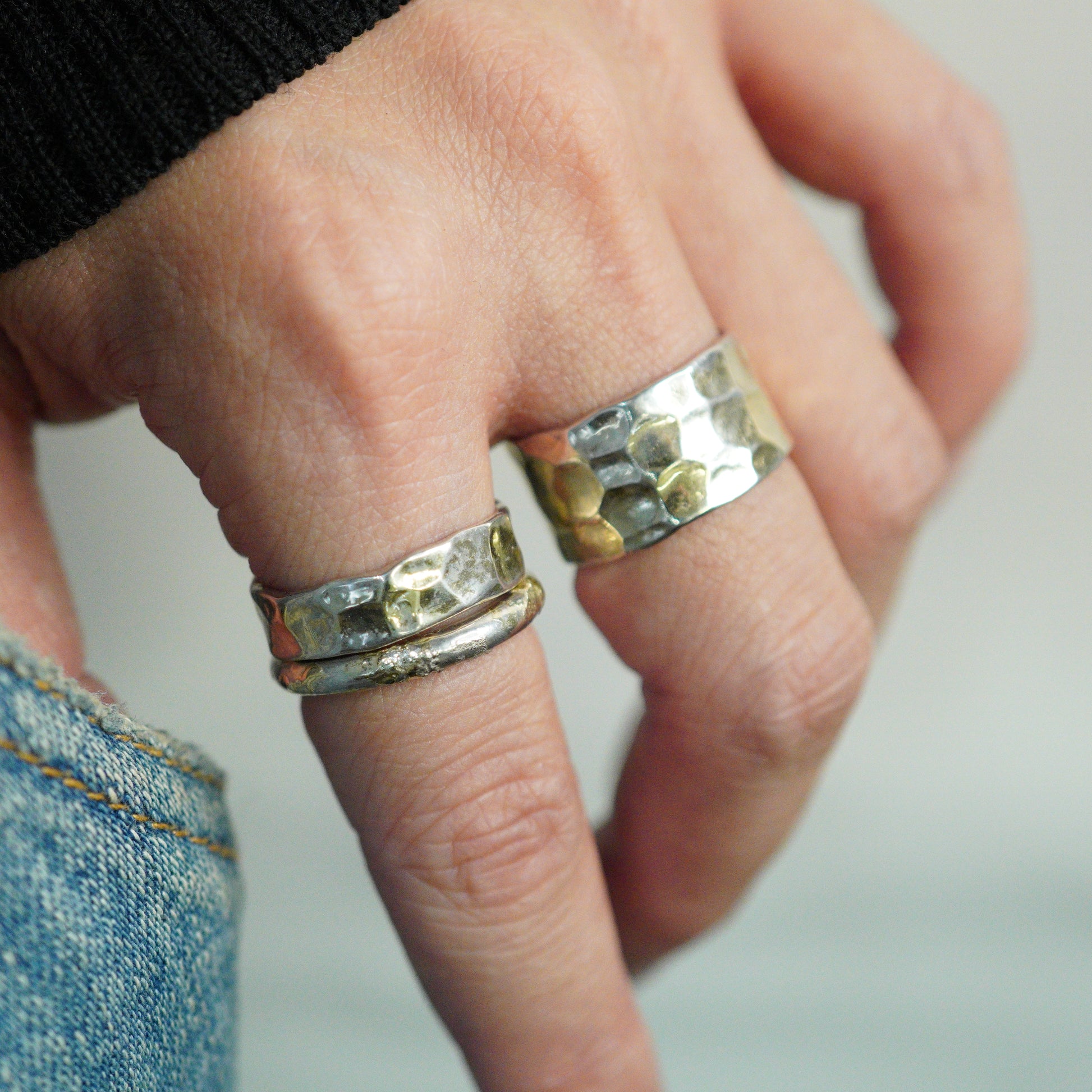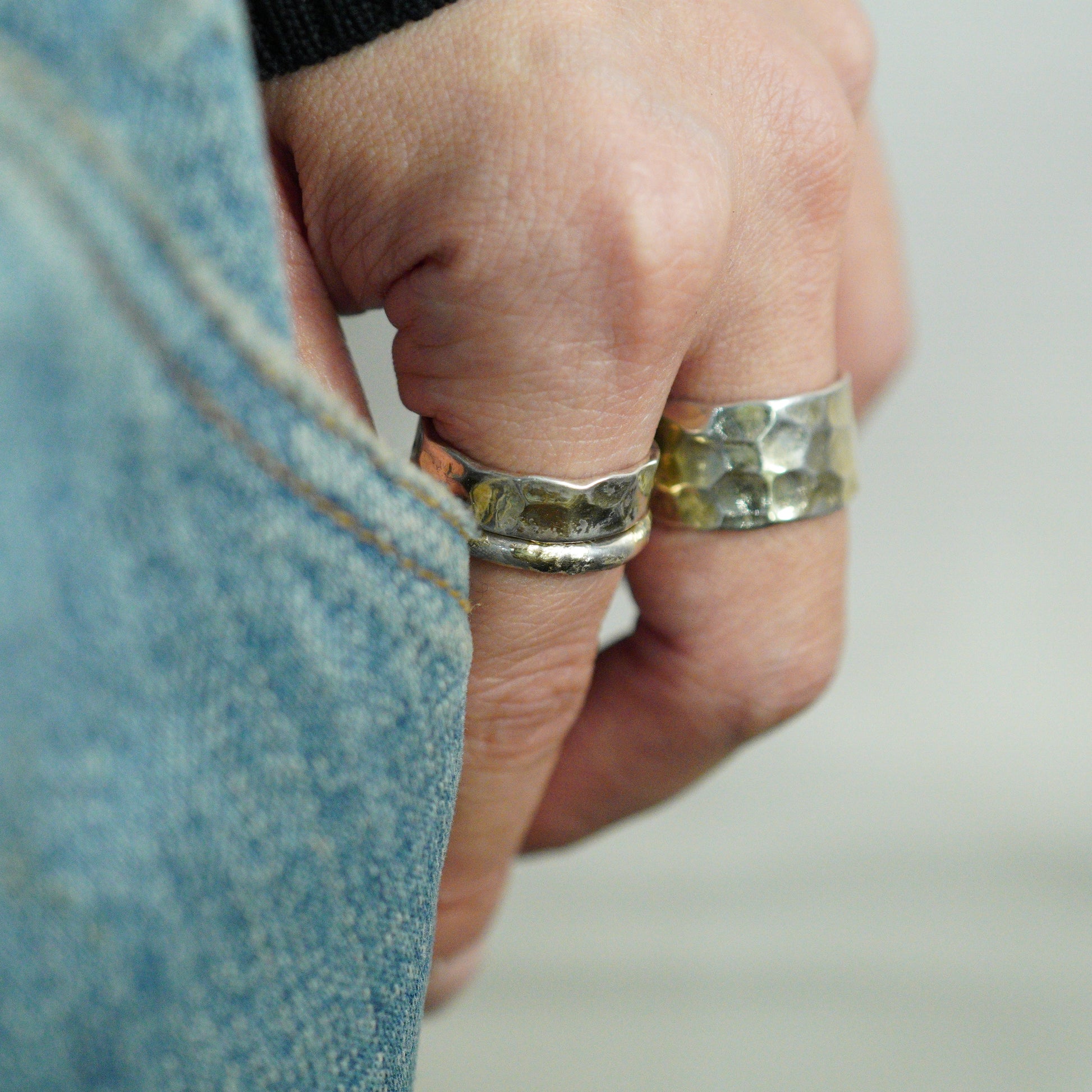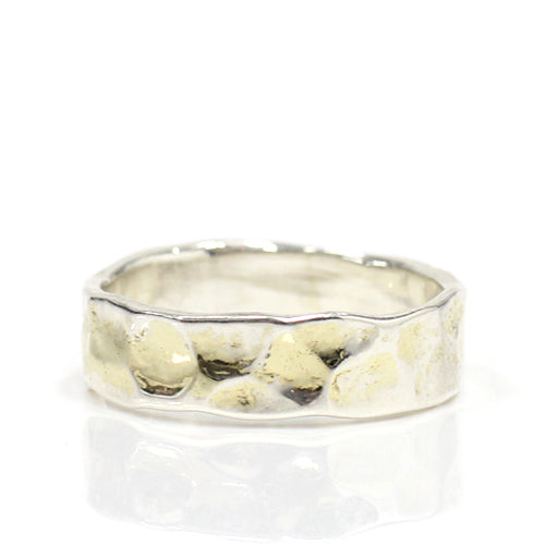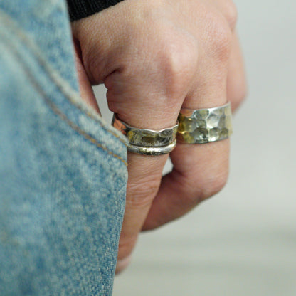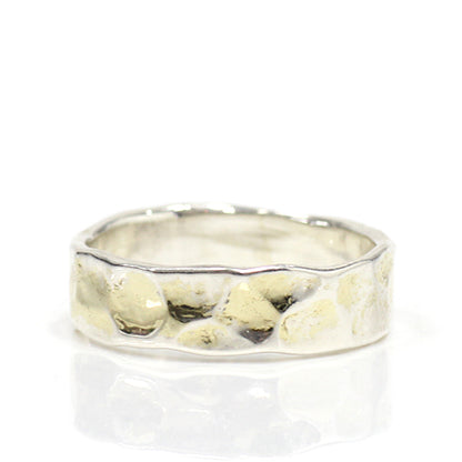 表面の凹凸が美しく、シルバーリングの上に薄く塗られたゴールドがきらきらと輝くエレガントなリング。