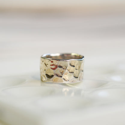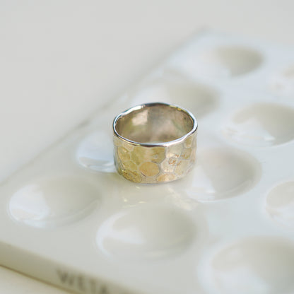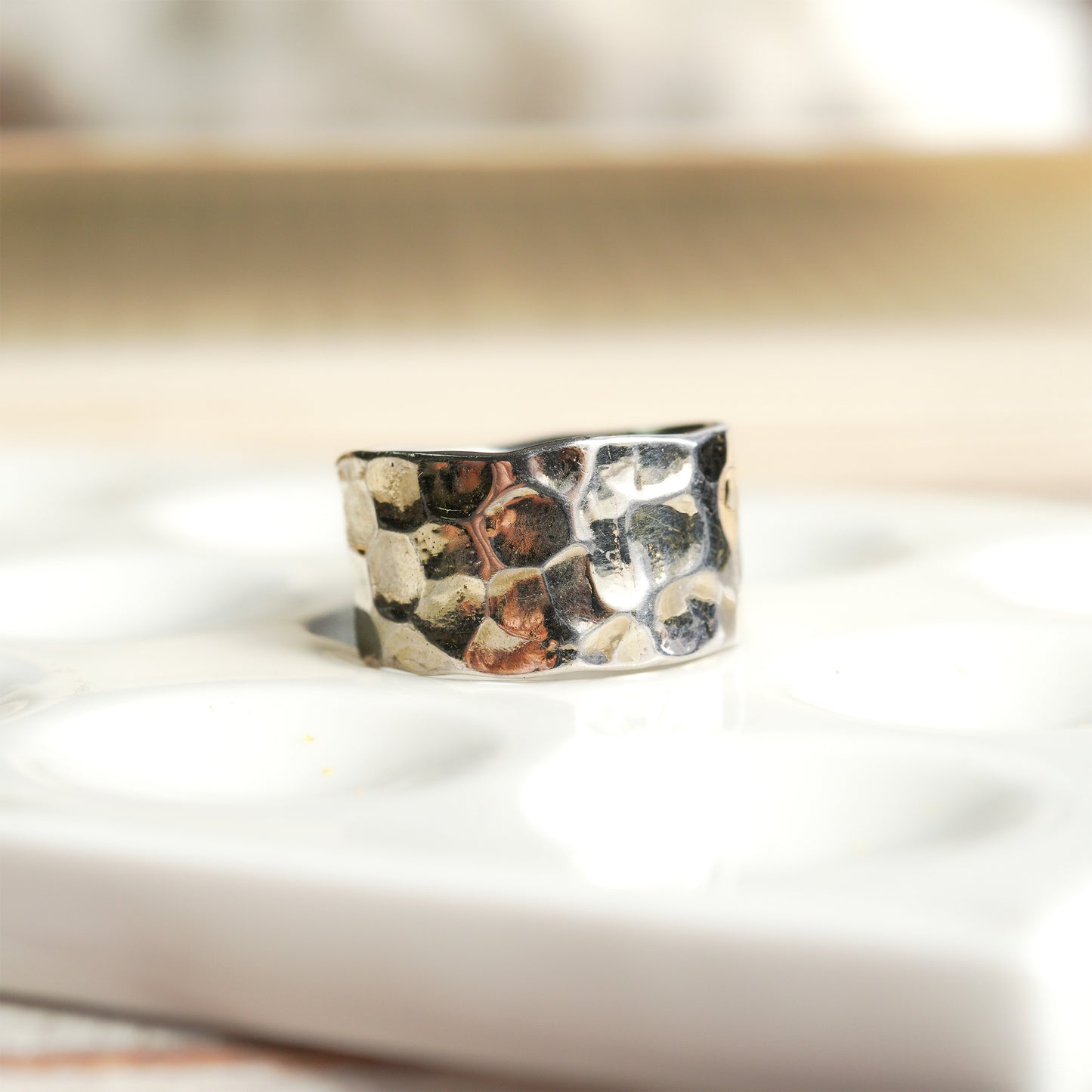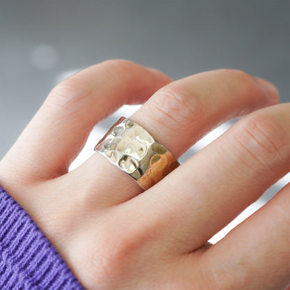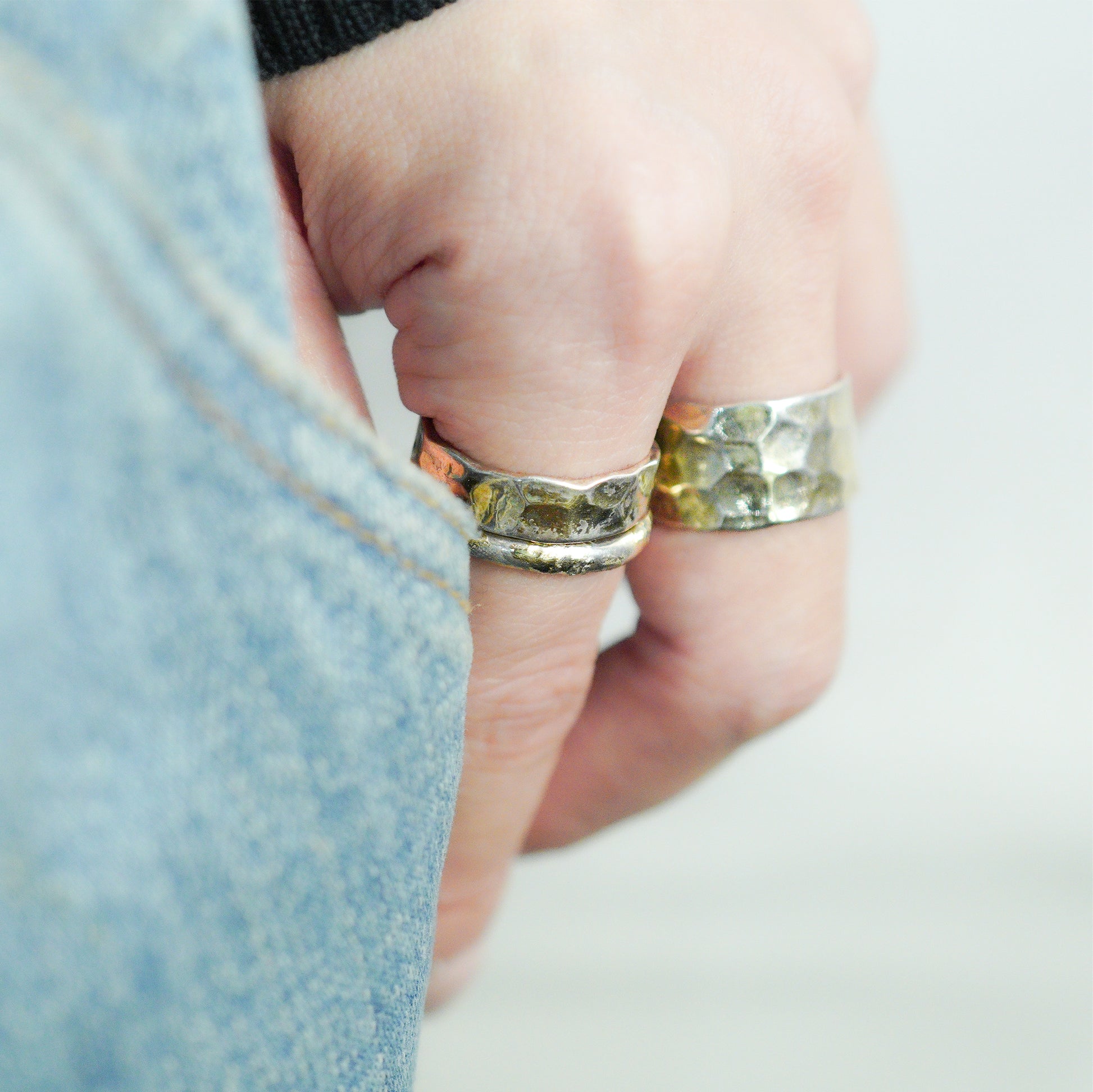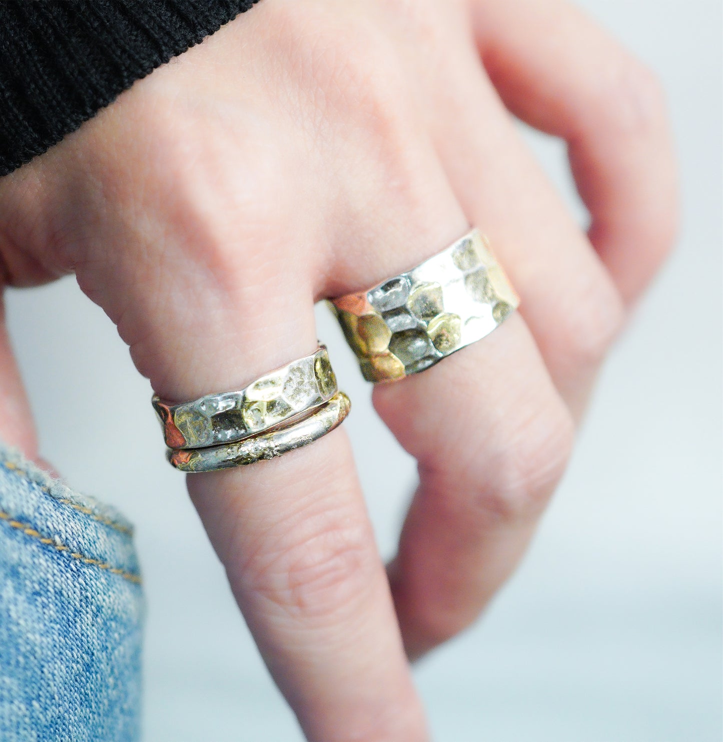 表面の凹凸が美しく、シルバーの表面にゴールドを溶かし流し込んだあデザイン。
