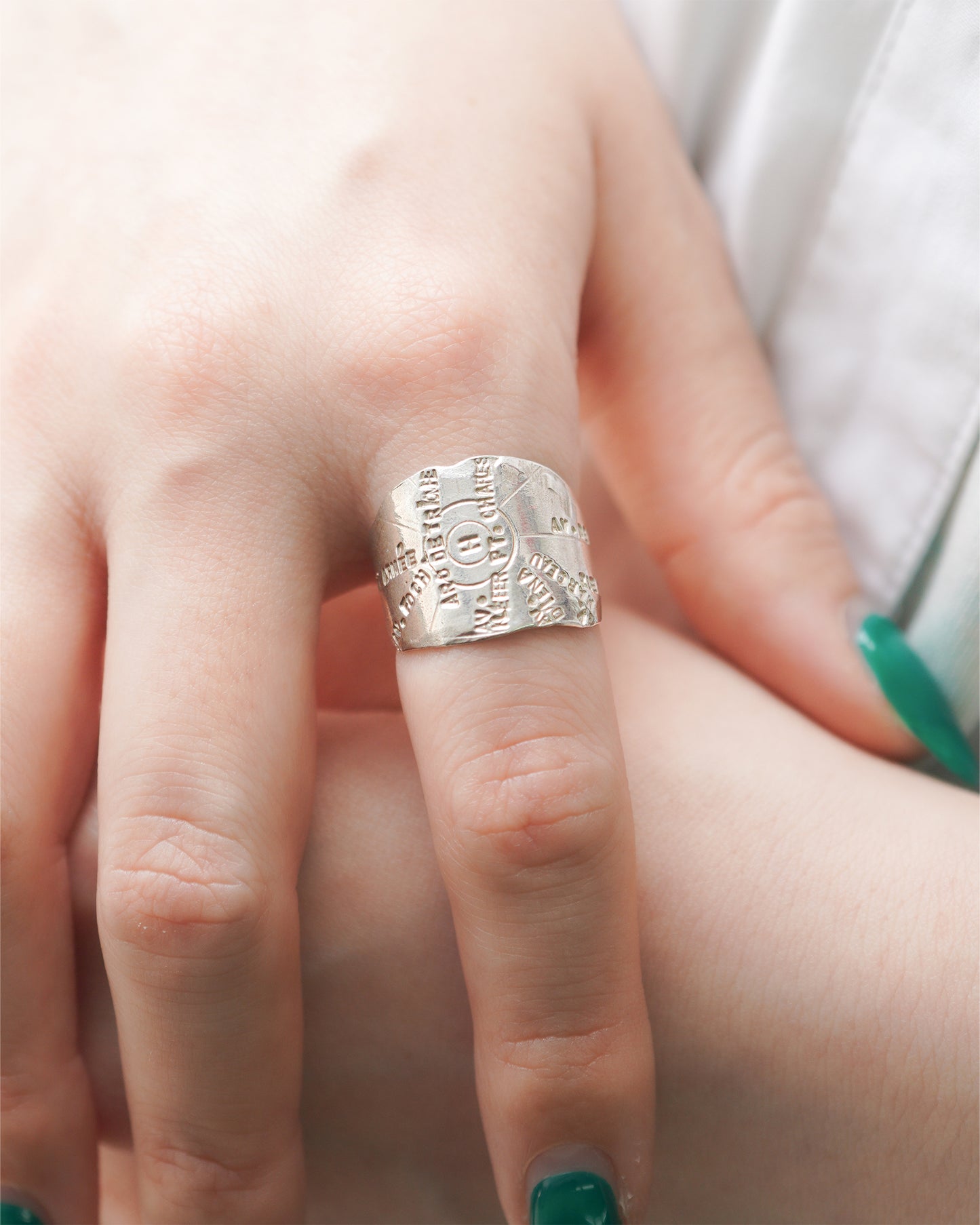 日本の美術と馴染みが深いパリの街を刻んだ指輪。