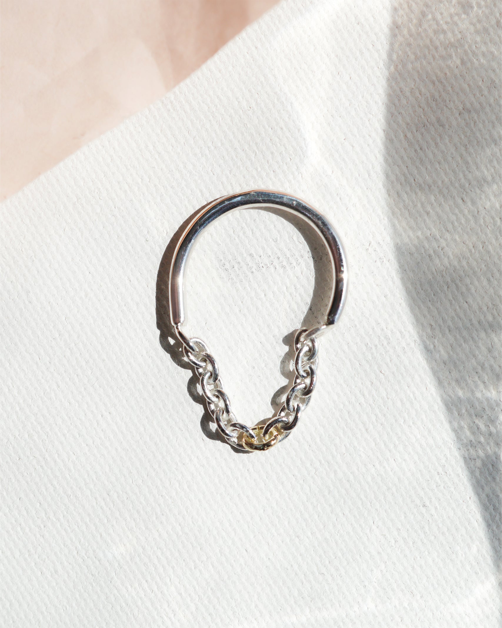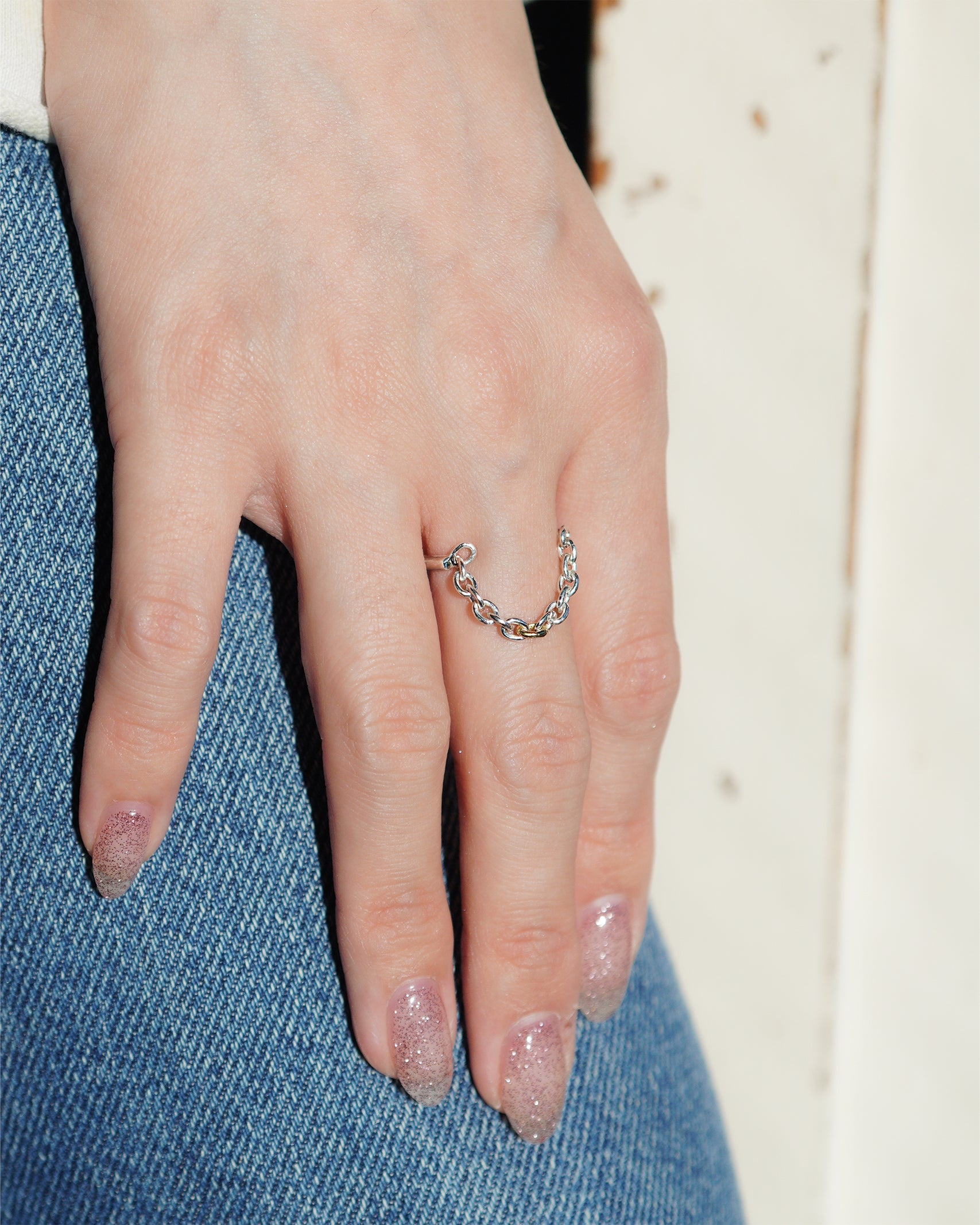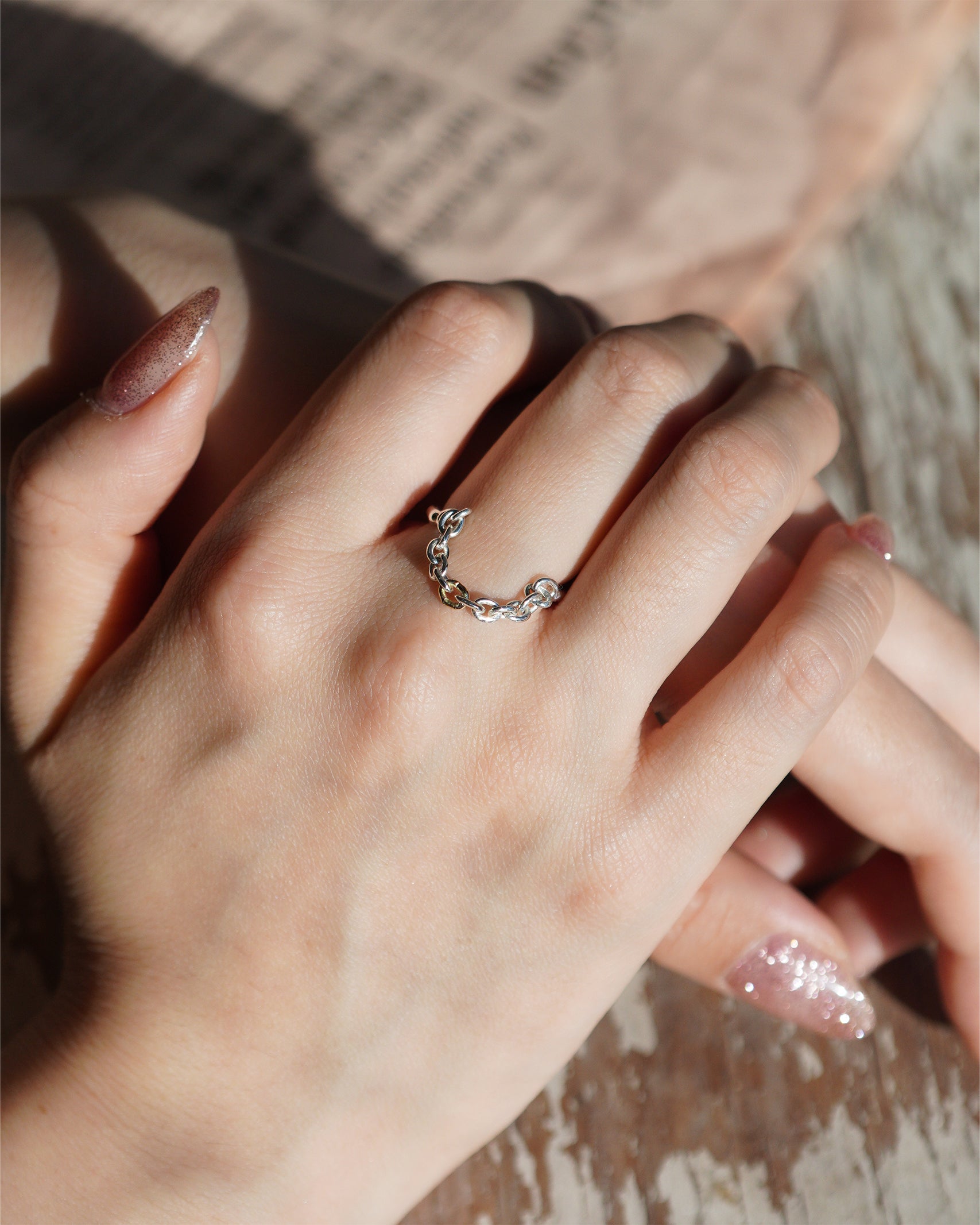 チェーンのデザインではありますが、雨の印象のように爽やかに、ライトに着用いただけるチェーンリングです。silverと18Kの両素材ともコーディネートをお楽しみください。
