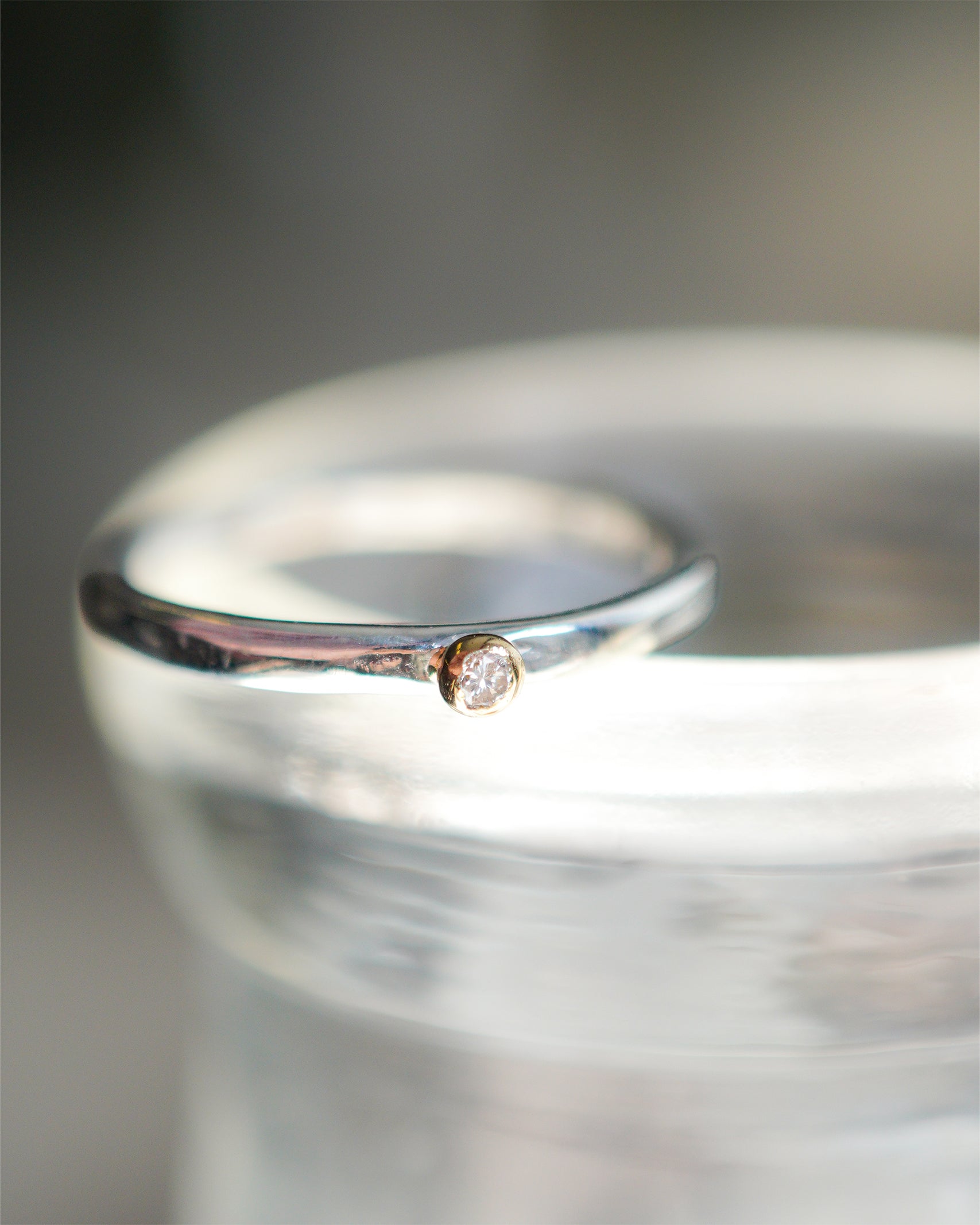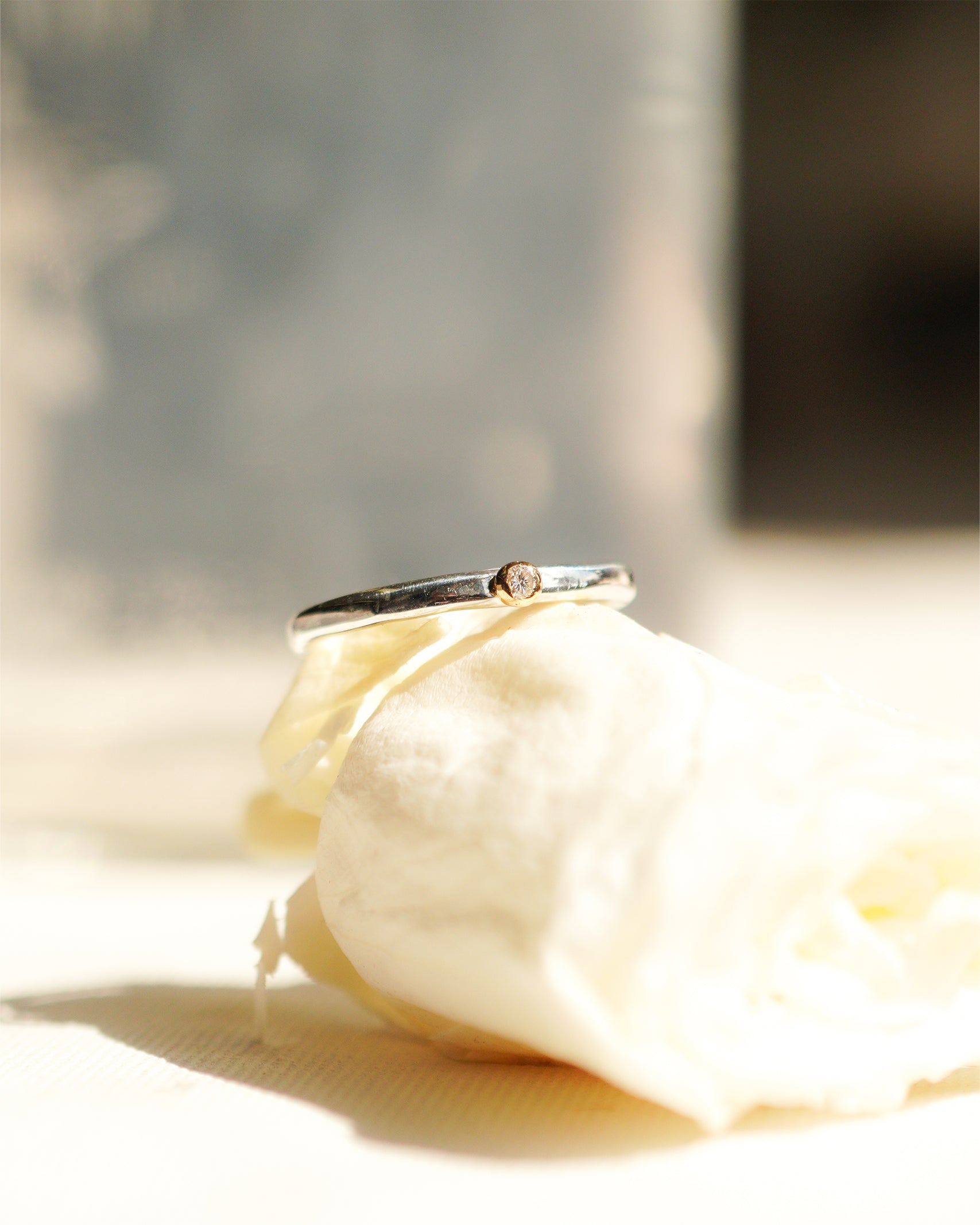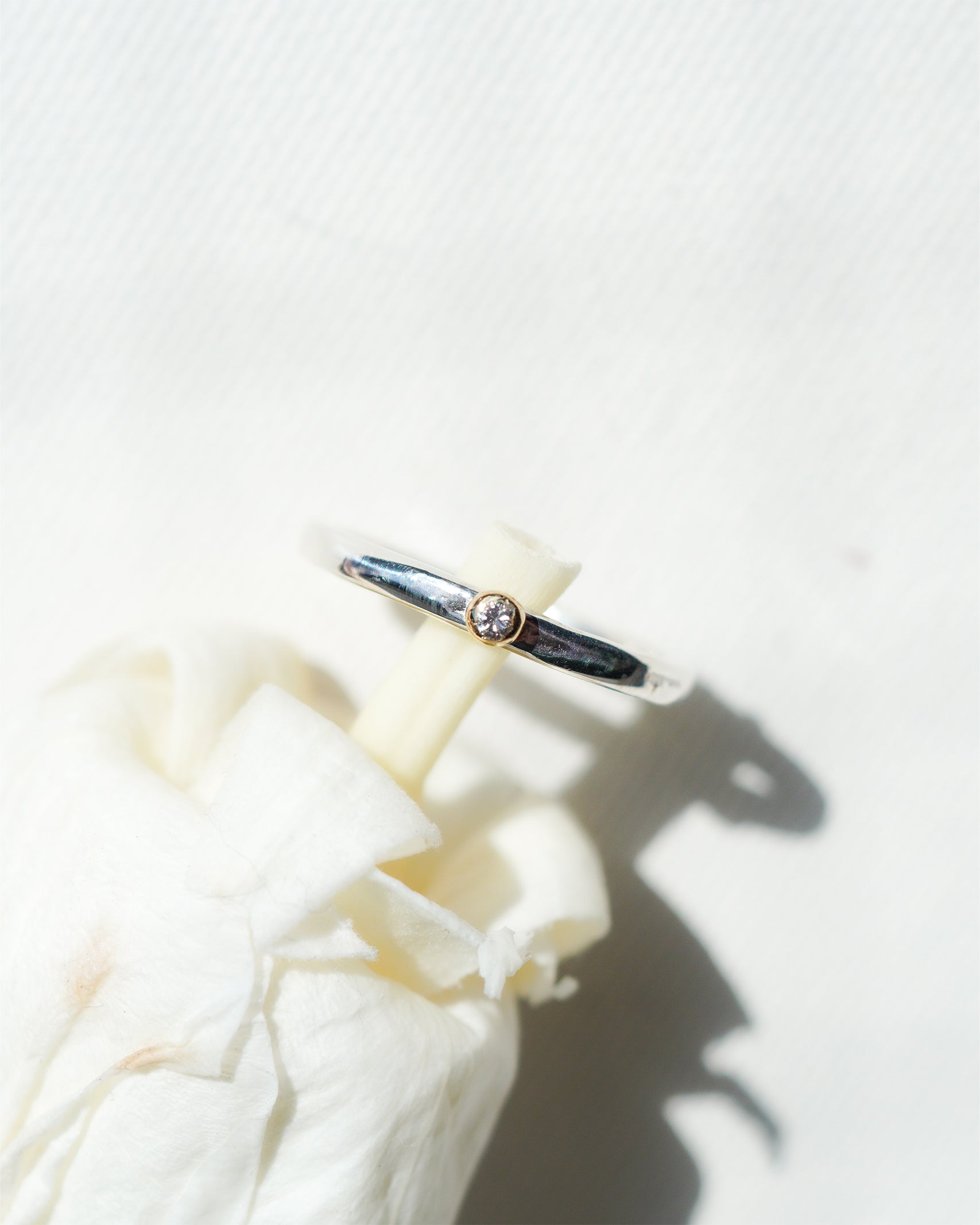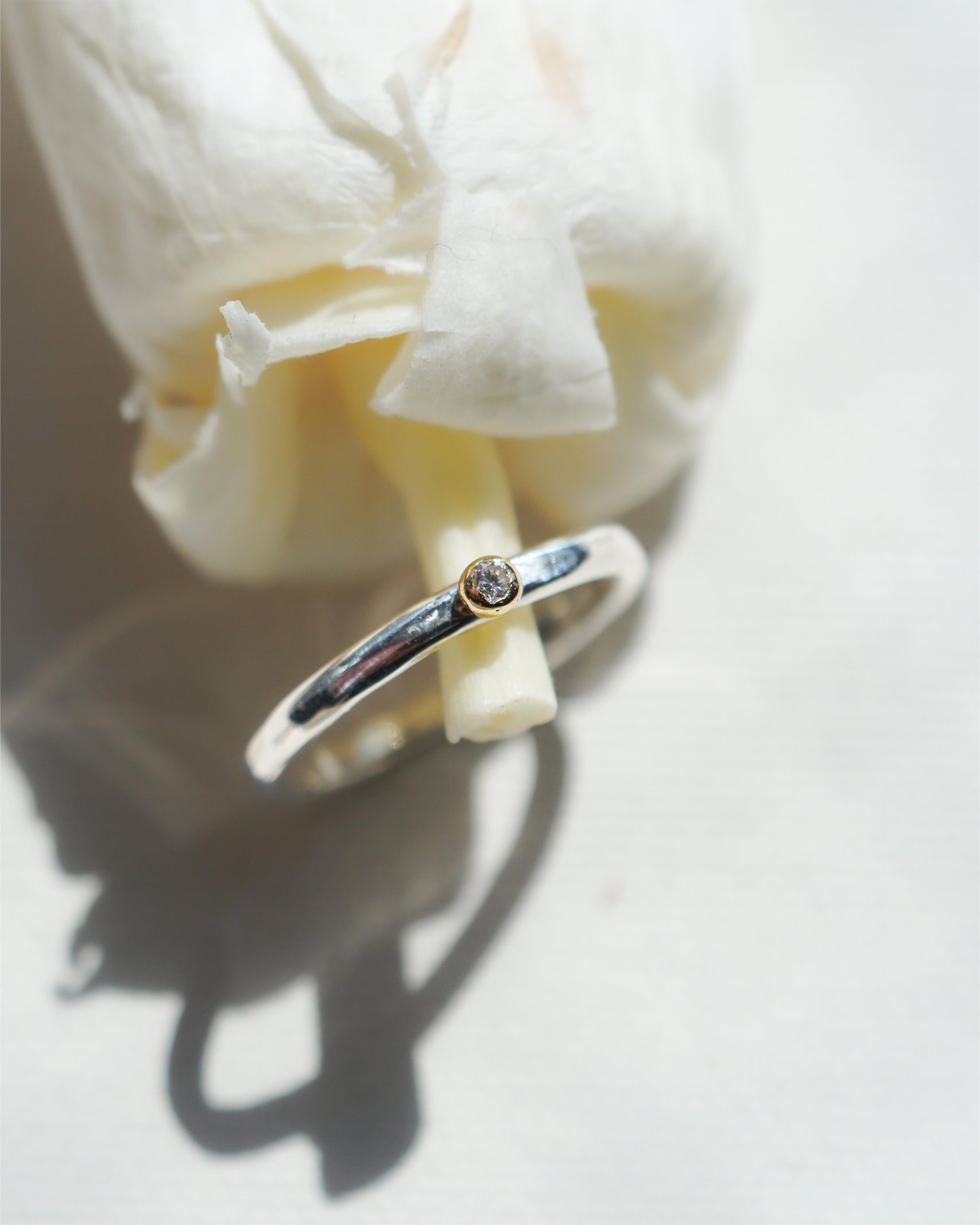 silverと18kを組み合わせた、小さなダイヤモンドが控えめながらも印象的なデザイン。