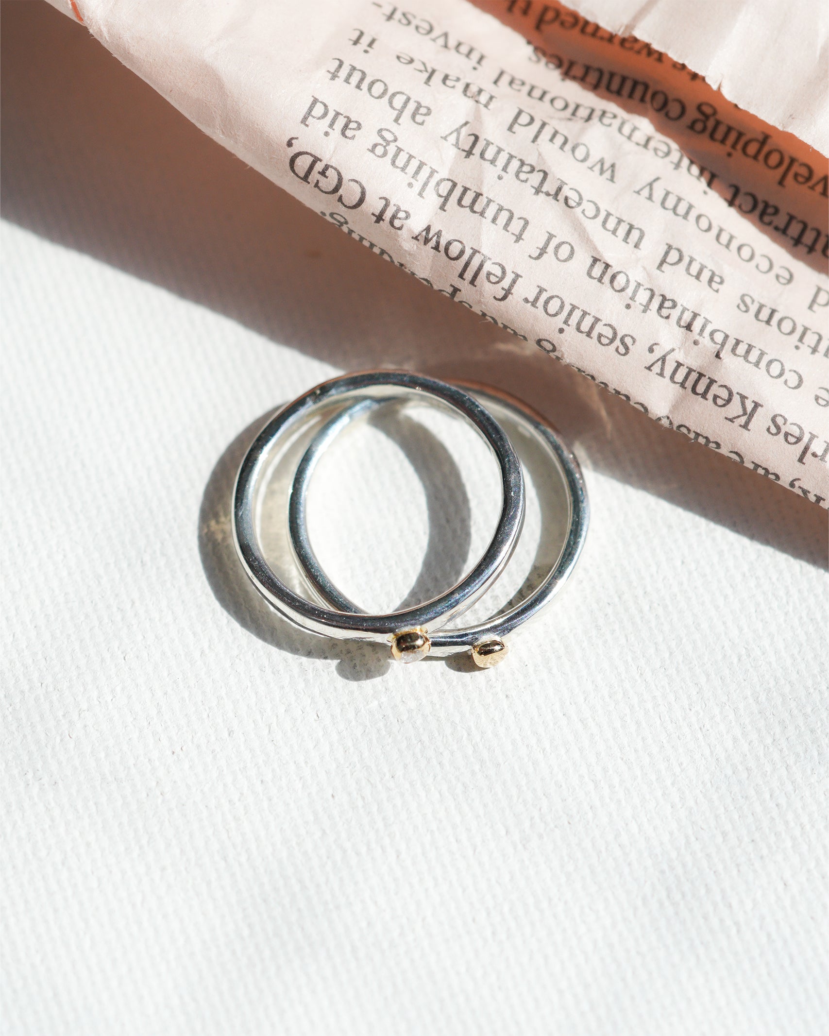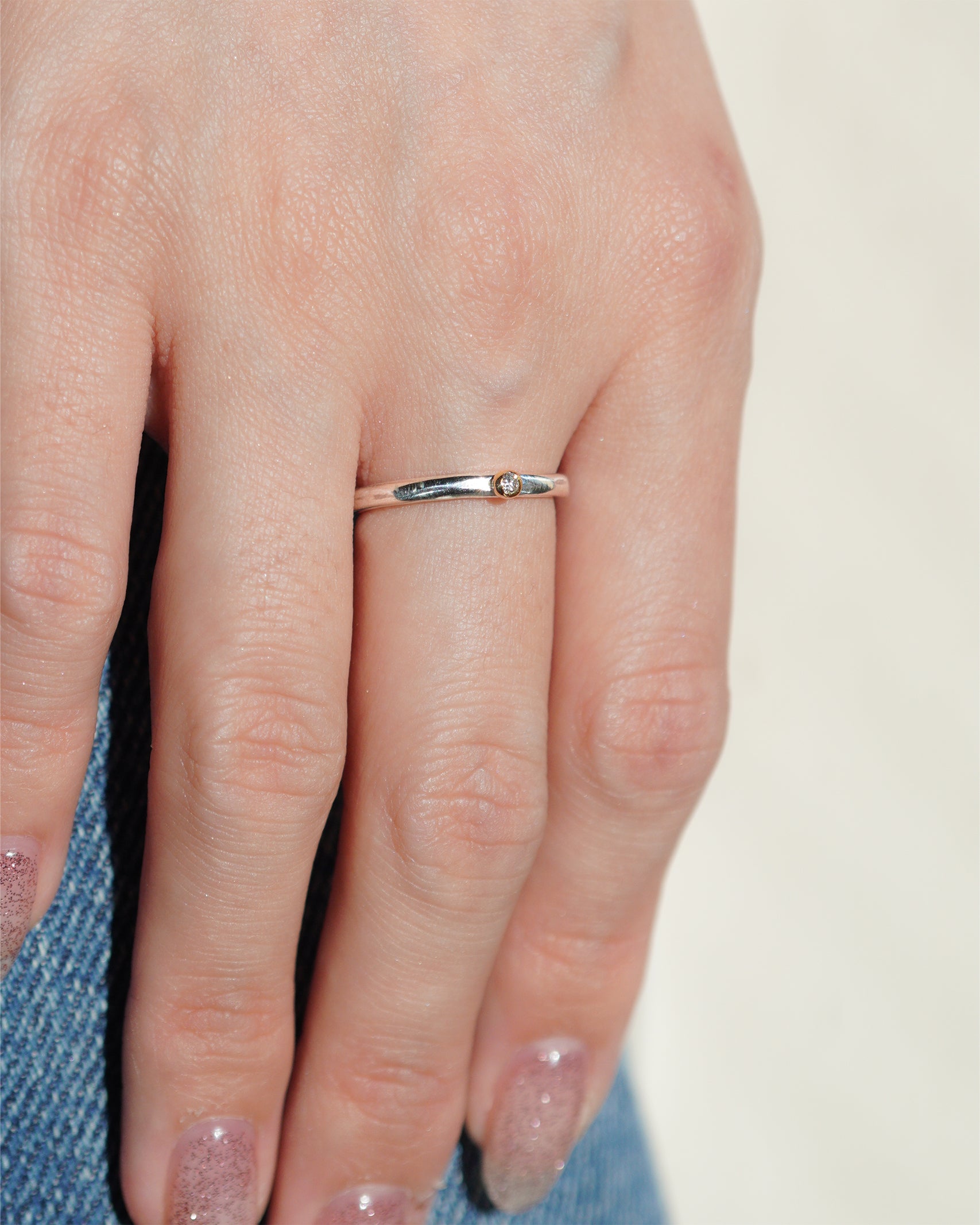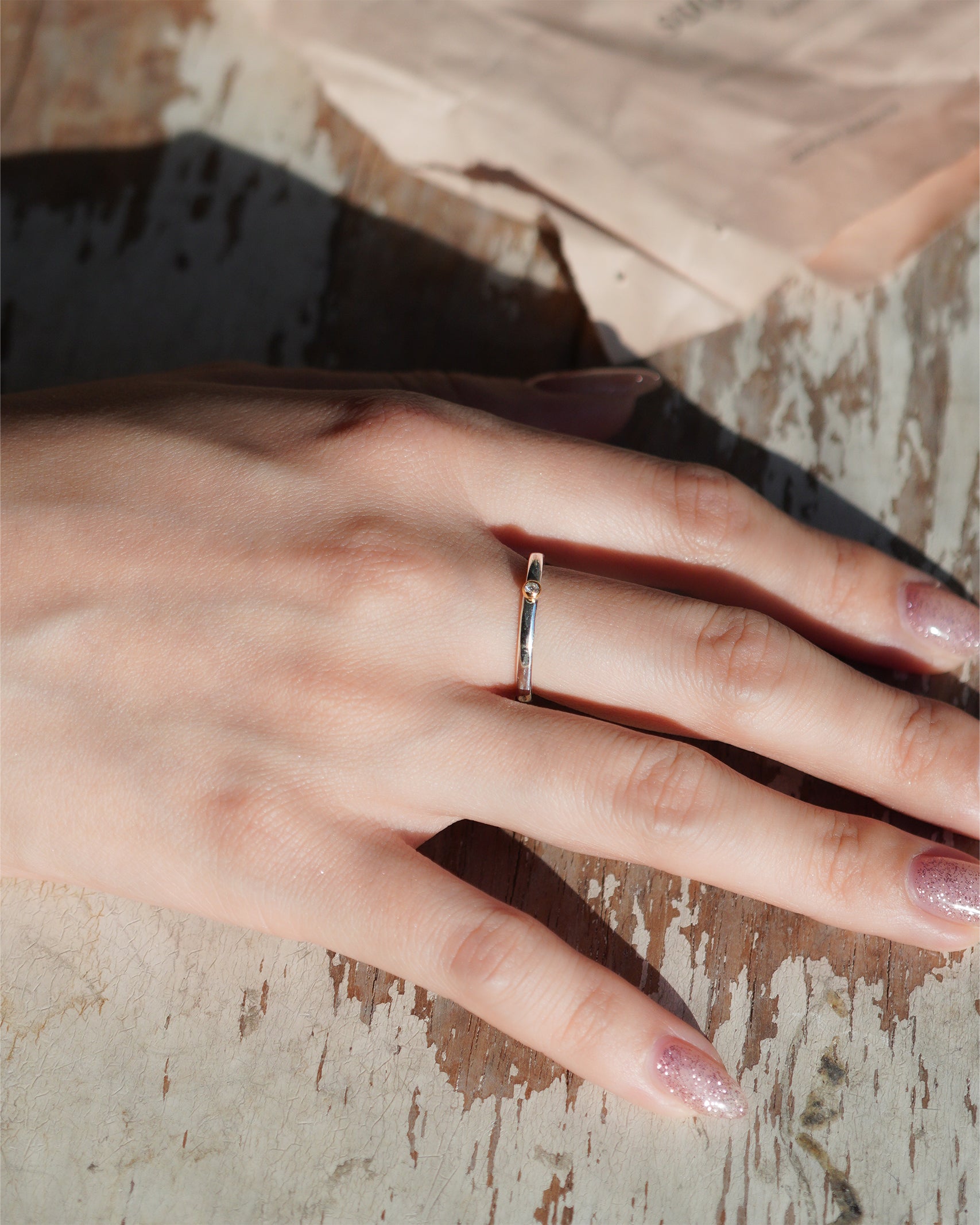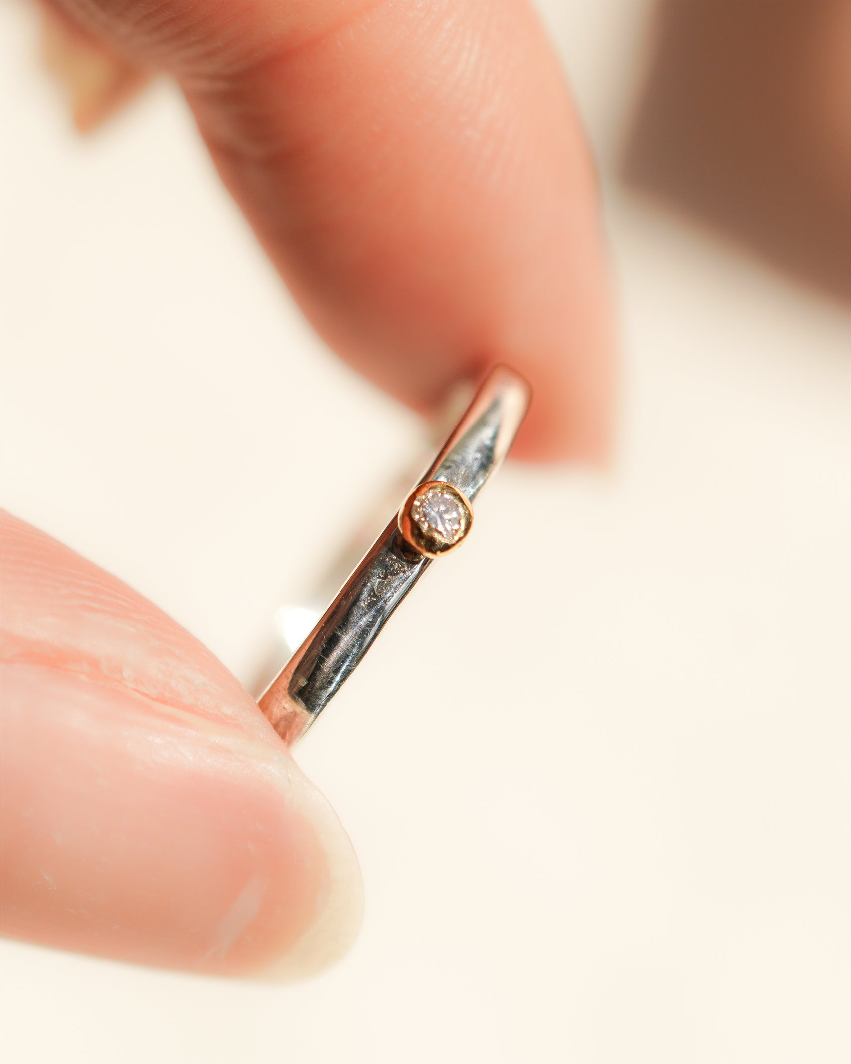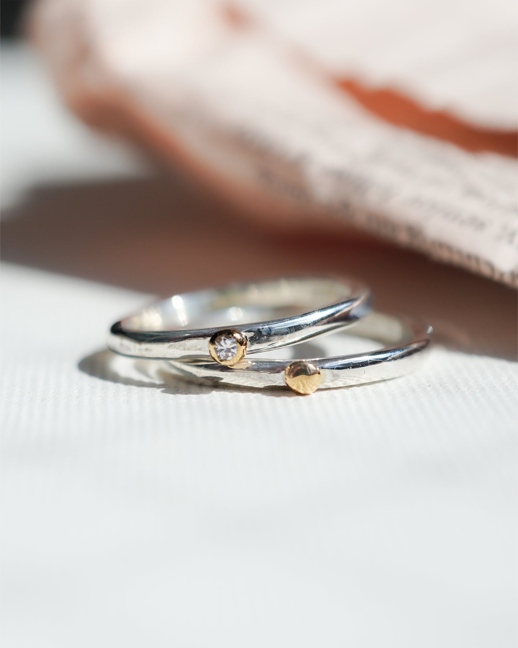 silverと18kを組み合わせた、小さなダイヤモンドが控えめながらも印象的なデザイン。