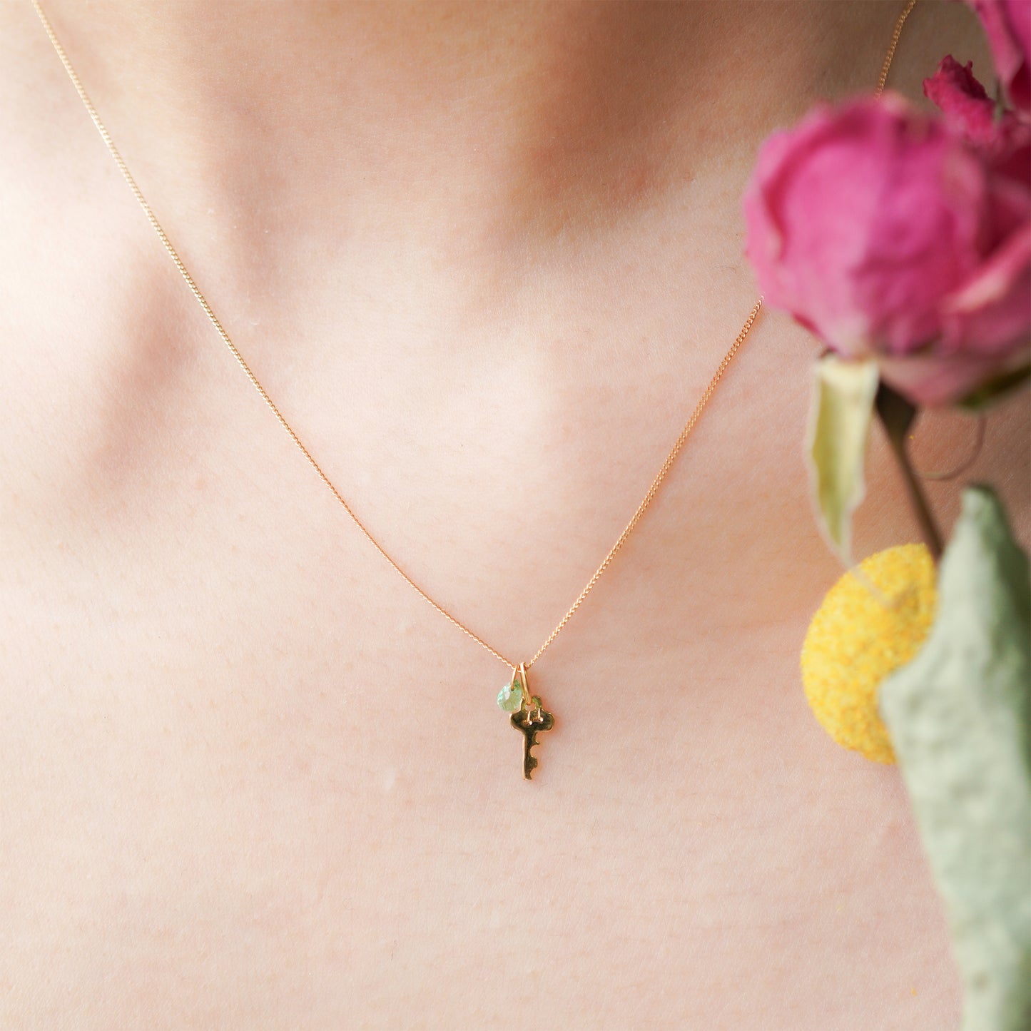 鍵を使って「閉じる」という動作が表しているのは「大切なものを守る」という行為です。 そのことから、鍵モチーフは魔物や災難から身を守るといった意味を持ち、実際に古代ヨーロッパではお守りとして身につけられていた歴史がございます。